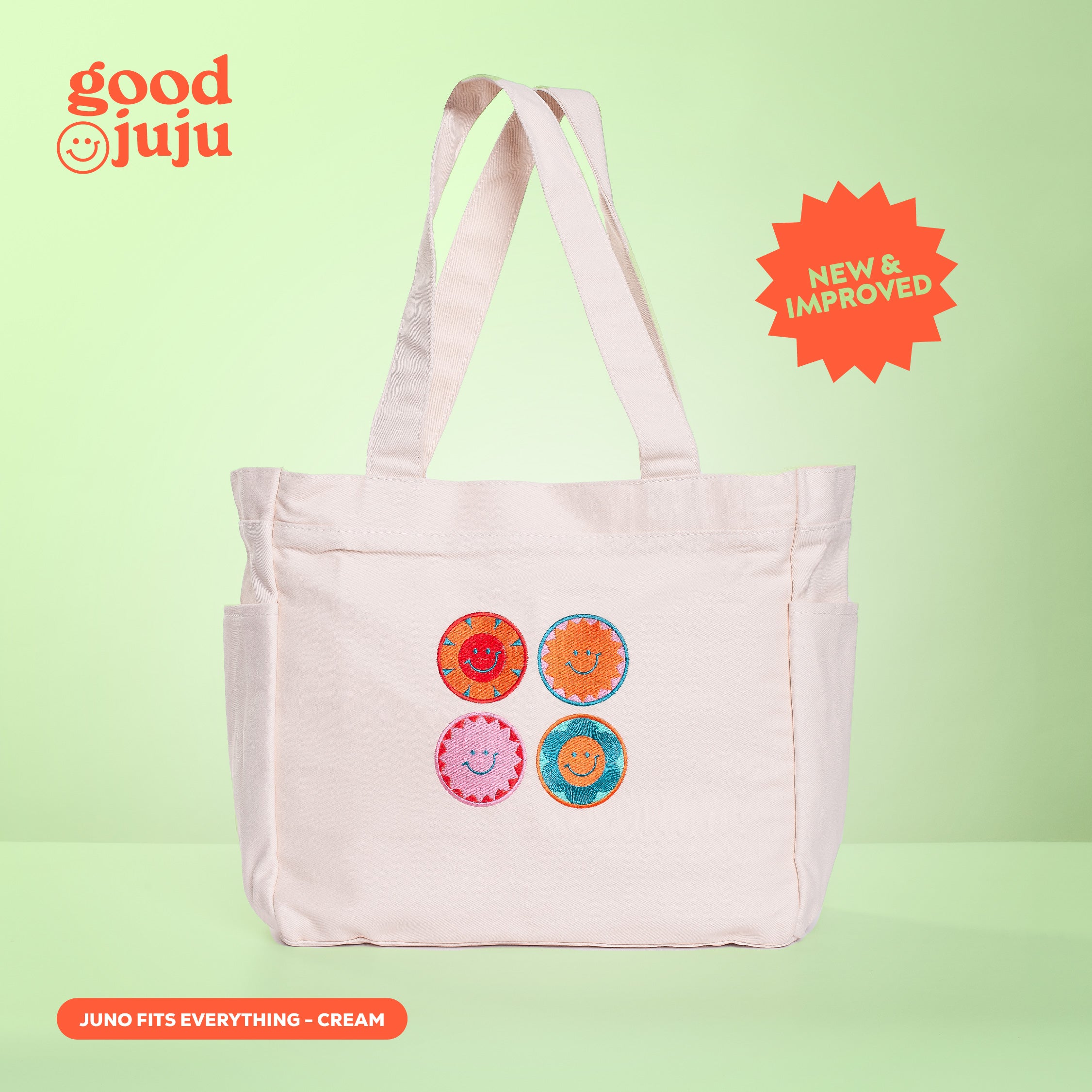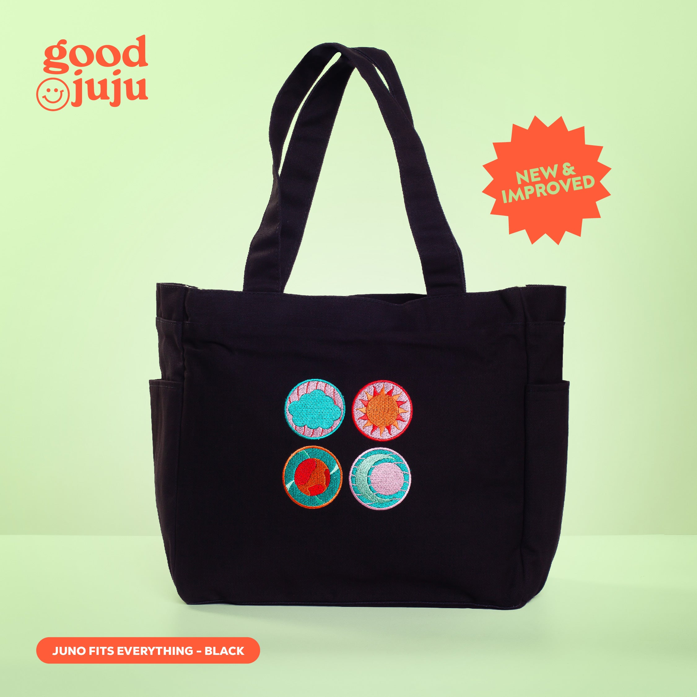 JUNO, our first collection, locally made utility tote bags that focuses on function and design. Made from the finest and toughest bull twill, it is 100% cotton, heavy duty, durable, and hides stains well. Your new worry-free all-around bag for your everyday needs!Designed to have a spacious interior that has a zipper, 6 pockets, and the biggest one to snug fit a 16” laptop.