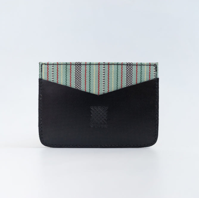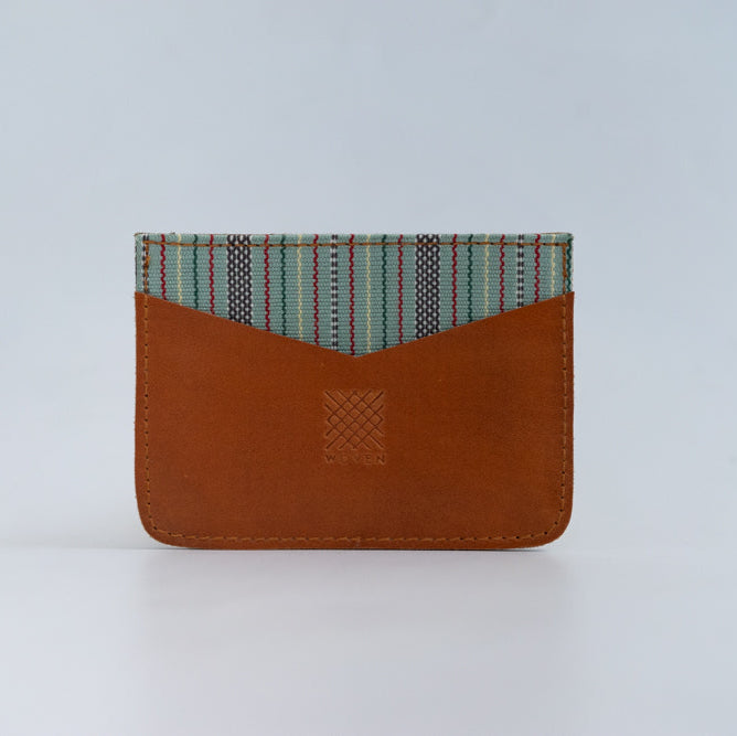 Made to keep the stuff in your pocket organized, these slim card holders will fit your IDs, cards, and bills easily.  Dimensions: 11 cm x 8 cm Genuine leather Handwoven fabric sourced from weavers in Kalinga Three (3) card slots that can fit two cards each Crafted and stitched in Marikina, Philippines