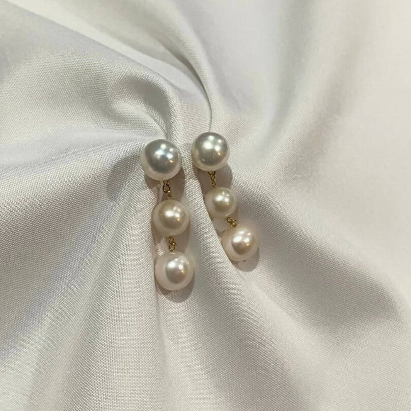 Freshwater Pearl Earrings Material: Gold Plated Lock and Chain Length: 2 inches Shape: Siopao and Potato Size: 8-9 mm