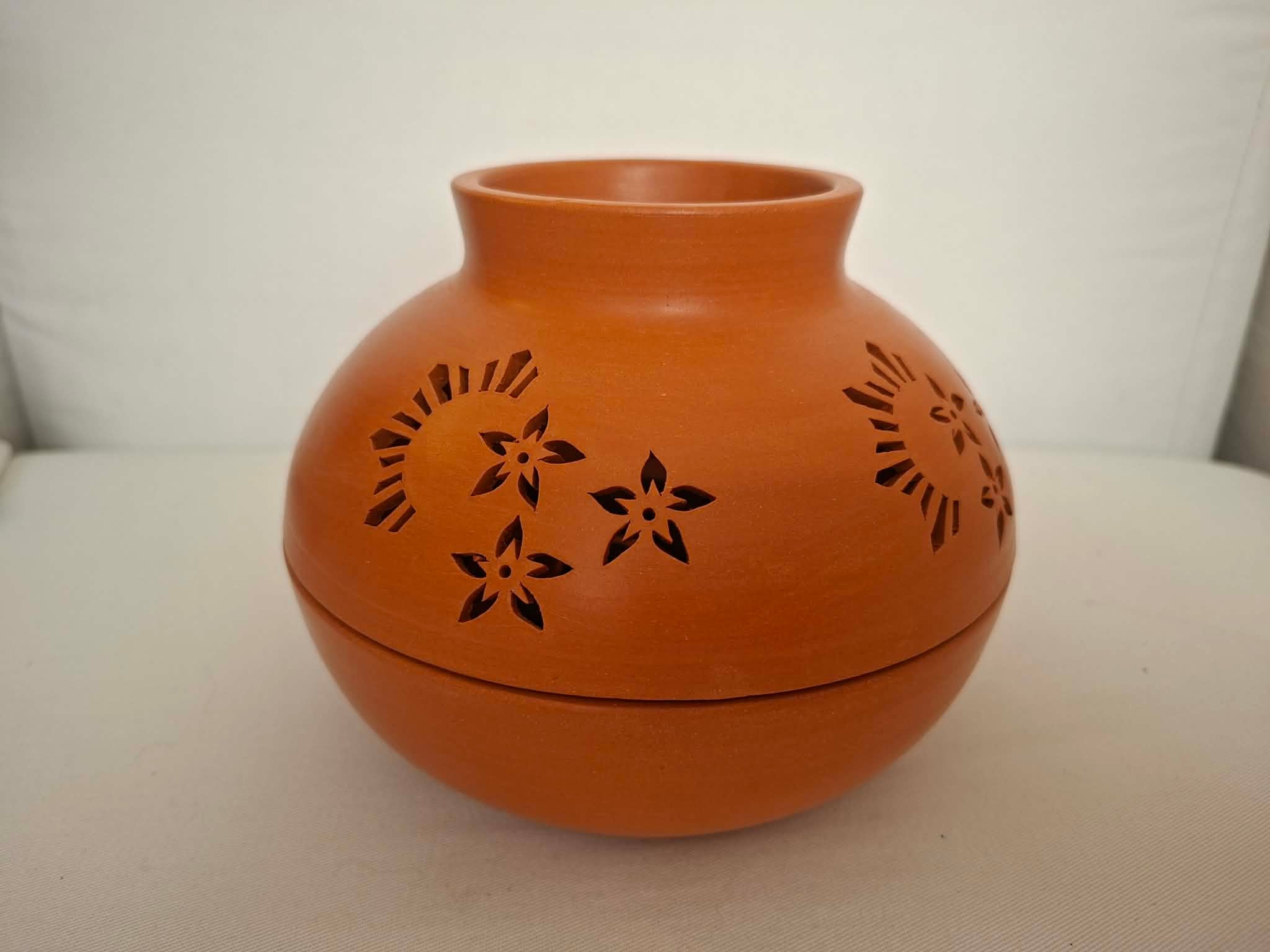 Elevate your space with a touch of Filipino craftsmanship. Exclusively for Frankie General Stores, this artisanal terracotta holder marries traditional pottery with modern utility. Hand-thrown with intricate "Sun, Moon, and Stars" cutouts, it creates a dancing light display while keeping pests at bay.