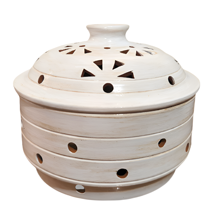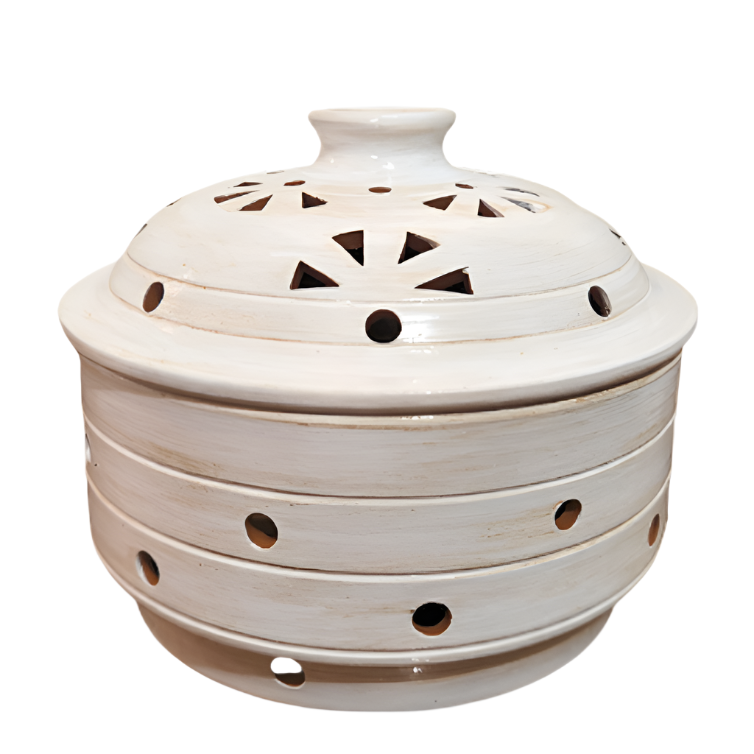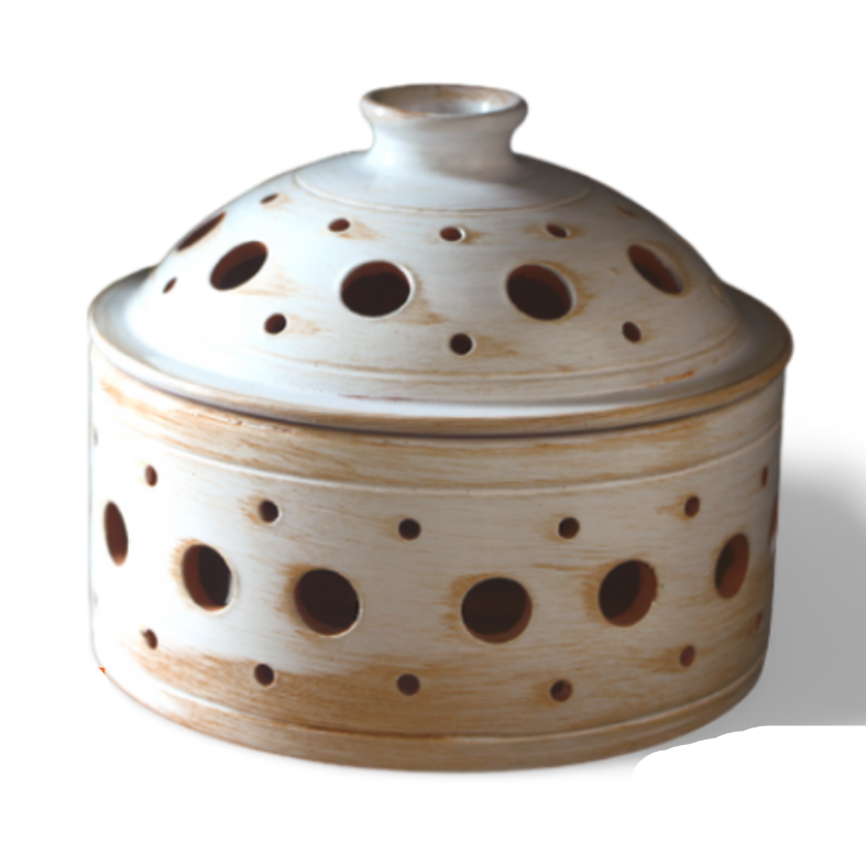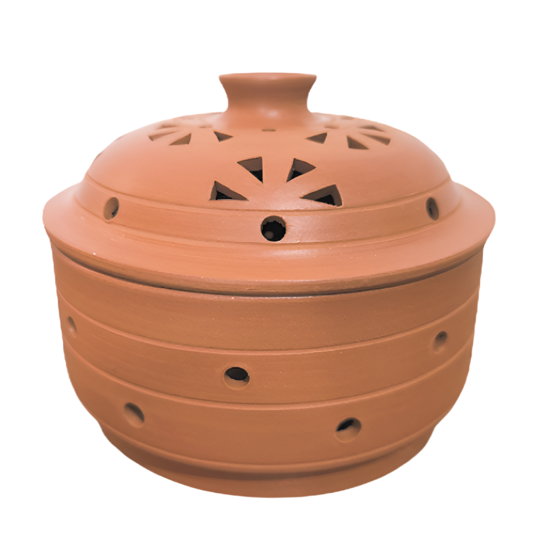A handcrafted terracotta mosquito coil holder is a decorative and functional item that can be used to burn mosquito coils safely and stylishly. It is made of natural clay shaped, carved, and fired by skilled artisans. The cover also protects the coil from wind and rain, and prevents ash from falling on the floor. It can also be used as a candle holder or an incense burner. The holder comes in various colors, patterns, and sizes, and can be customized according to the customer’s preference. It is a beautiful and practical accessory that can enhance the ambiance of any indoor or outdoor space, while keeping mosquitoes away.