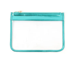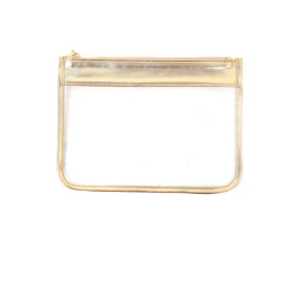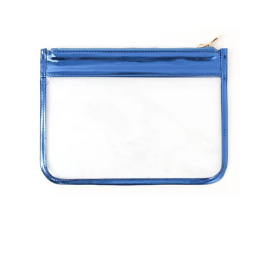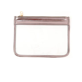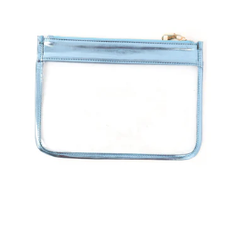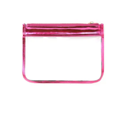 This pouch features a clear body that makes it easy to see and organize the contents inside—such as makeup, skincare, travel documents, or small personal essentials. The pouches have a sleek rectangular shape with a zipper closure that runs along the top edge.