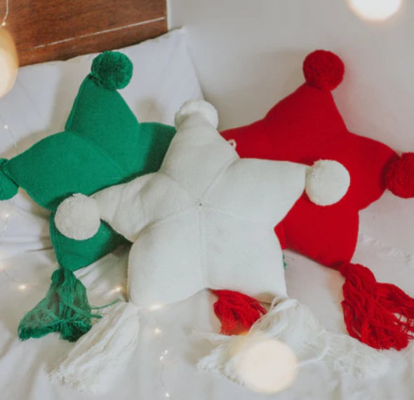 Our handknit version with pompoms and tassels is a unique take on this Filipino tradition - hang them outside or place on your sofa for the extra cosy holiday feel!   (We have Parol Ornaments for the tree too!)