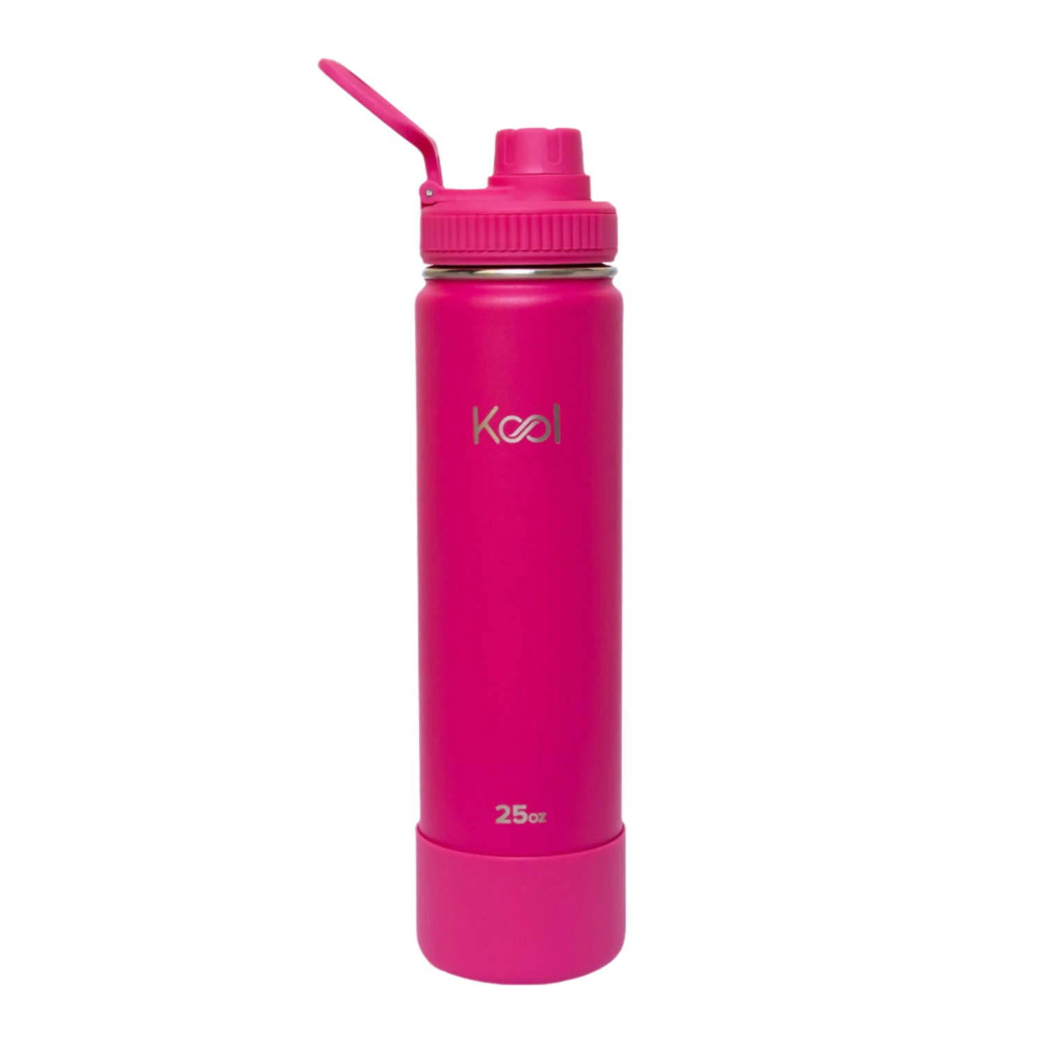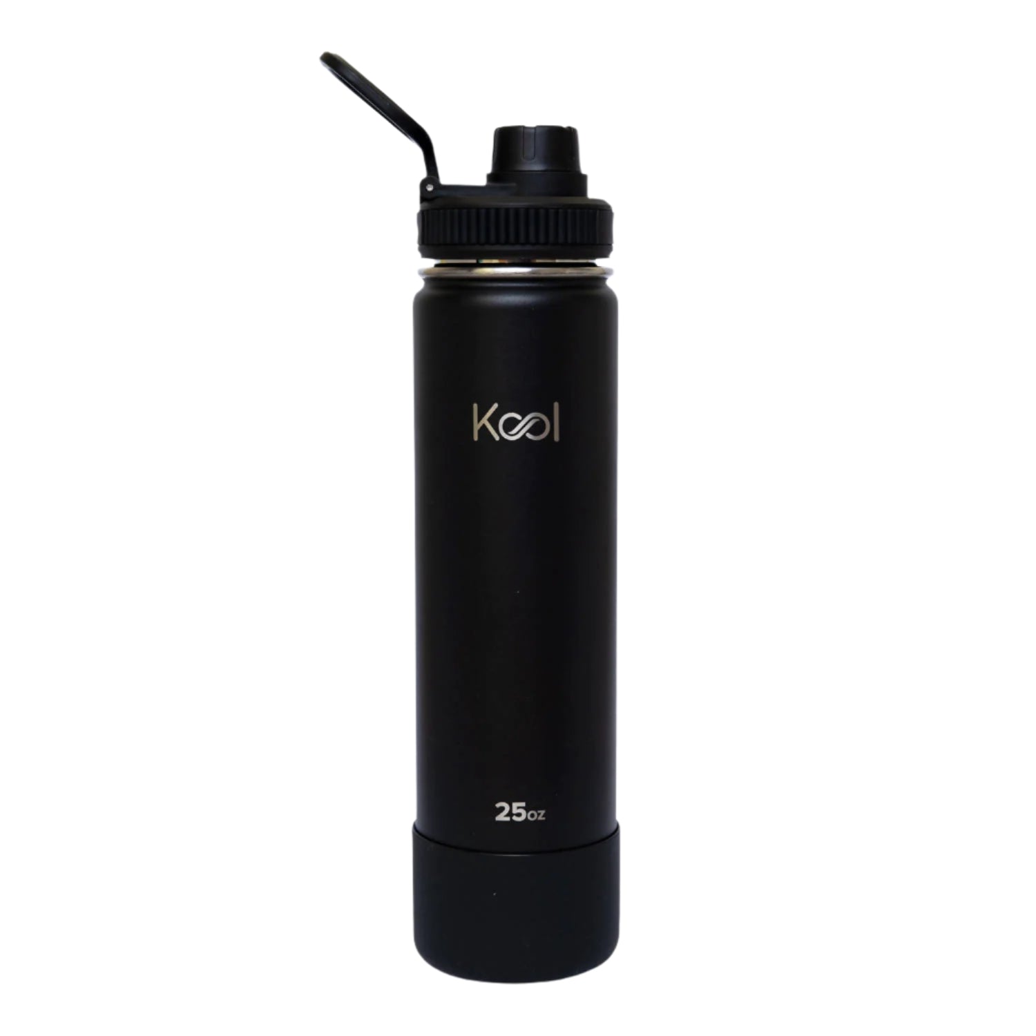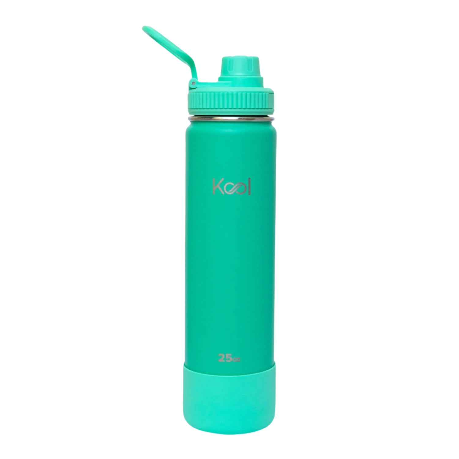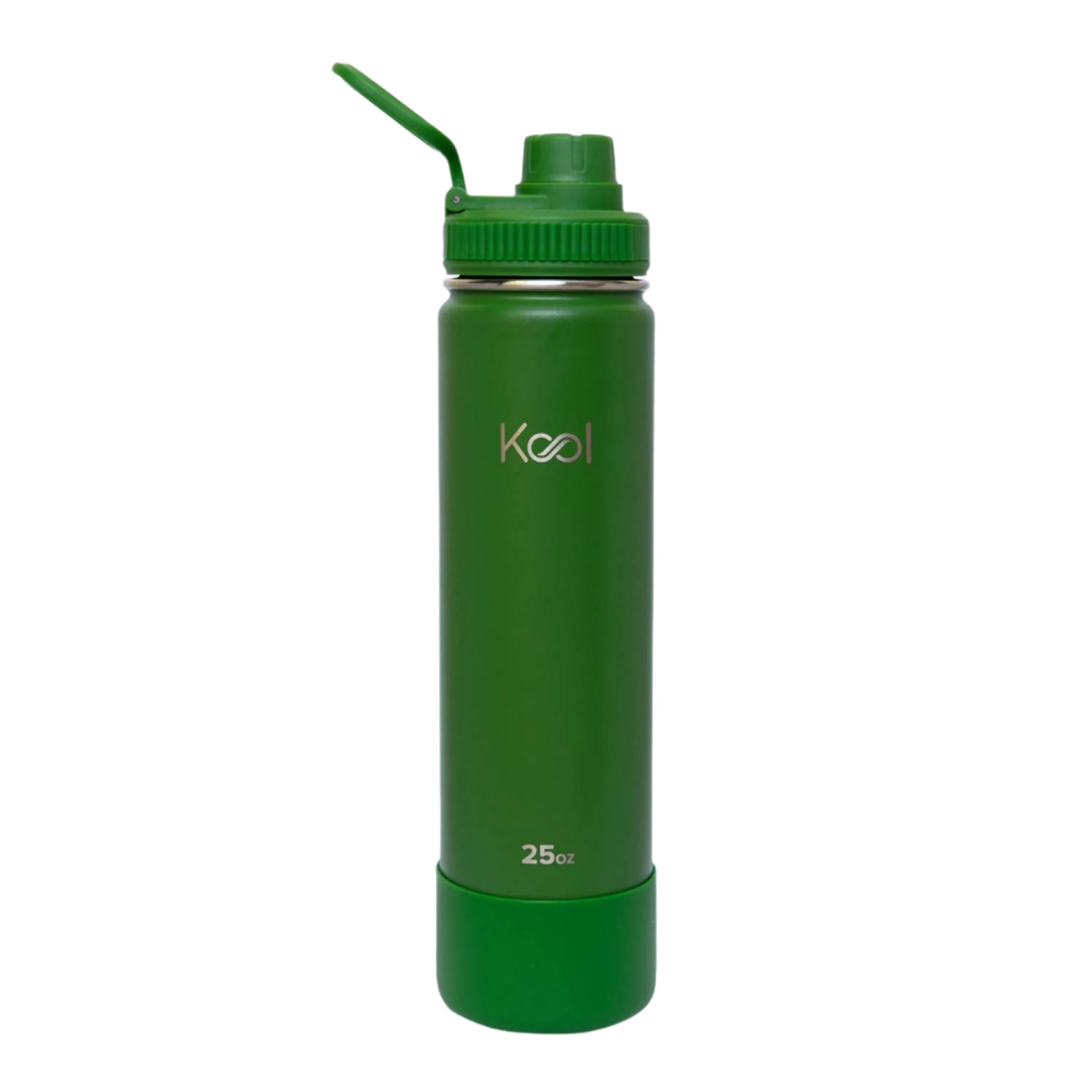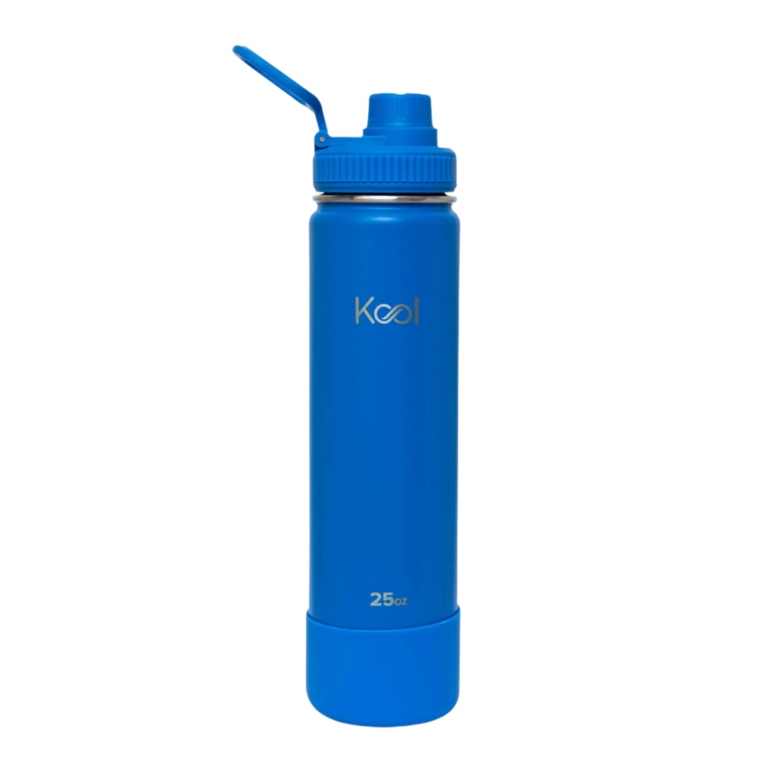 * Double-wall vacuum insulation prevents condensation and keeps beverages cold for up to 24 hours and hot for up to 12 hours. * 18/8 food-grade stainless steel ensures pure taste with no flavor transfer. Free from BPAs and toxins. * Powder-coated for sure grip and external heat protection. * Leakproof polypropylene spout lid combines the convenience of a wide mouth for ice and easy cleaning with the drinkability of a narrow mouth for less spills. * Comes with a removable, protective silicone bumper that minimizes dents and dings, allows for quiet set-down, and helps bottle stay secure in any oversized cup holder. * Size: 25 oz * Volume: 740 ml * Dimensions: 10.76”H x 3.40”W x 3.15”D * Weight: 350 g