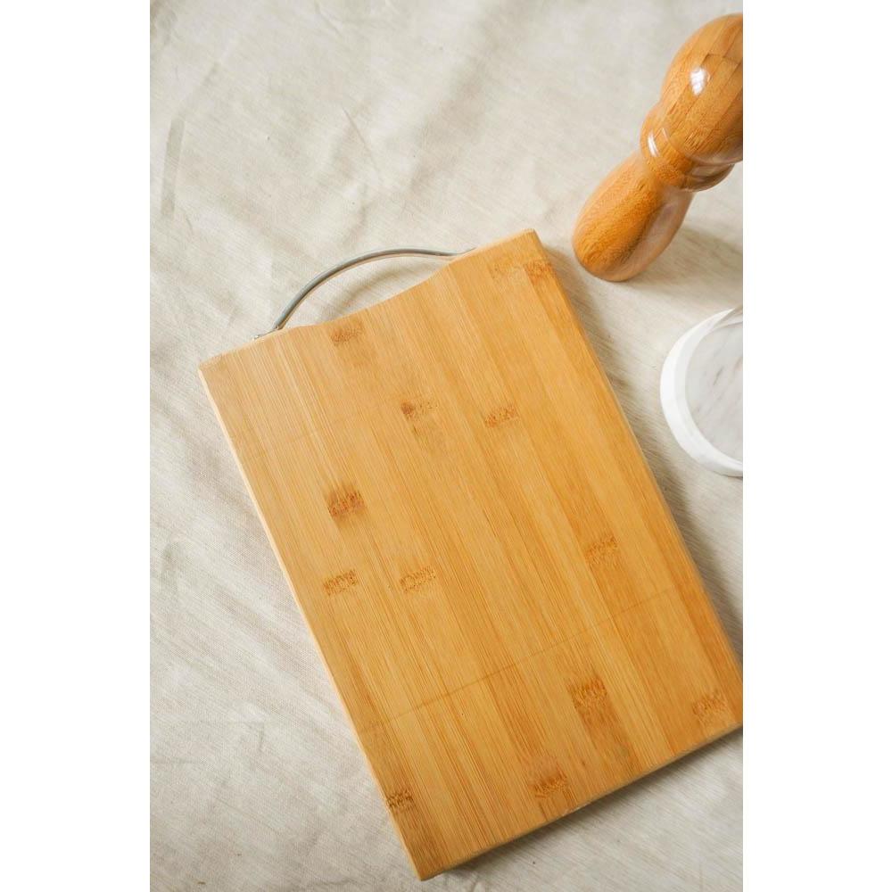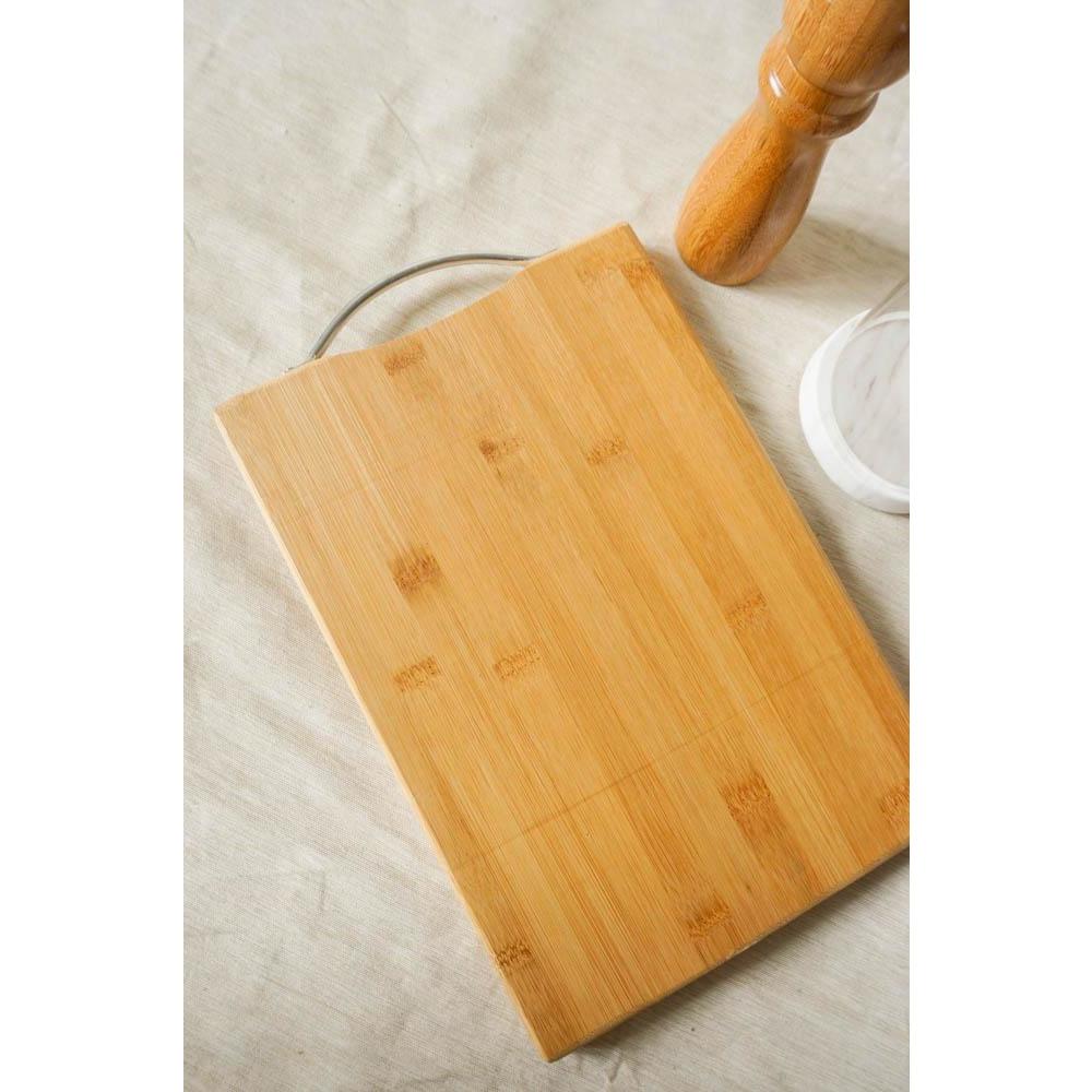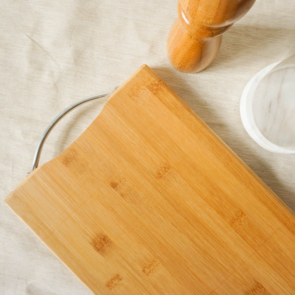 • An 11.5" by 7.5" by 0.6" pure bamboo chopping board.