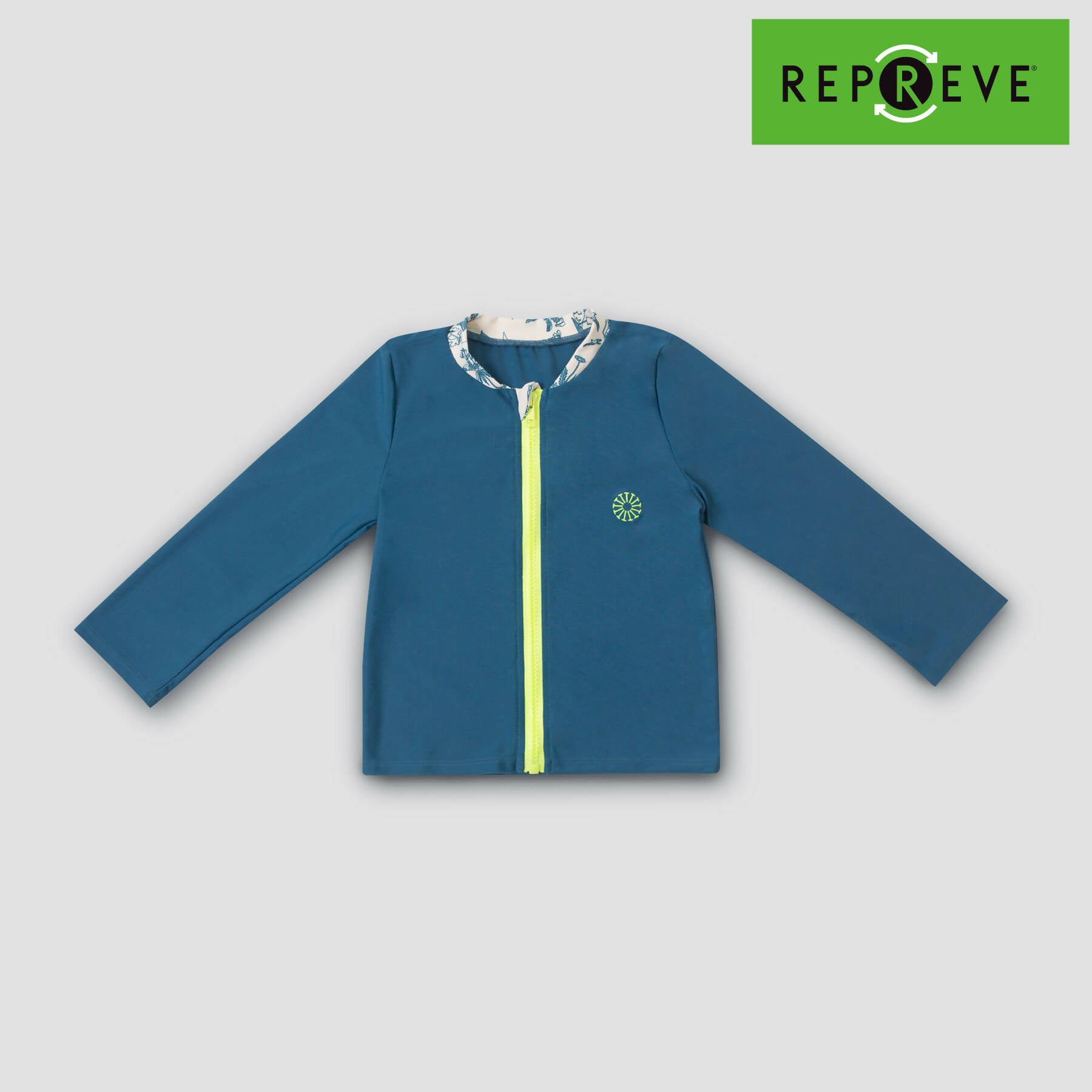 Rashguard for boys and girls made with Repreve fabric. Repreve fabric is made with recycled plastic bottles.