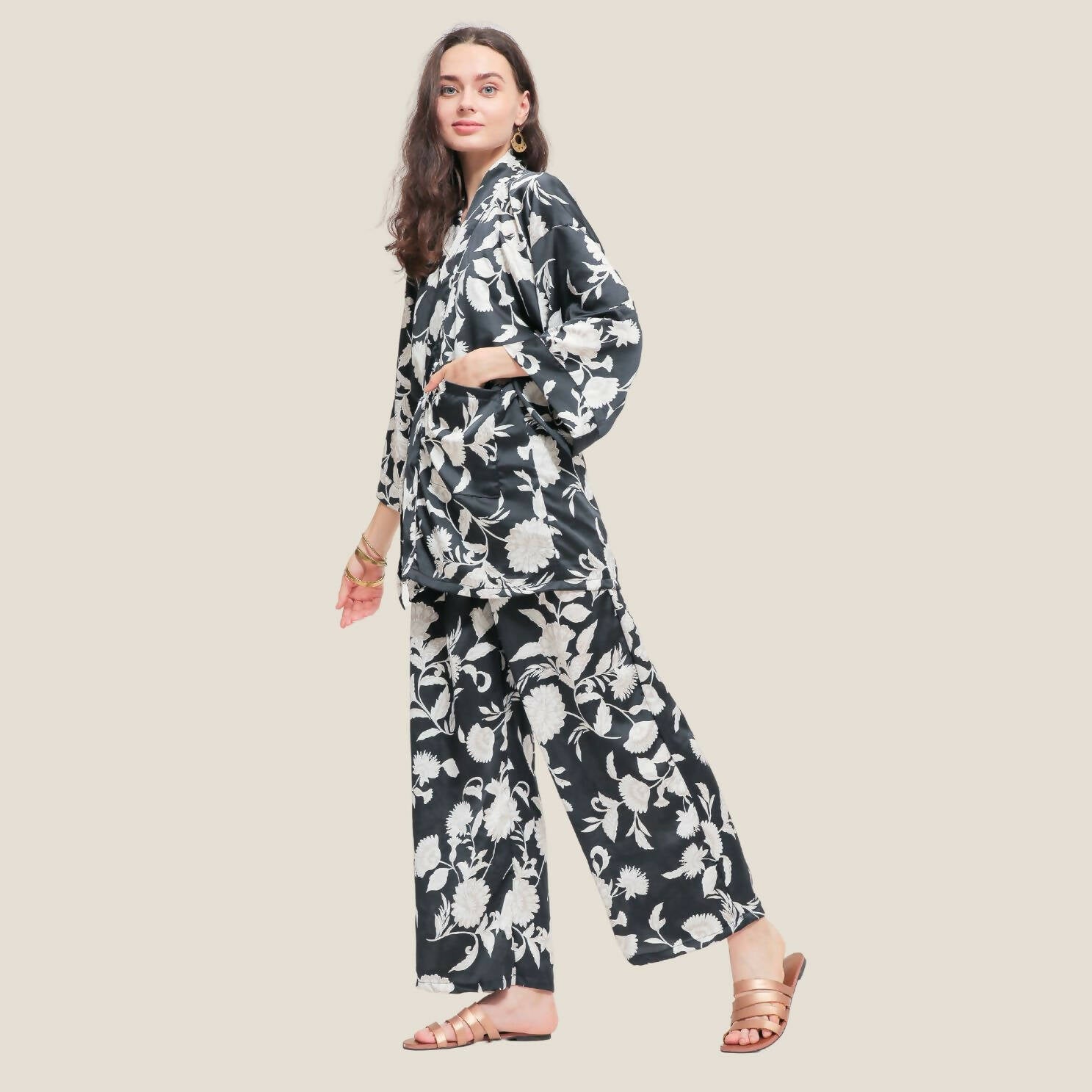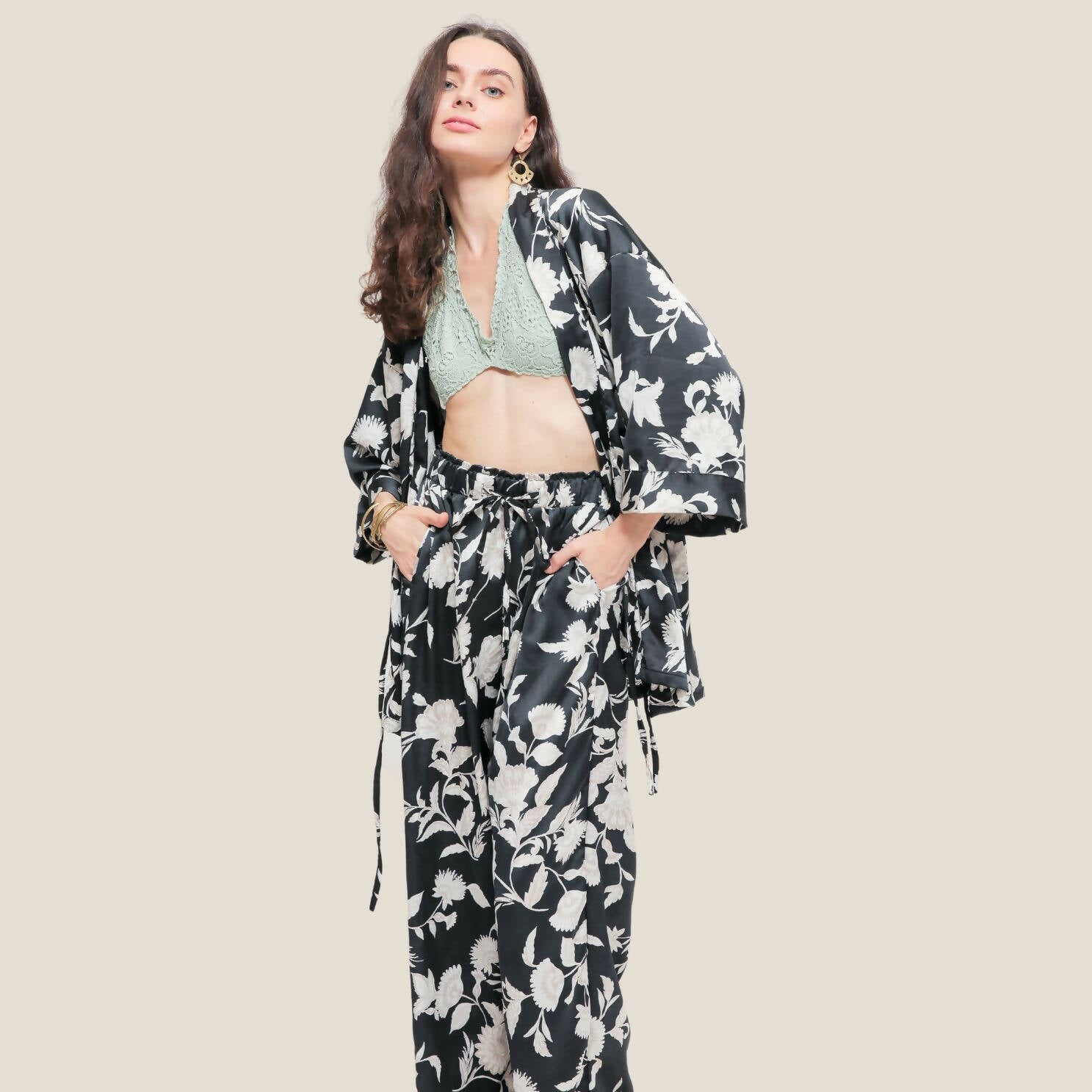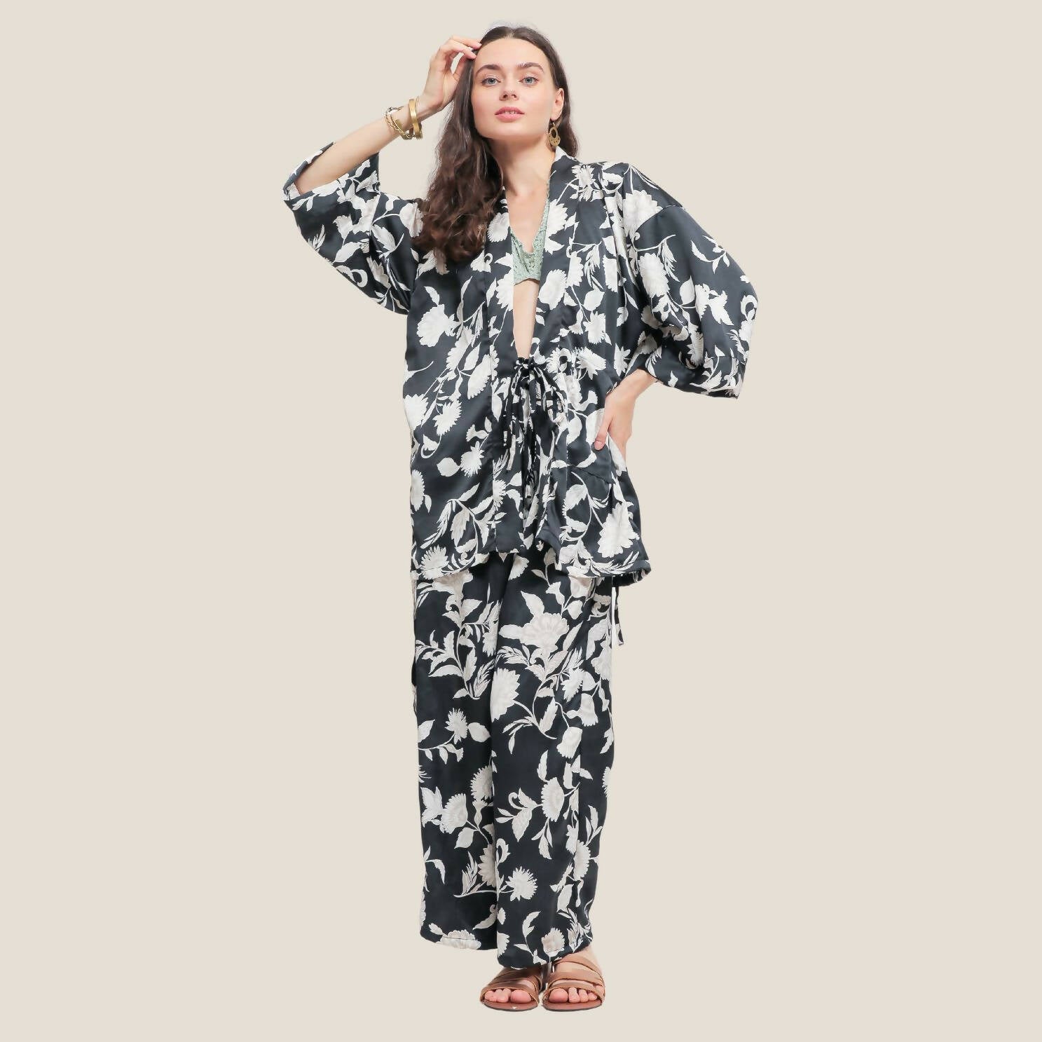 Silky Kimono Coords made with sustainably-sourced fabrics, crafted by local artisans.