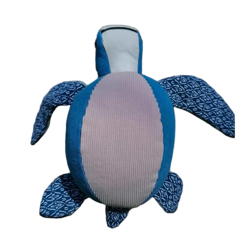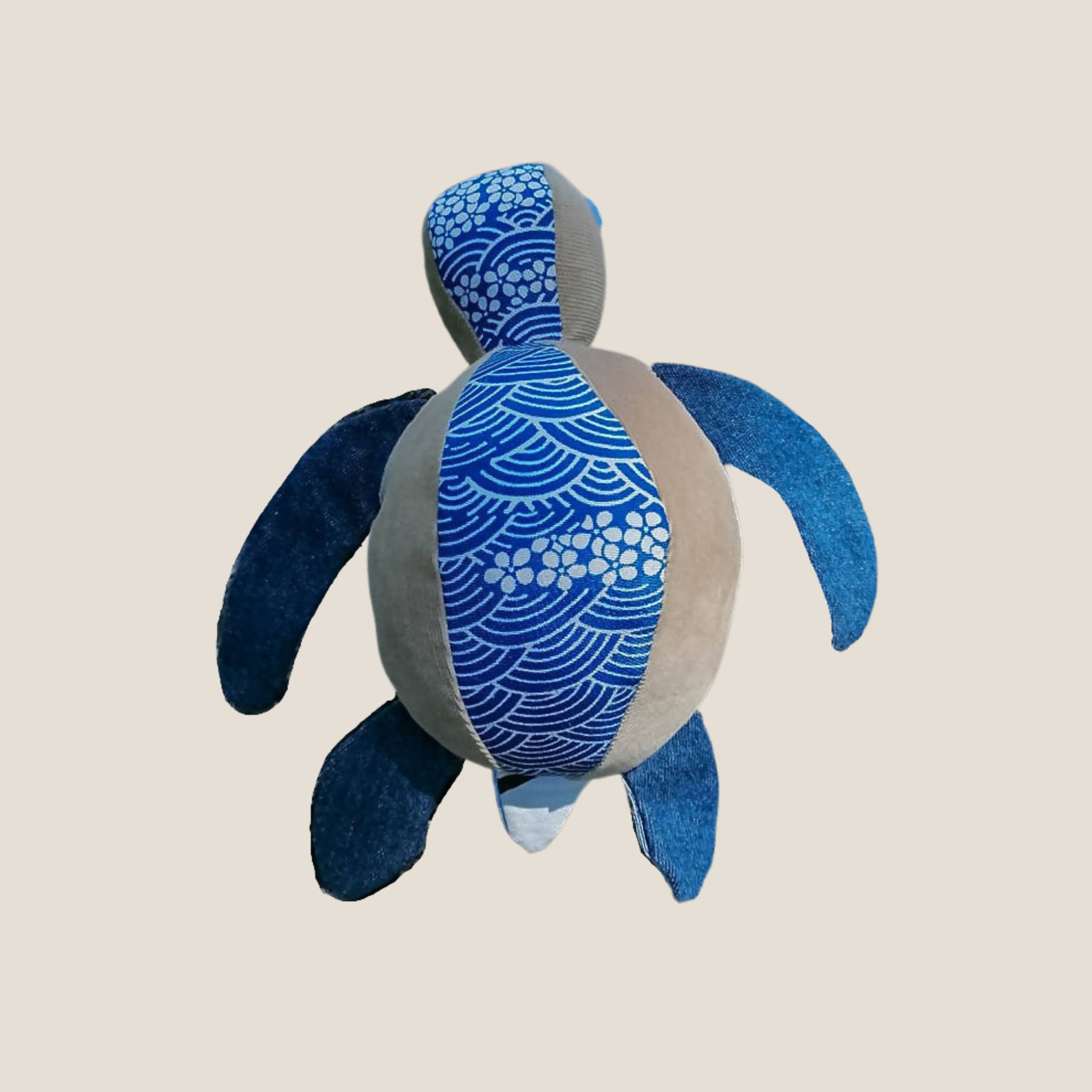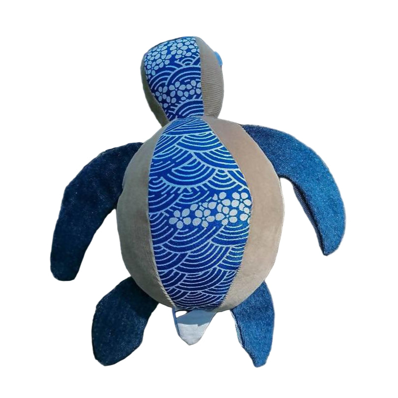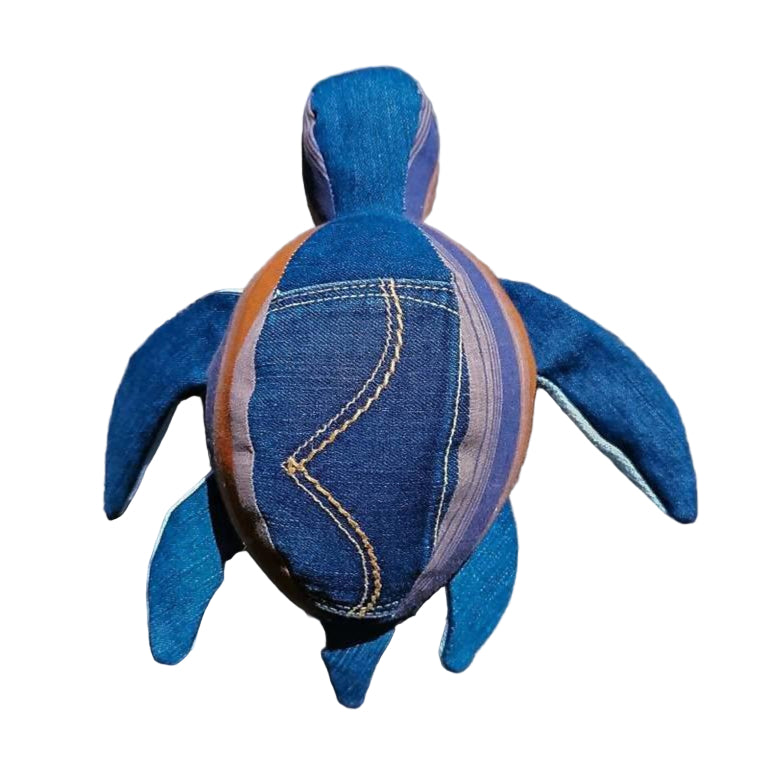 Our pawikan plush toy is handmade out of upcycled denim jeans and clothes from ukay-ukay (second-hand shop) and donations. No design is repeated twice. We work with available jeans collected from thrift store and donations.