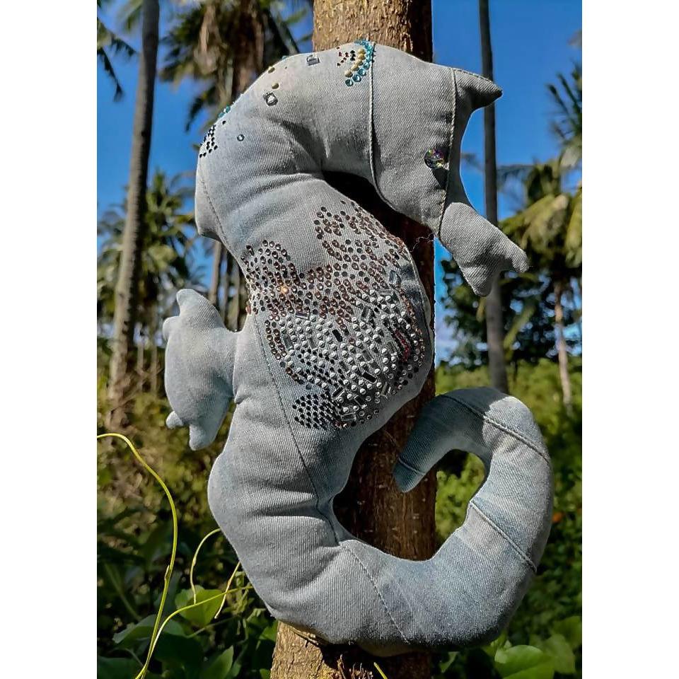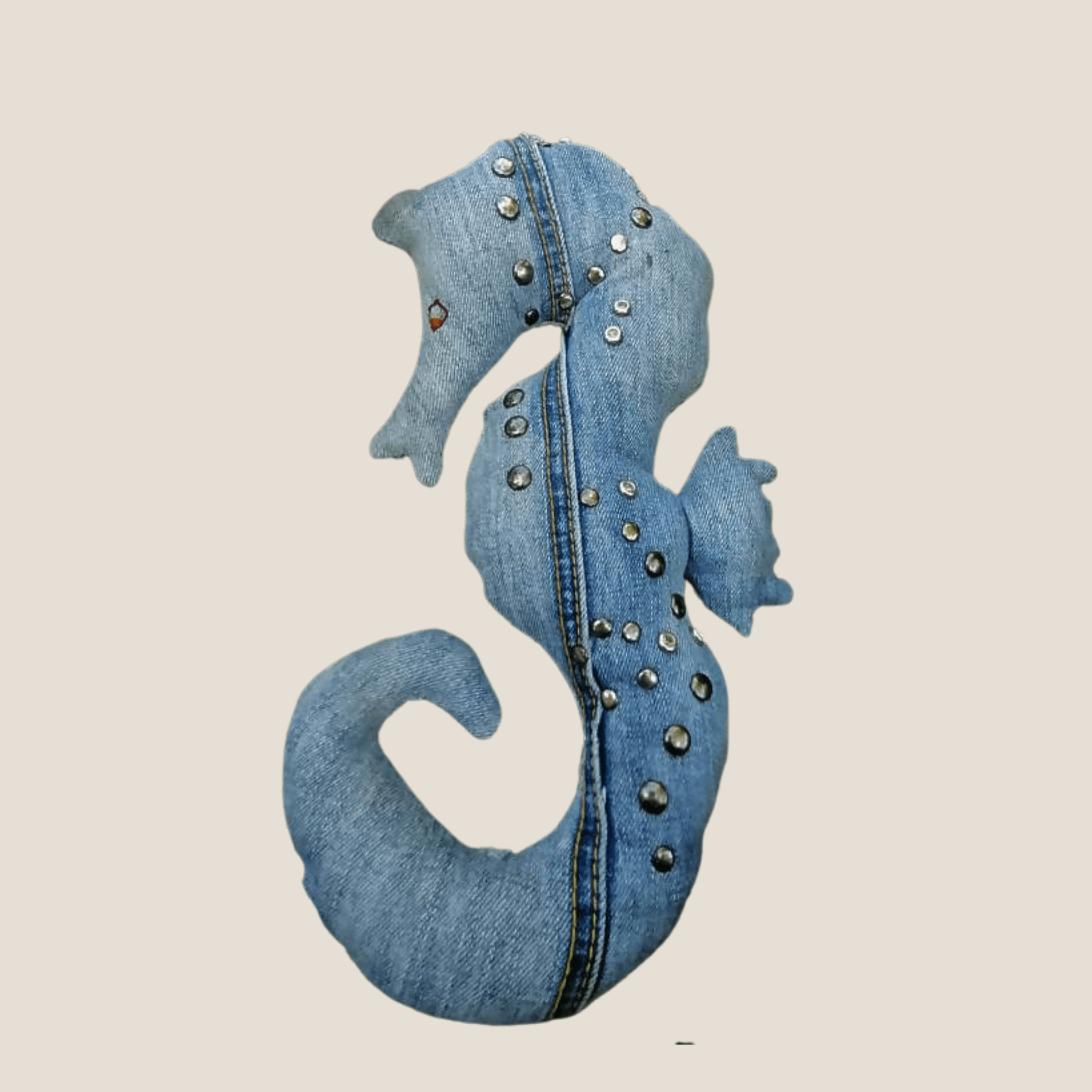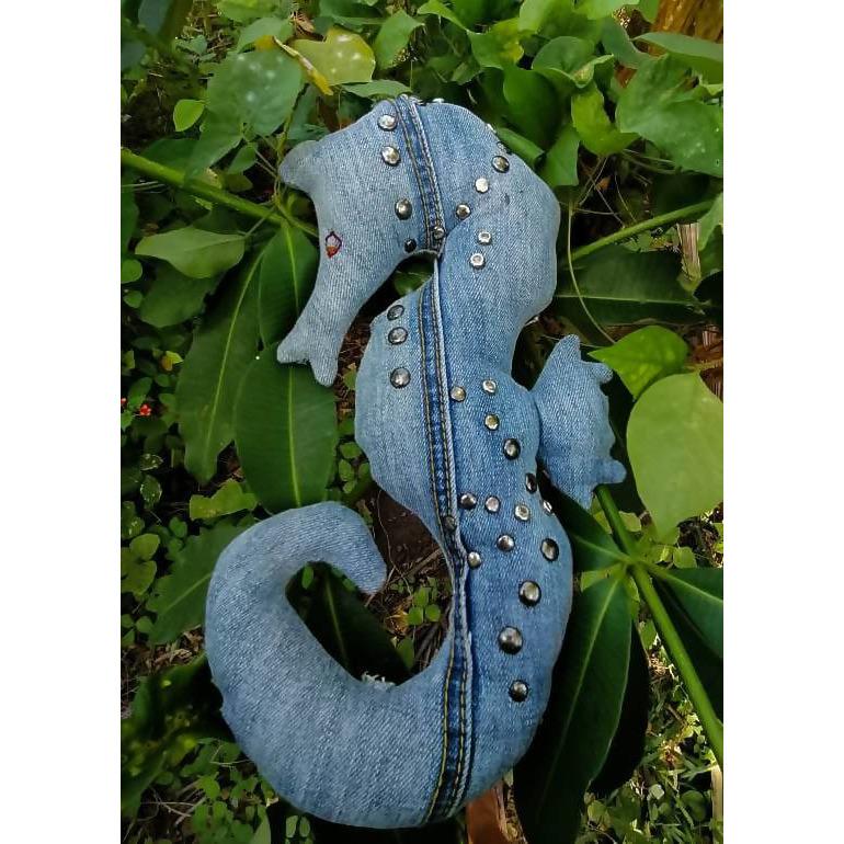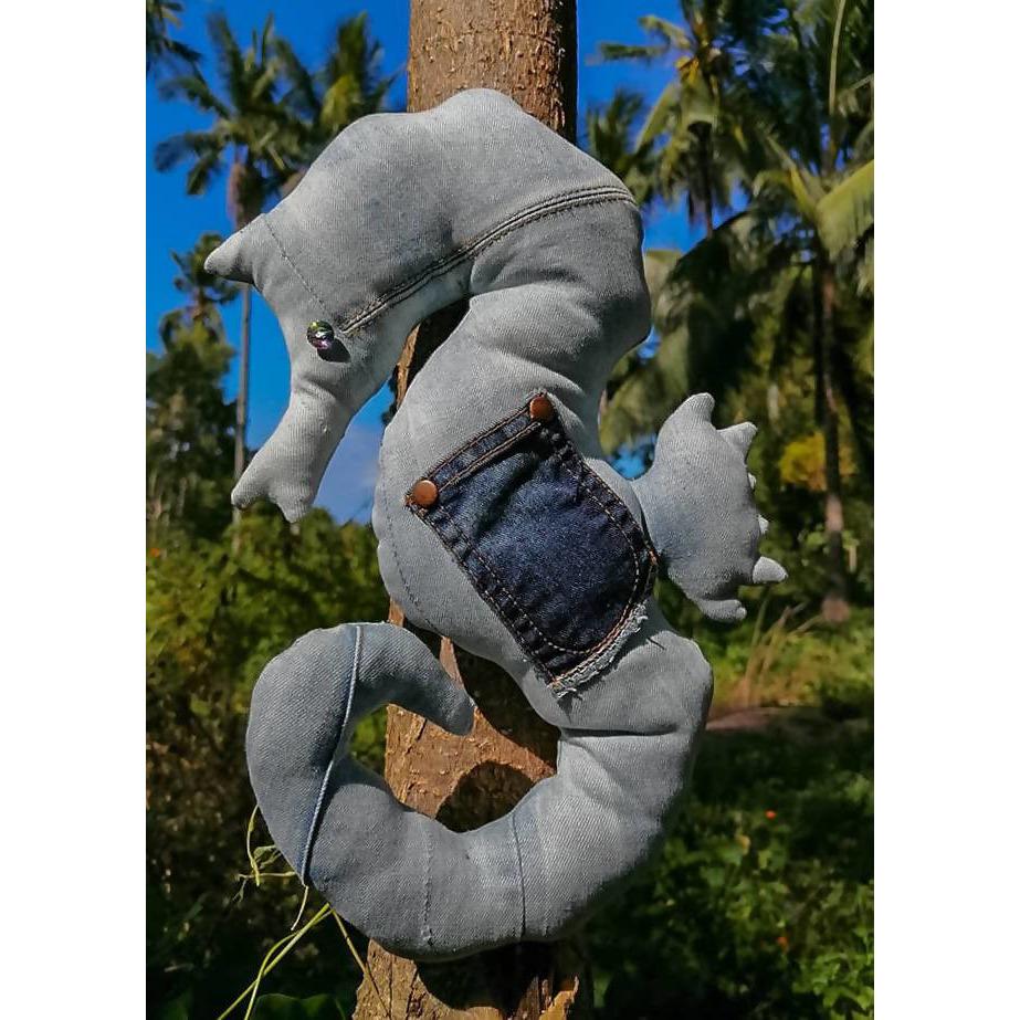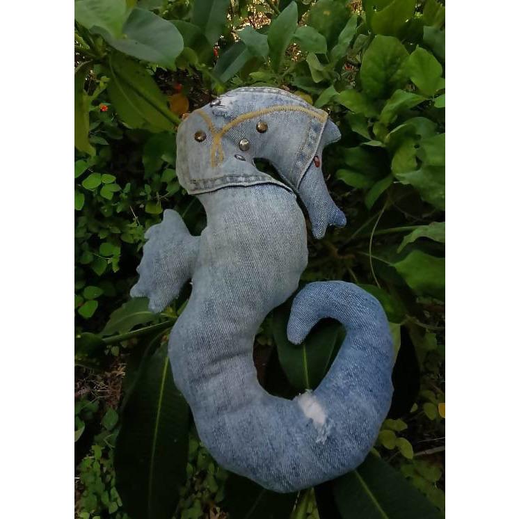 Our plush toy is handmade out of upcycled denim jeans and clothes from ukay-ukay (second-hand shop) and donations. No design is repeated twice. We work with available jeans collected from thrift store and donations.