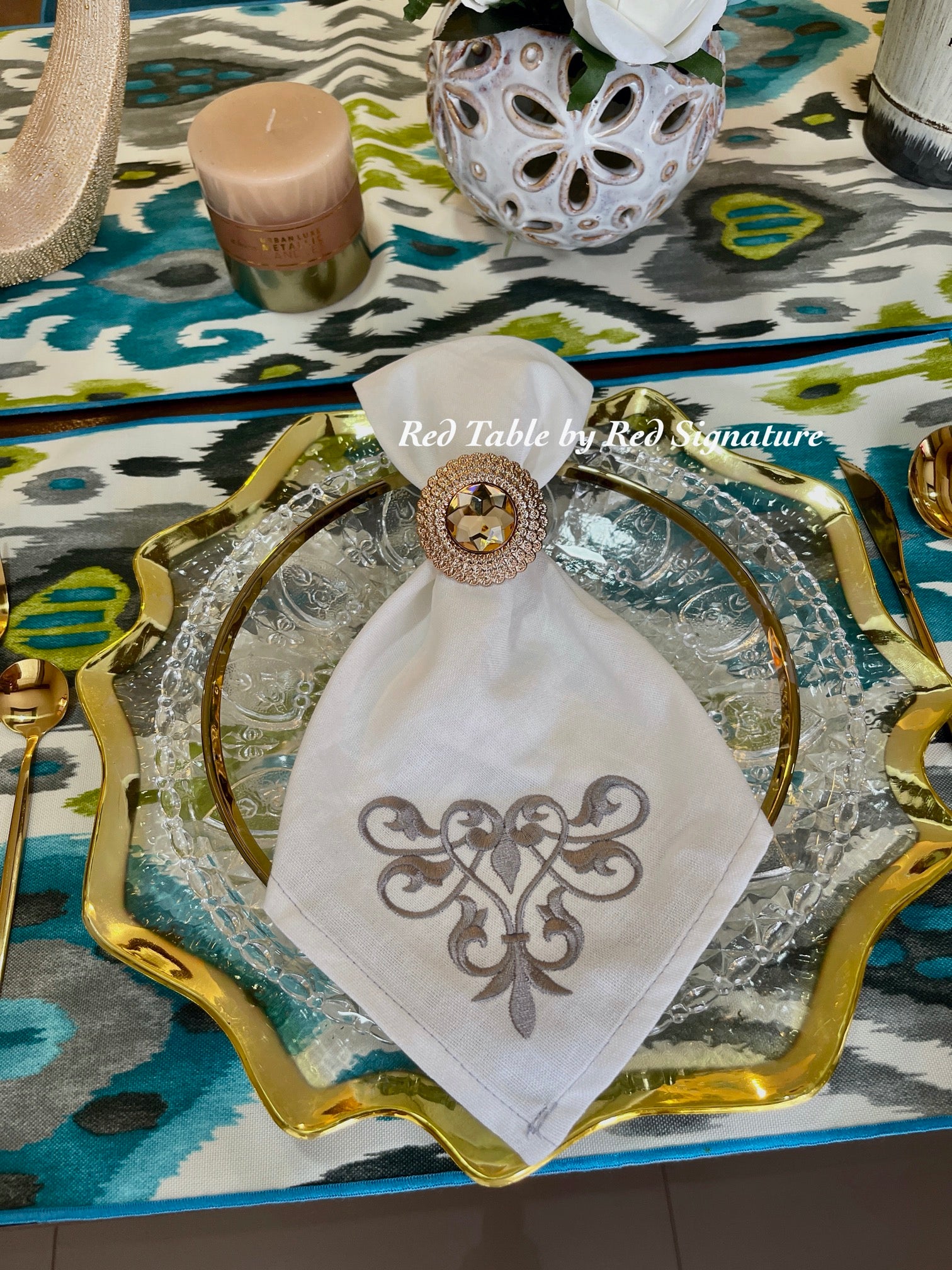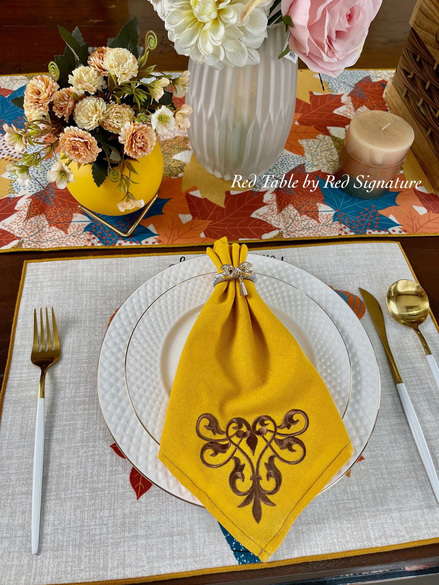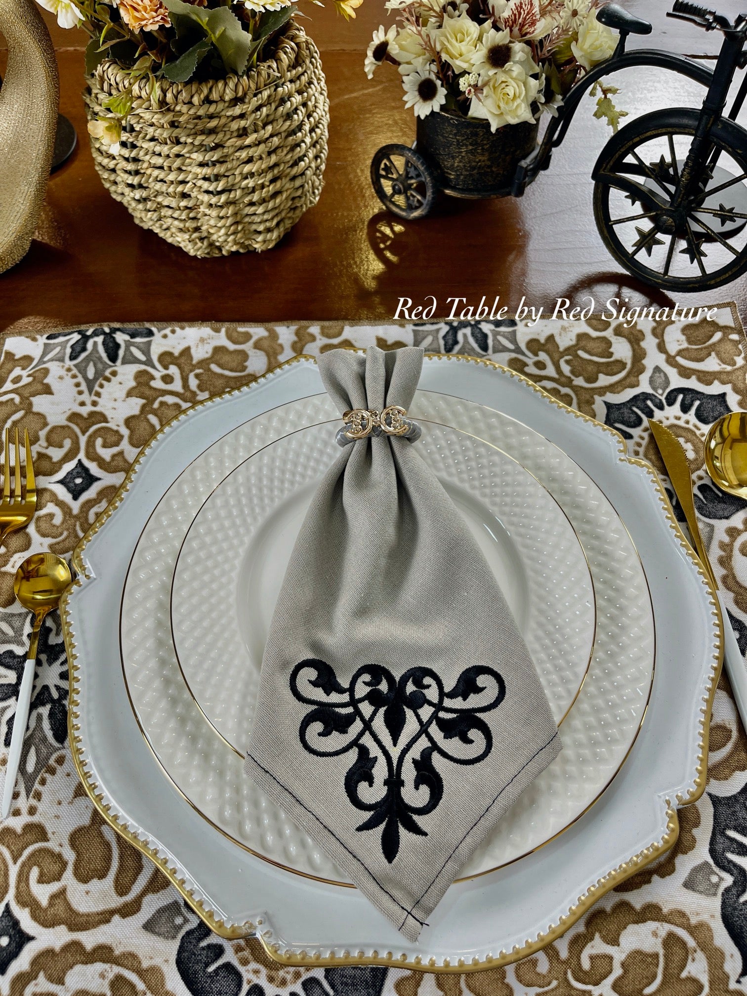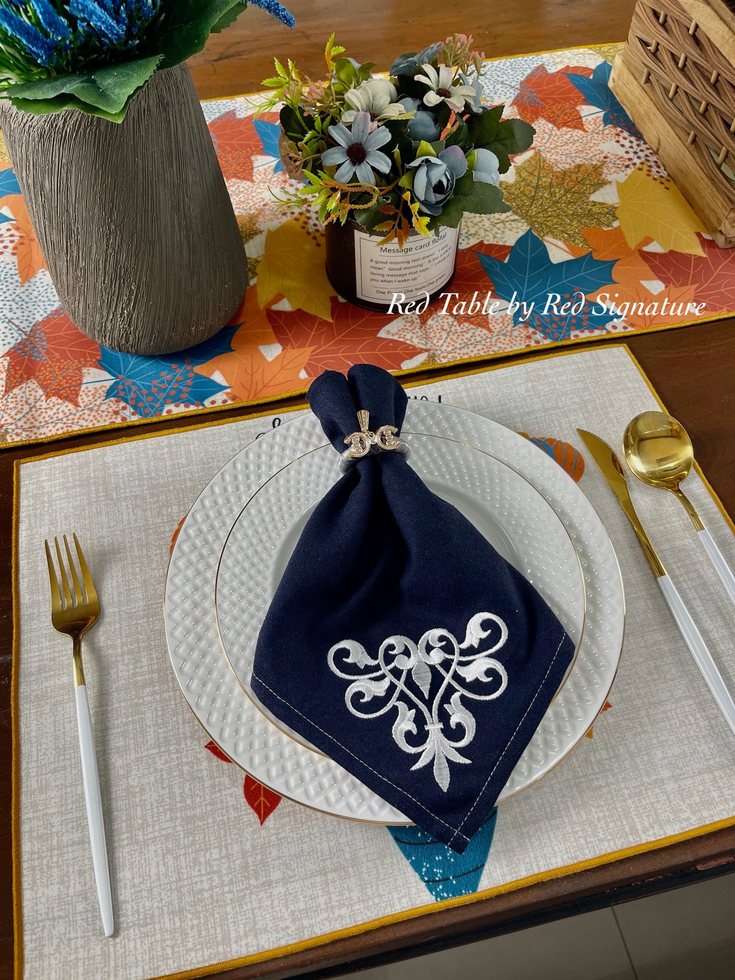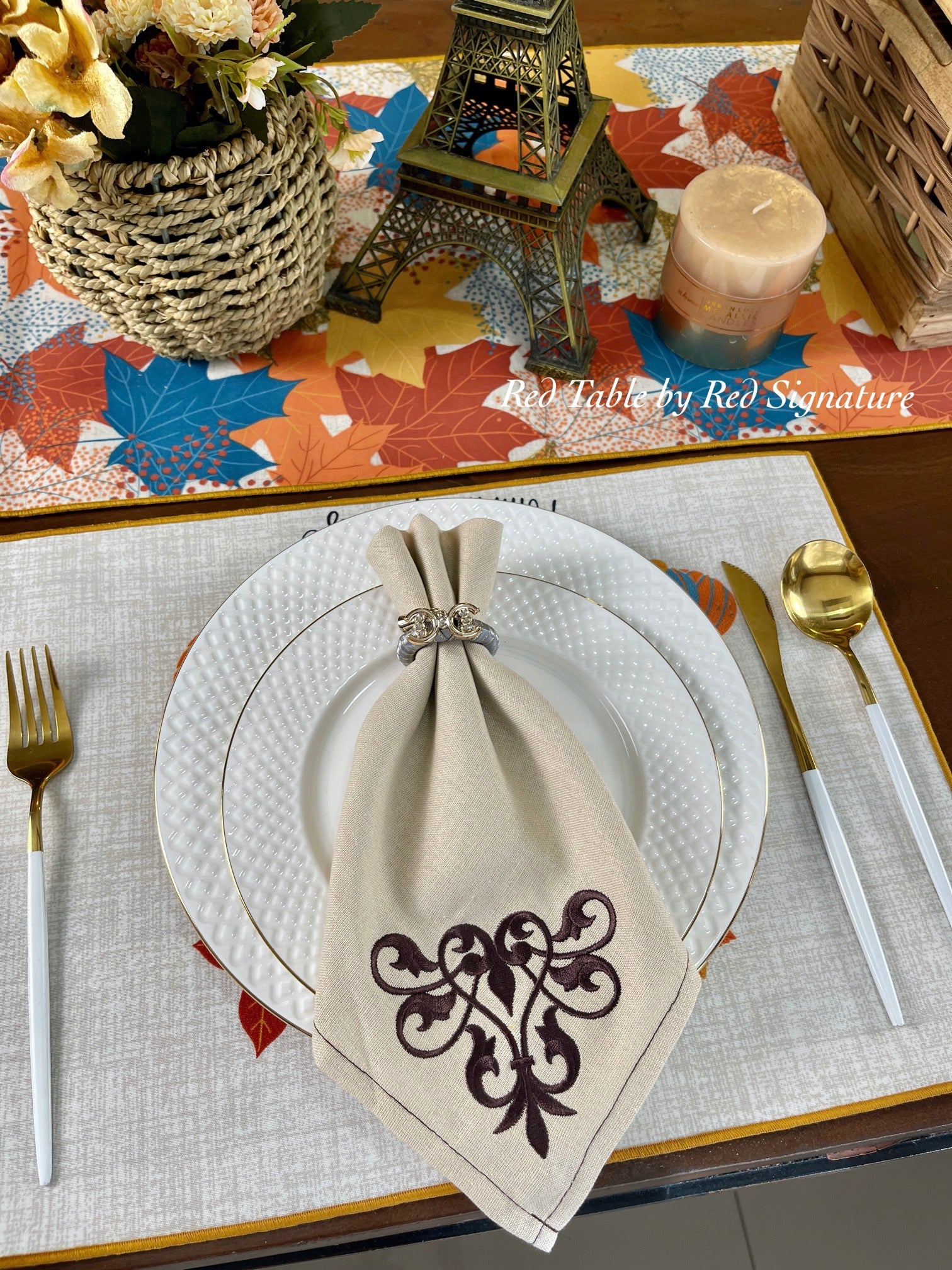 16x16 inches table napkin with embroidery. Elegant, durable, and reusable . Perfect for dining, events, weddings, or everyday table setups.