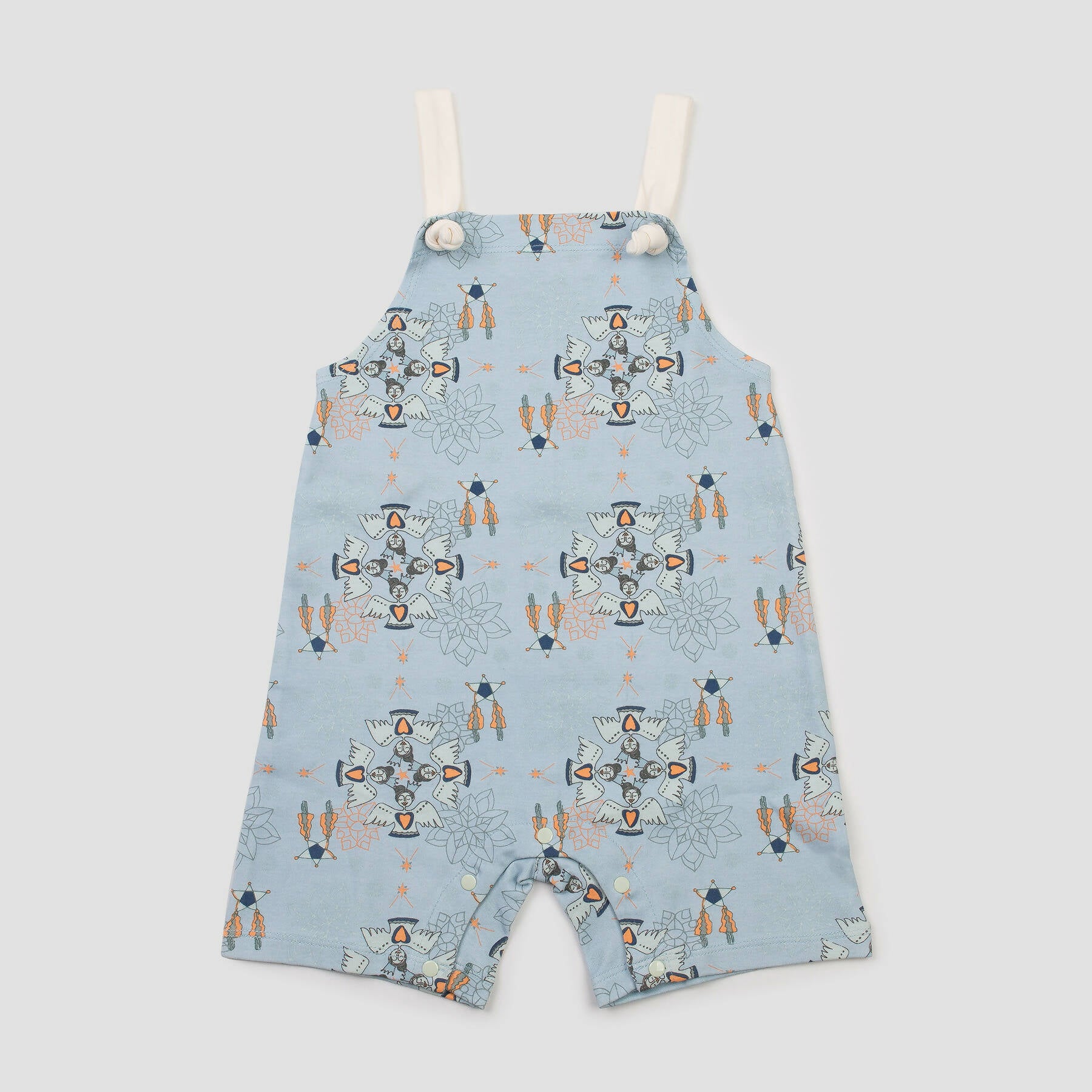 GOTS certified 100% organic cotton interlock square neck romper in original Holiday print with metallic colored snap buttons. Care Instructions:Gentle machine washDo not use bleachMedium tumble dryIron in warm settingWash and iron inside outFabric Composition: 100% organic cotton*Organic cotton behaves differently compared to other types of cotton fabrics. Natural fibers may stretch depending on wash and usage.