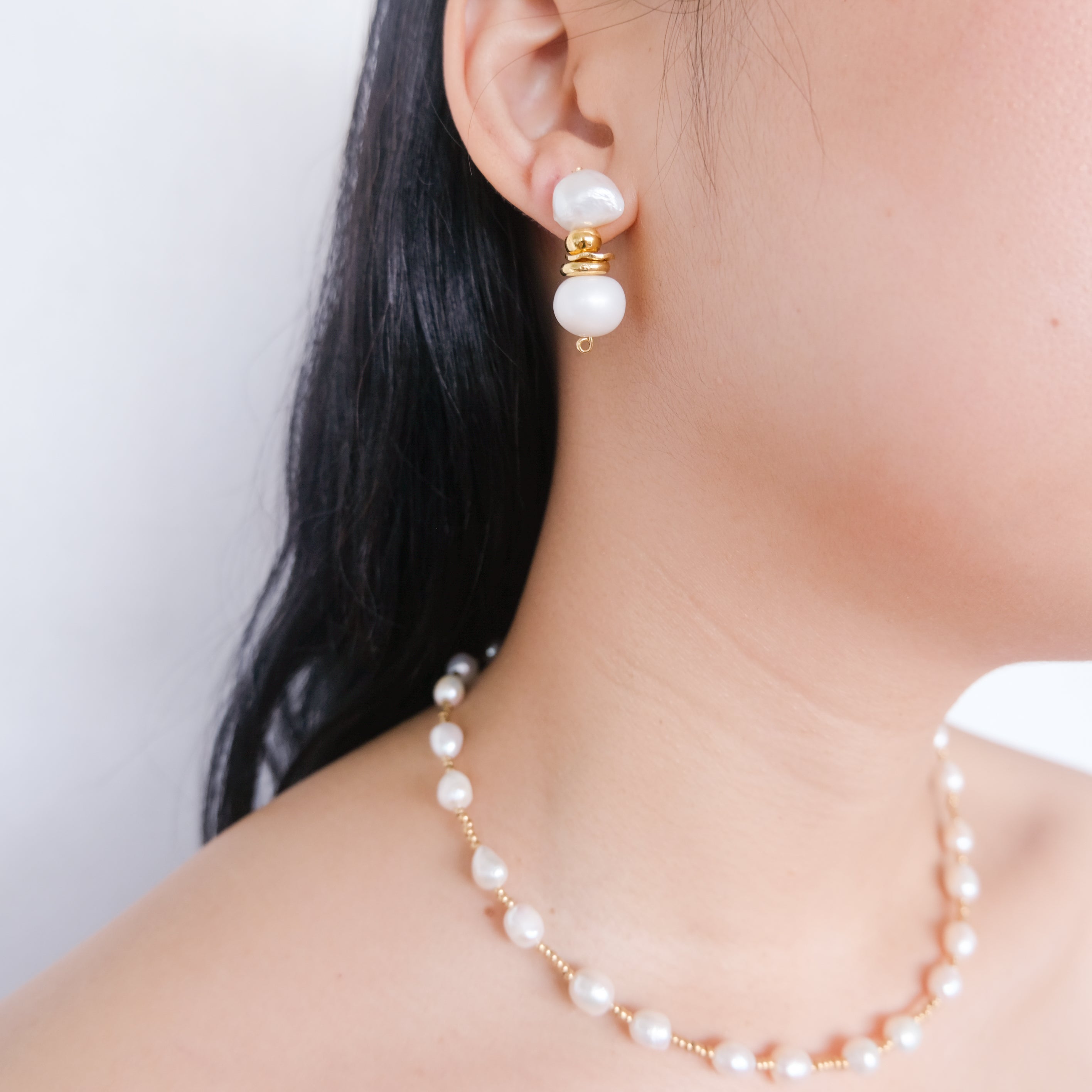 Note: Pearls are baroque- naturally irregularly shaped and do not exactly match as a pair. Expect differences in shape, texture, coloration and size.