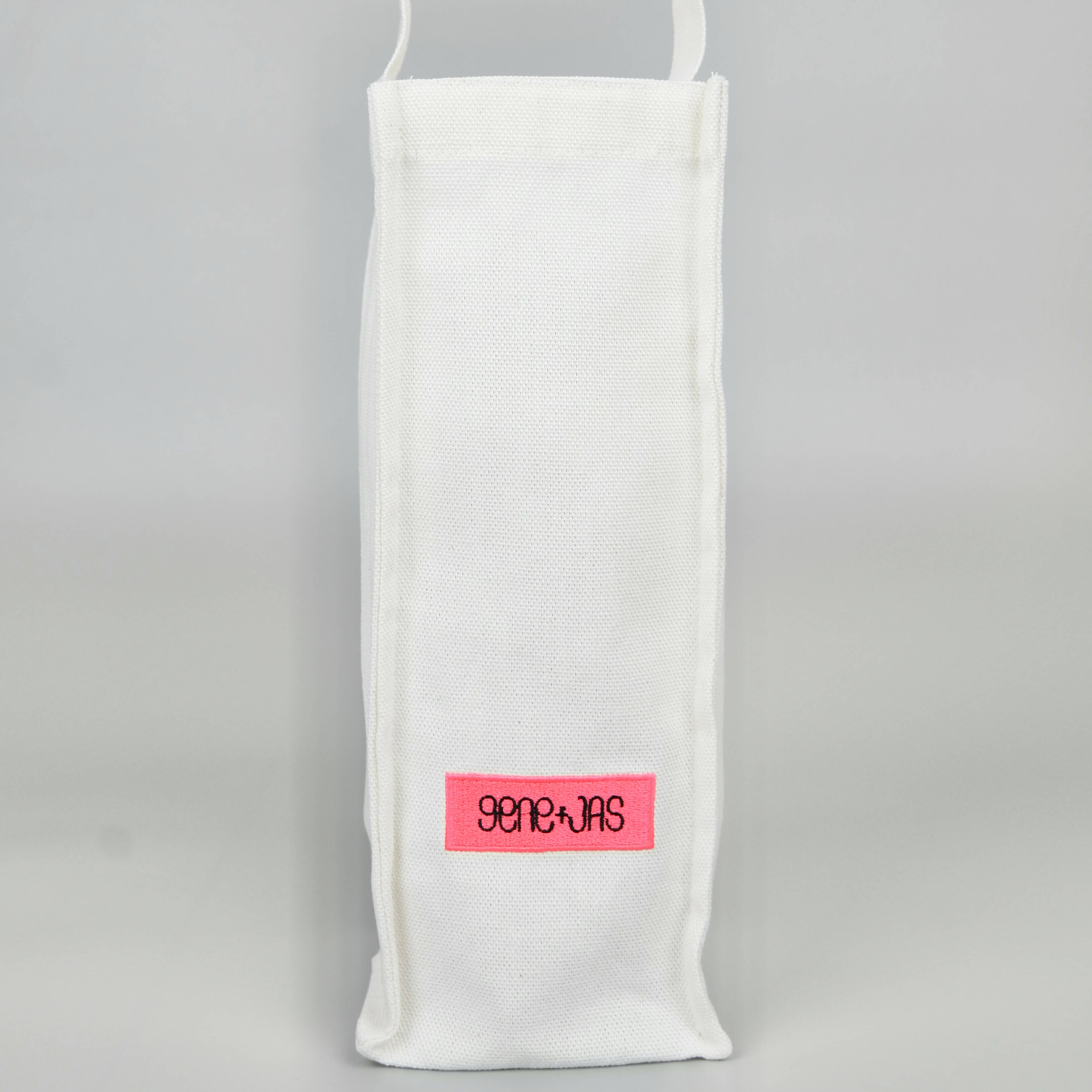 ·      Can fit up to one liter bottles·      Sturdy design with continuous base and cross stitched handles·      10 inches tall by 3 inches wide with a 4 inch base·      Handle drop 5 inches·      Navy canvas material·      Handwash or machine wash with similar colors·      Proudly made in the Philippines
