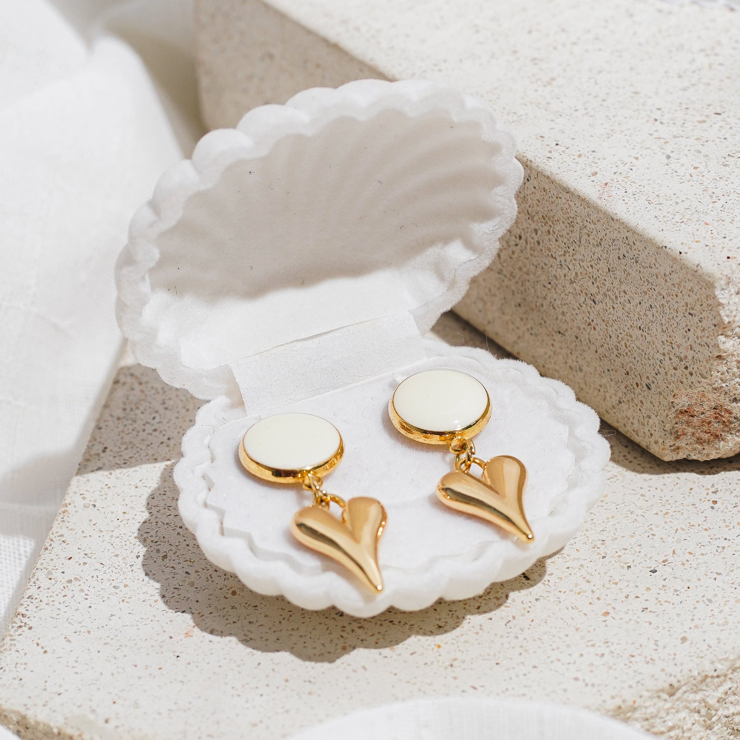 Love Marie earrings complement our heart shaped necklace on snake chain, all is consciously crafted with gold-plated 304 stainless steel