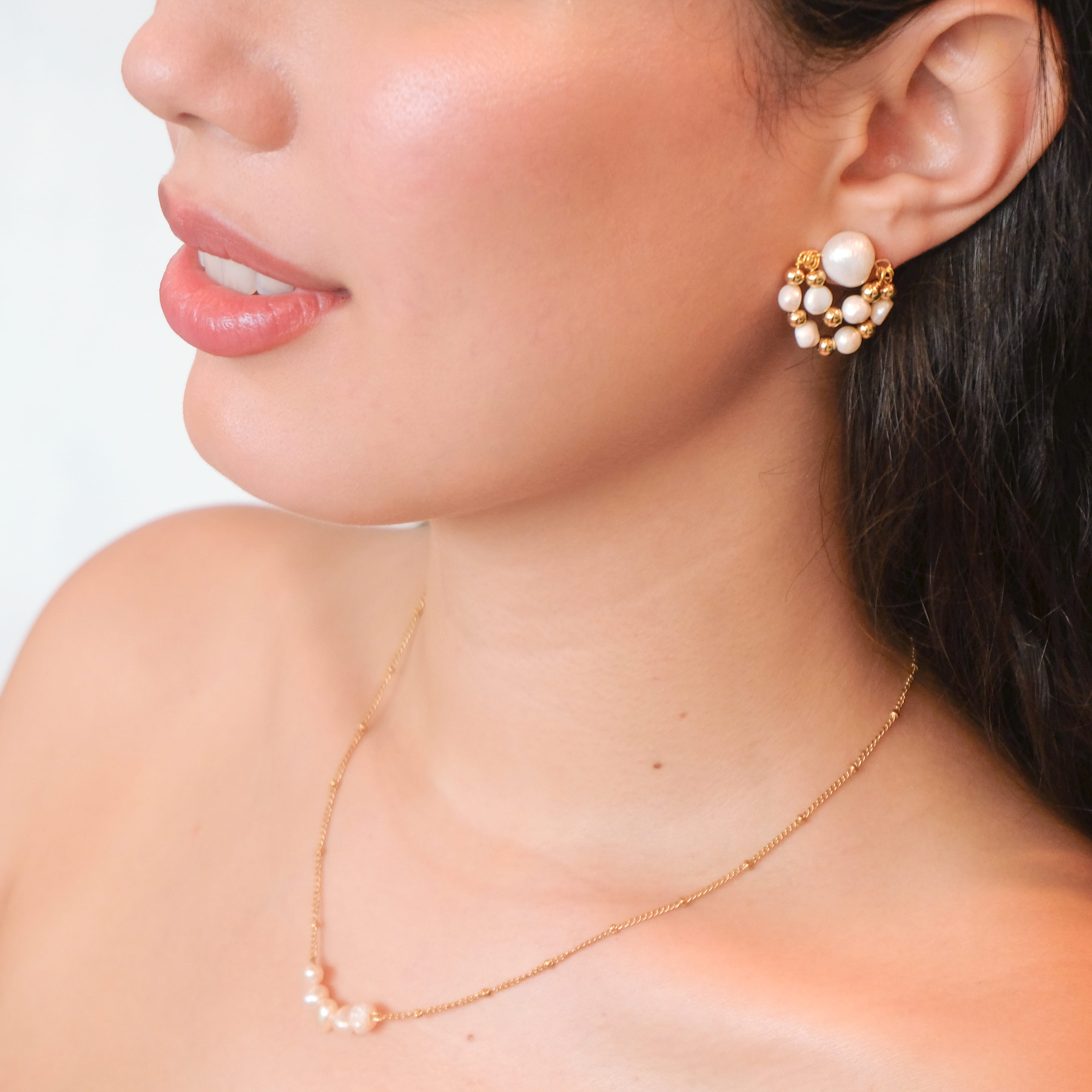 Handmade baroque pearl earringsComponentsstainless steel gold-plated hardwaresouth sea pearlsDimensions1 inch in lengthLightweightDue to the handmade nature of our earrings, lengths and sizes may vary but very minimal. Note: Pearls are baroque- naturally irregularly shaped and may not exactly match as a pair. Expect differences in shape, texture, coloration and size.