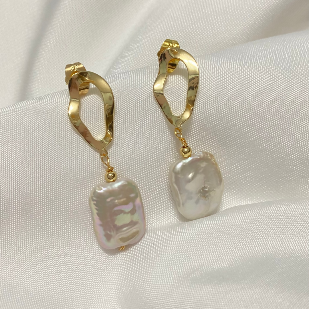 Mother of Freshwater Pearl Earrings Material: Gold Plated Shape: Rectangle