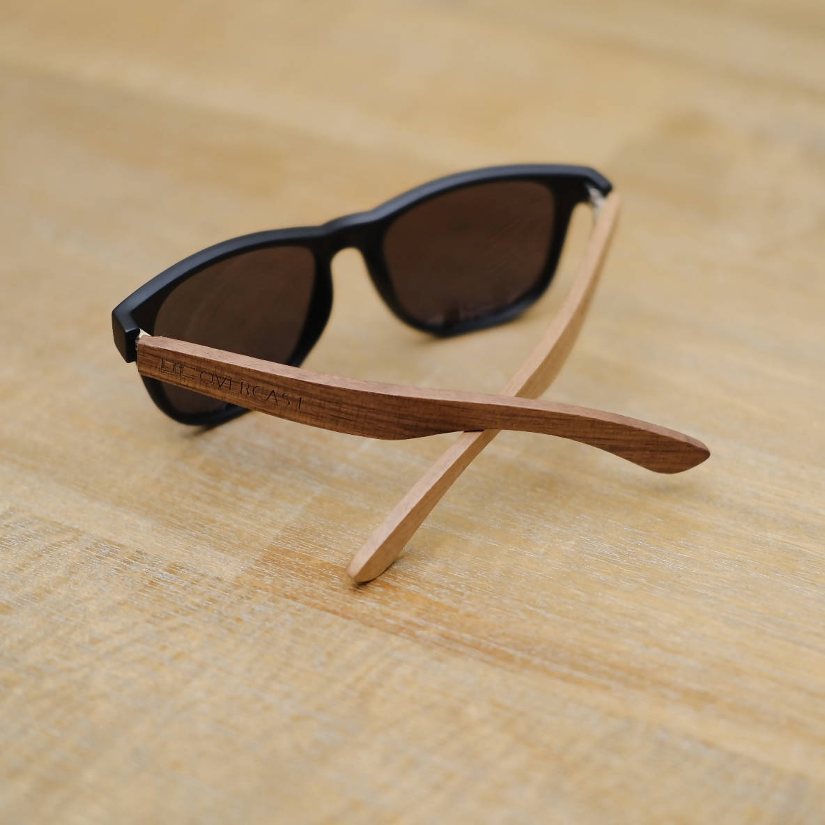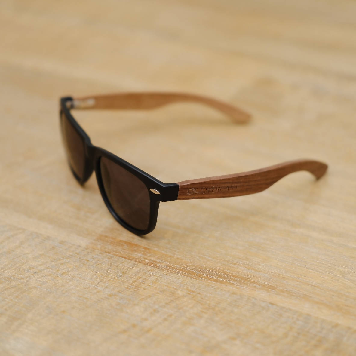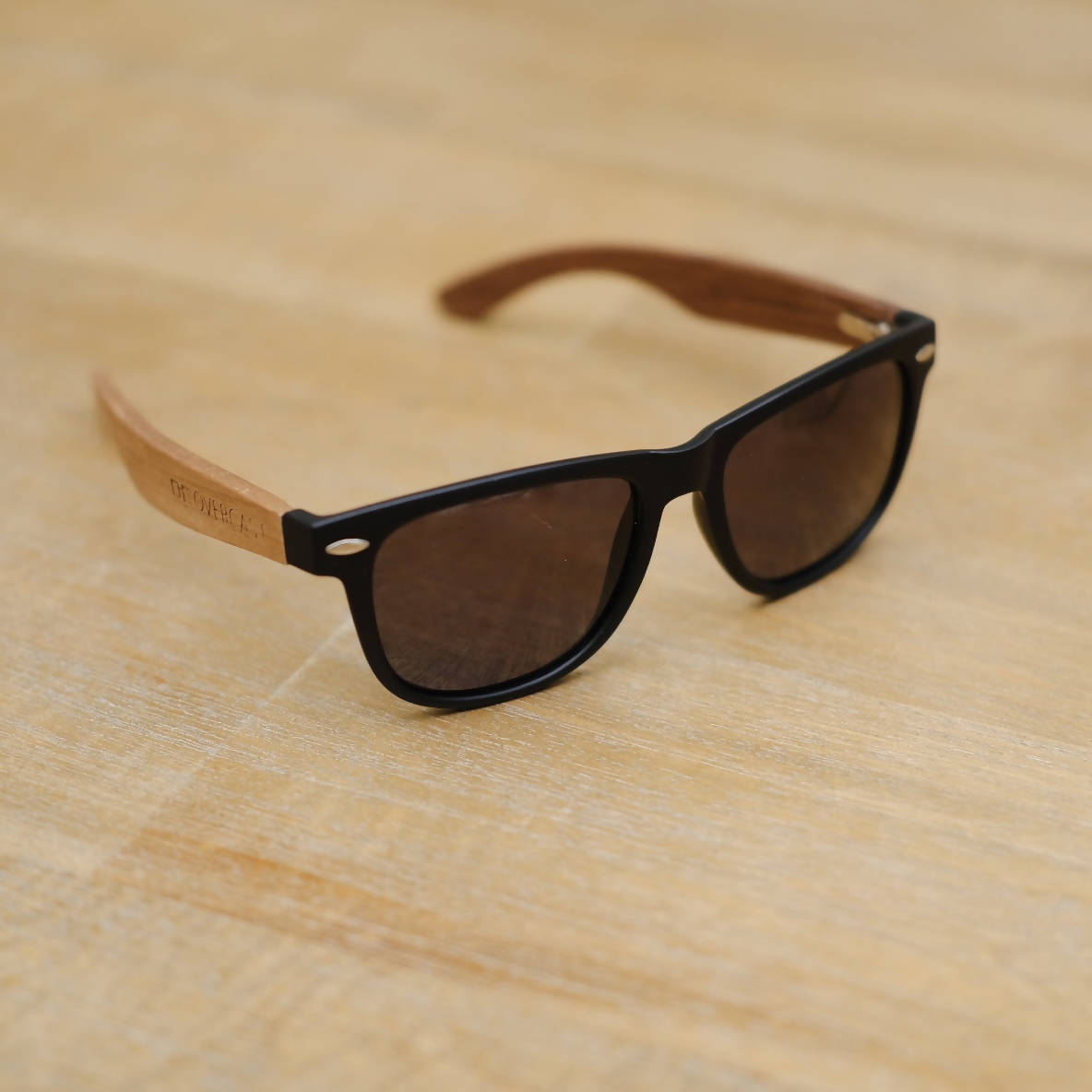 Sustainable wooden square sunglasses. • Made with sustainably sourced wood temples• Polycarbonate frames with matte finish• Saddle bridge• Metal spring hinges • Smoke black polarized lenses with maximum UV protection Lens - 55 mm | Bridge - 20 mm | Temple - 145 mm