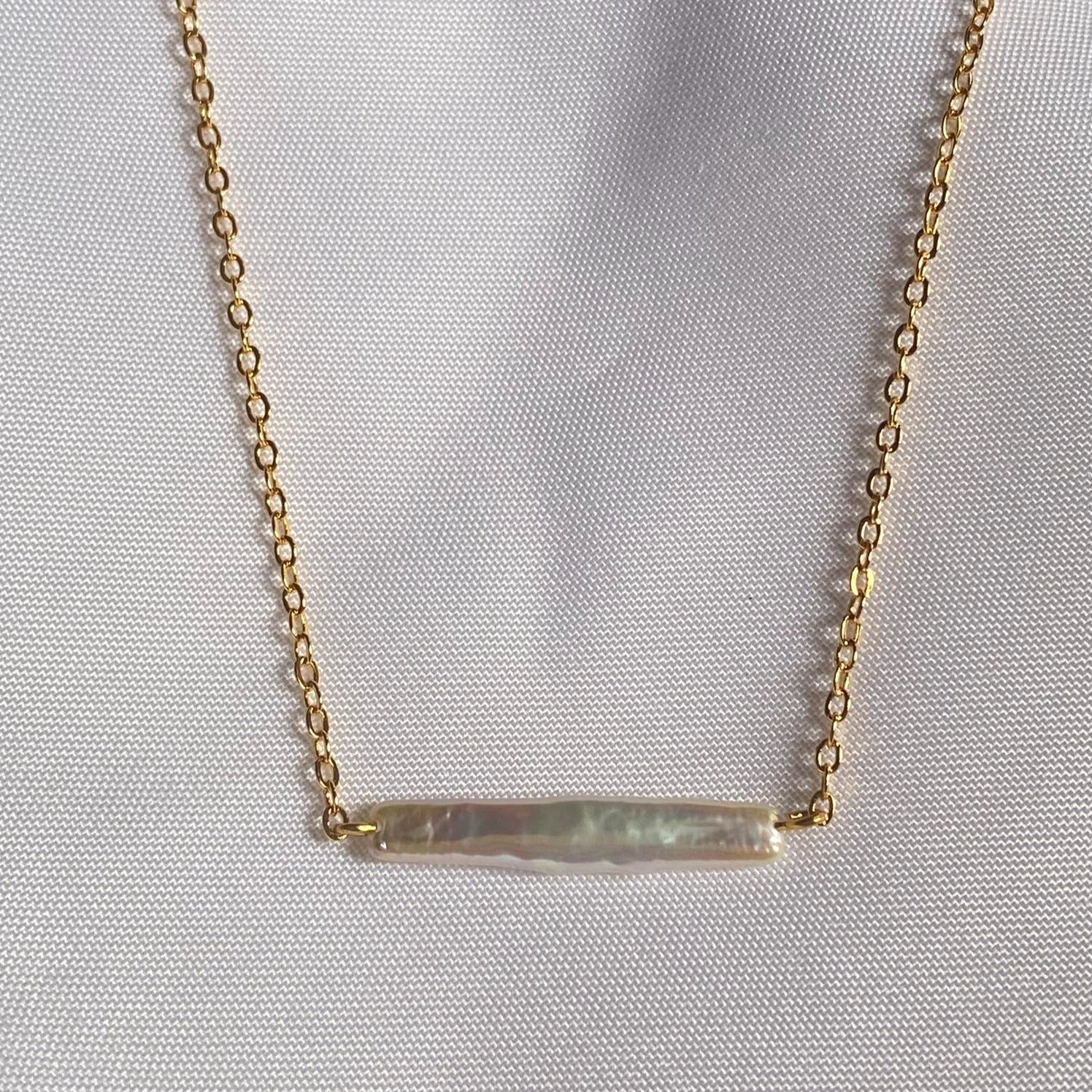Freshwater Pearl Necklace Material: Stainless Steel Lock Length: 18 inches Shape: Irregular Size: 8-9 mm
