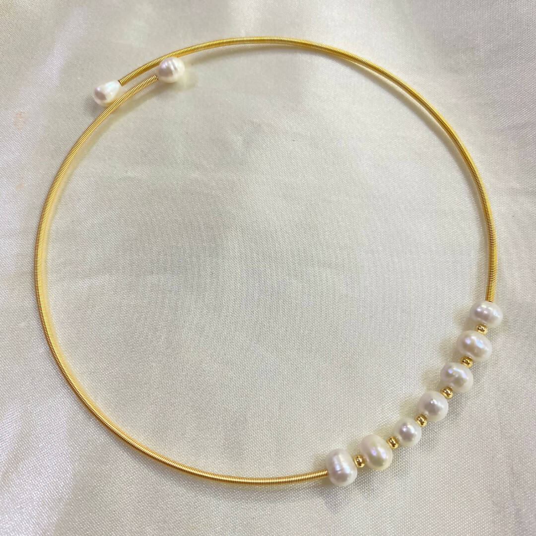 Freshwater Pearl Choker Material: Gold Plated Length: 14 inches (adjustable) Shape: Potato Size: 8-9 mm