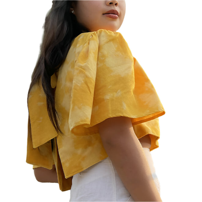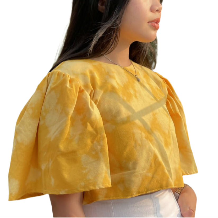 Made of Bleached Viscose Linen, Sorbetes is a round neck top with a casual Filipiniana sleeves and has a cute tie back detail! Size Guide SIZE BODY LENGTH SHOULDER BUST WAIST ARMHOLE SLEEVE LENGTH SMALL 16" 13 1/2" 32-34" 26-28" 16" 11" MEDIUM 17" 14" 34-36" 28-30" 17" 12" LARGE 18" 14 1/2" 36-38"" 30-32" 18" 13"