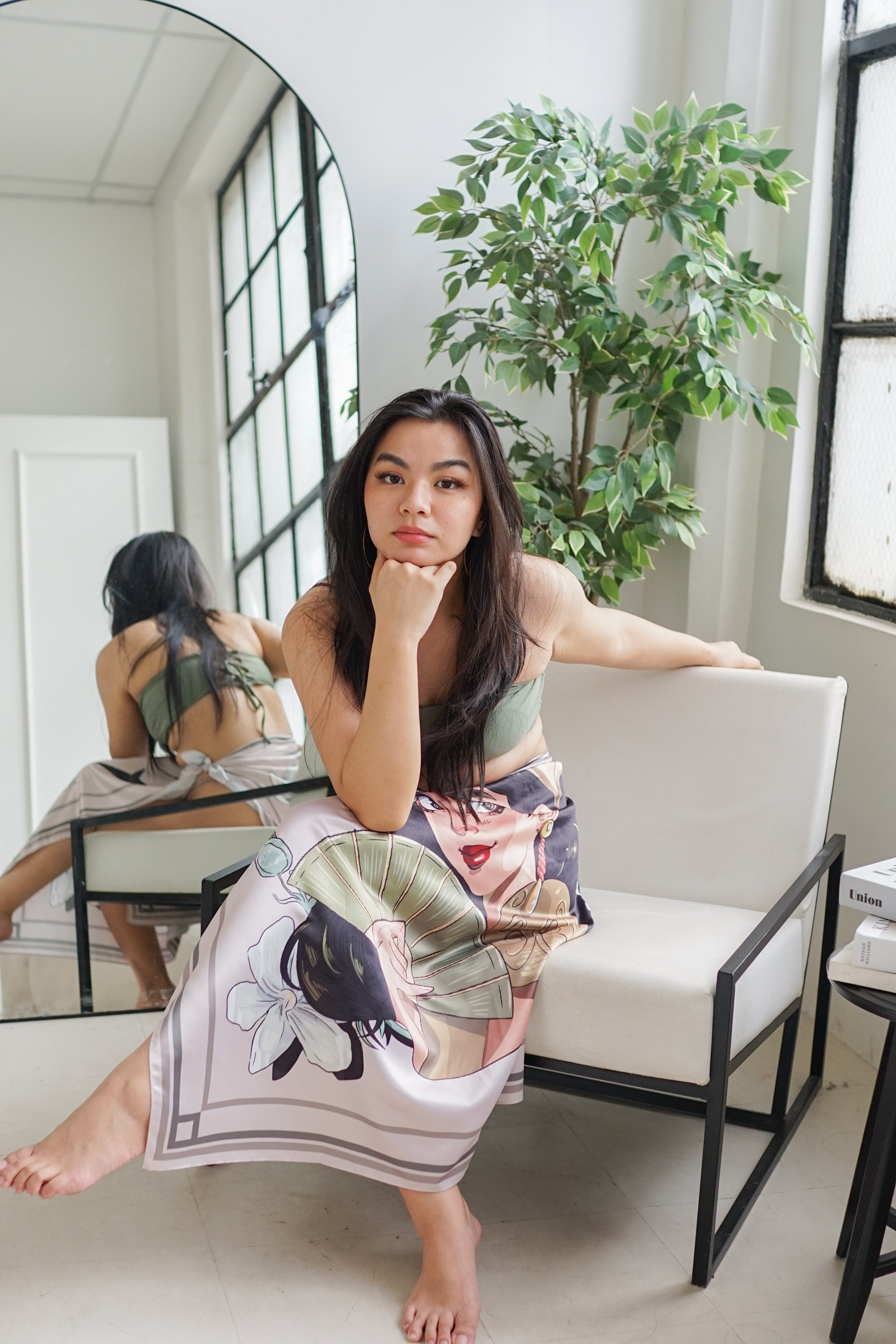 Wrap yourself in elegance and cultural pride with this stunning satin scarf from Filipina artist Alyssa Bartoline’s Marilag Collection. This piece features Alyssa’s captivating digital artwork, inspired by Filipino heritage, seamlessly printed on high-quality satin for a luxurious, soft feel and a radiant finish.
