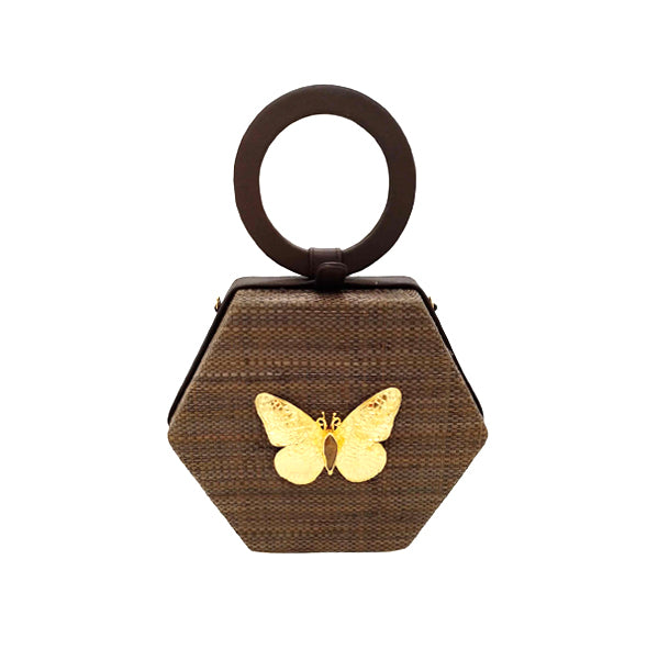 RAFFIA WITH LEATHER HANDLE AND GOLD BUTTERFLY