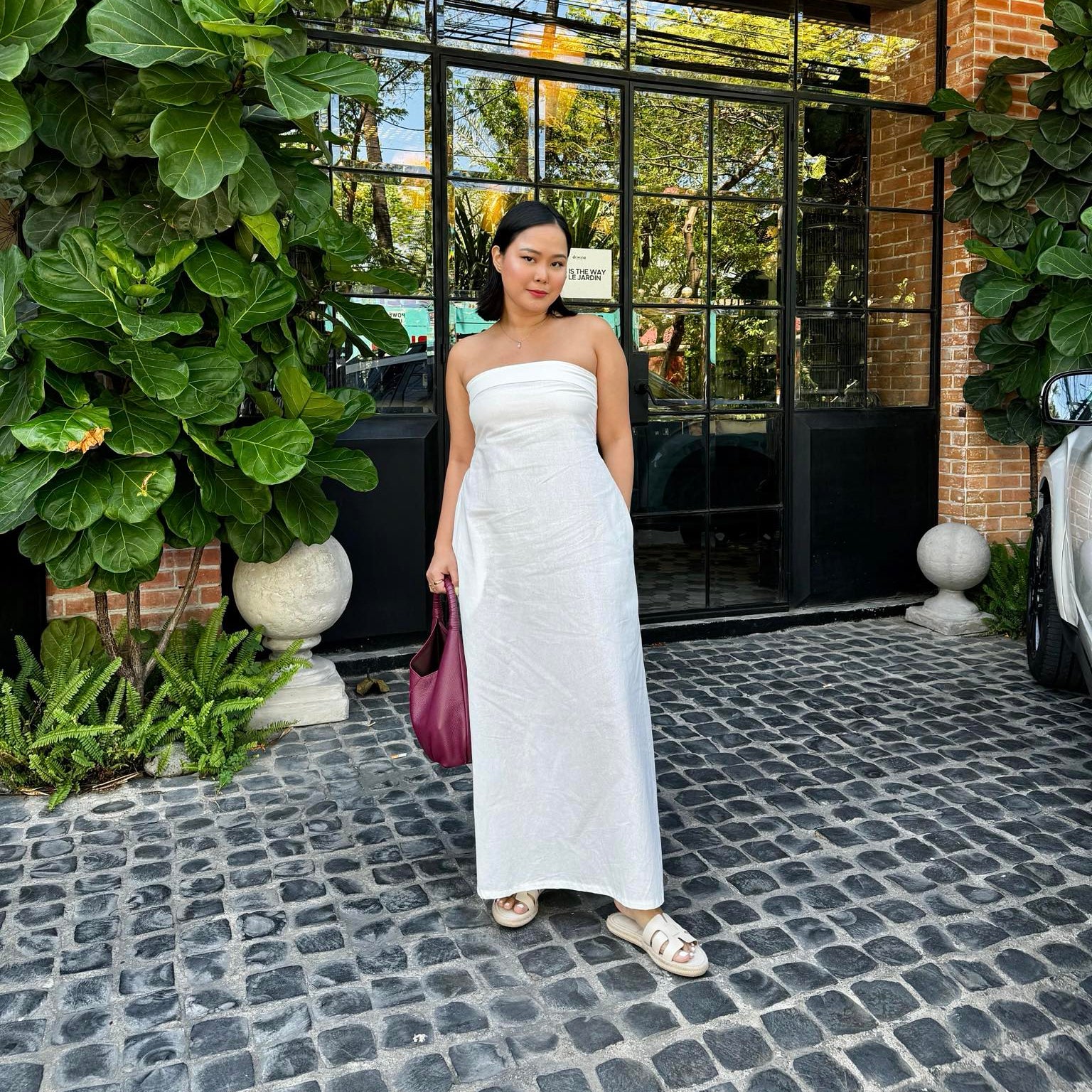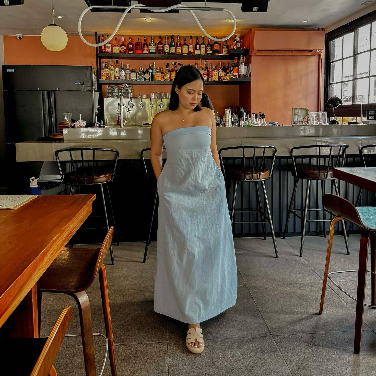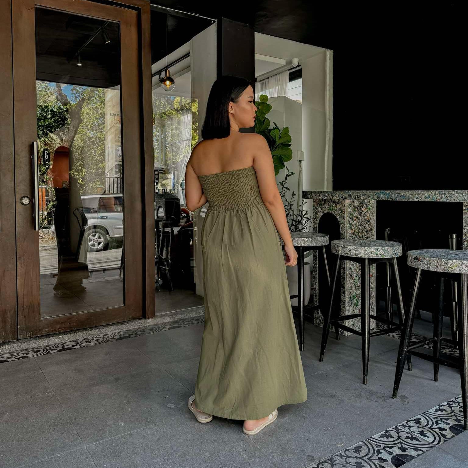 Marie Tube Dress- A linen dress that is perfect for any occasions. It has 2 pockets and will give you a very flattering body shape!- 44 to 45 inches length- garterized or smocking back details- Freesize, can fit XS to semi Large frame