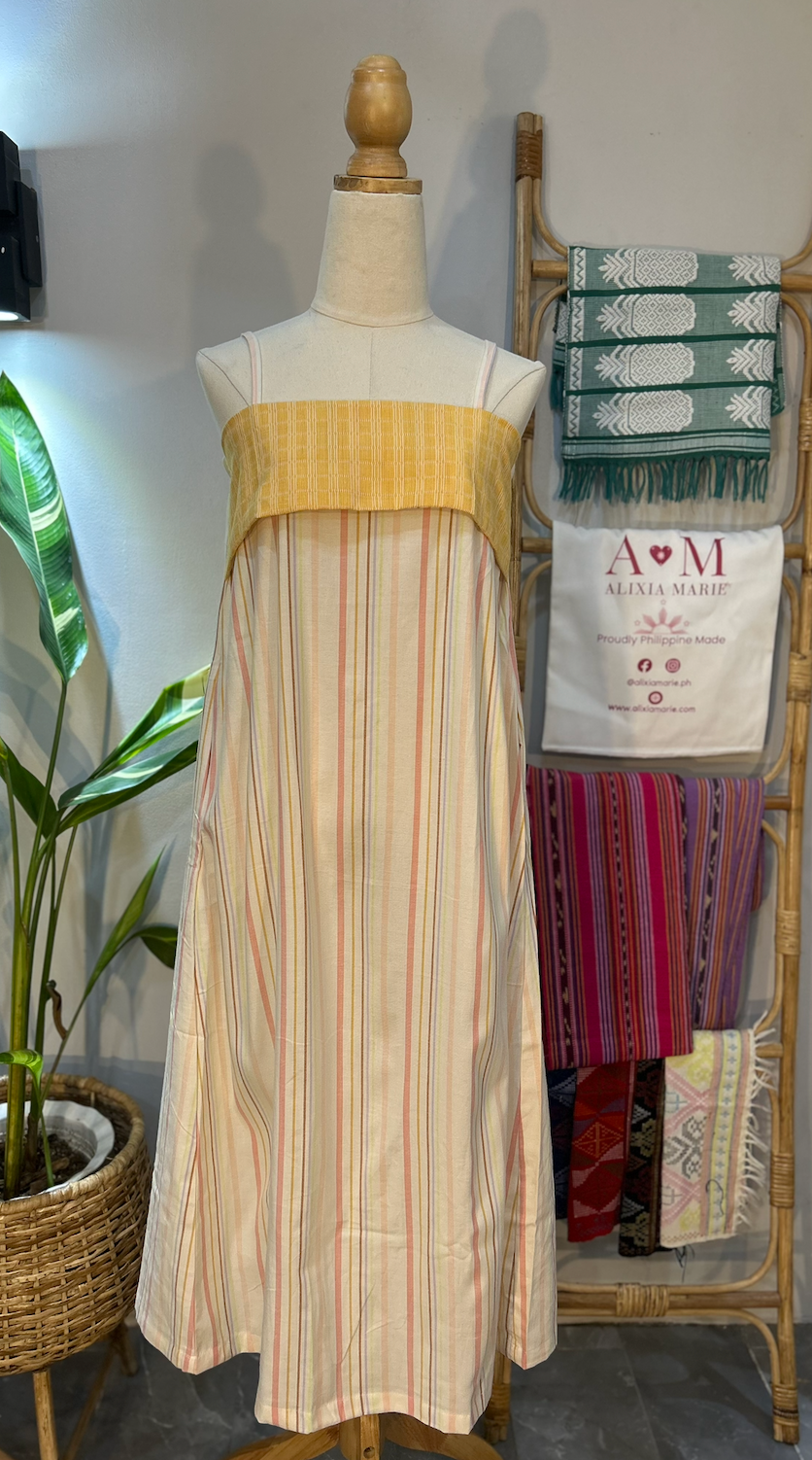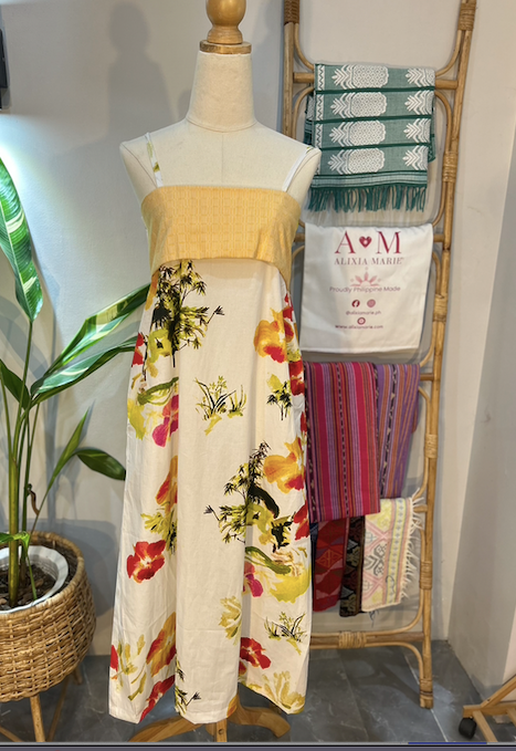 A versatile summer staple with a touch of Filipino heritage. The Mars Dress can be styled three ways: as a tube dress, a strappy sundress, or a flowy skirt. Designed with soft floral fabric and accented with Binakol handwoven weave at the bust, it's both functional and meaningful.