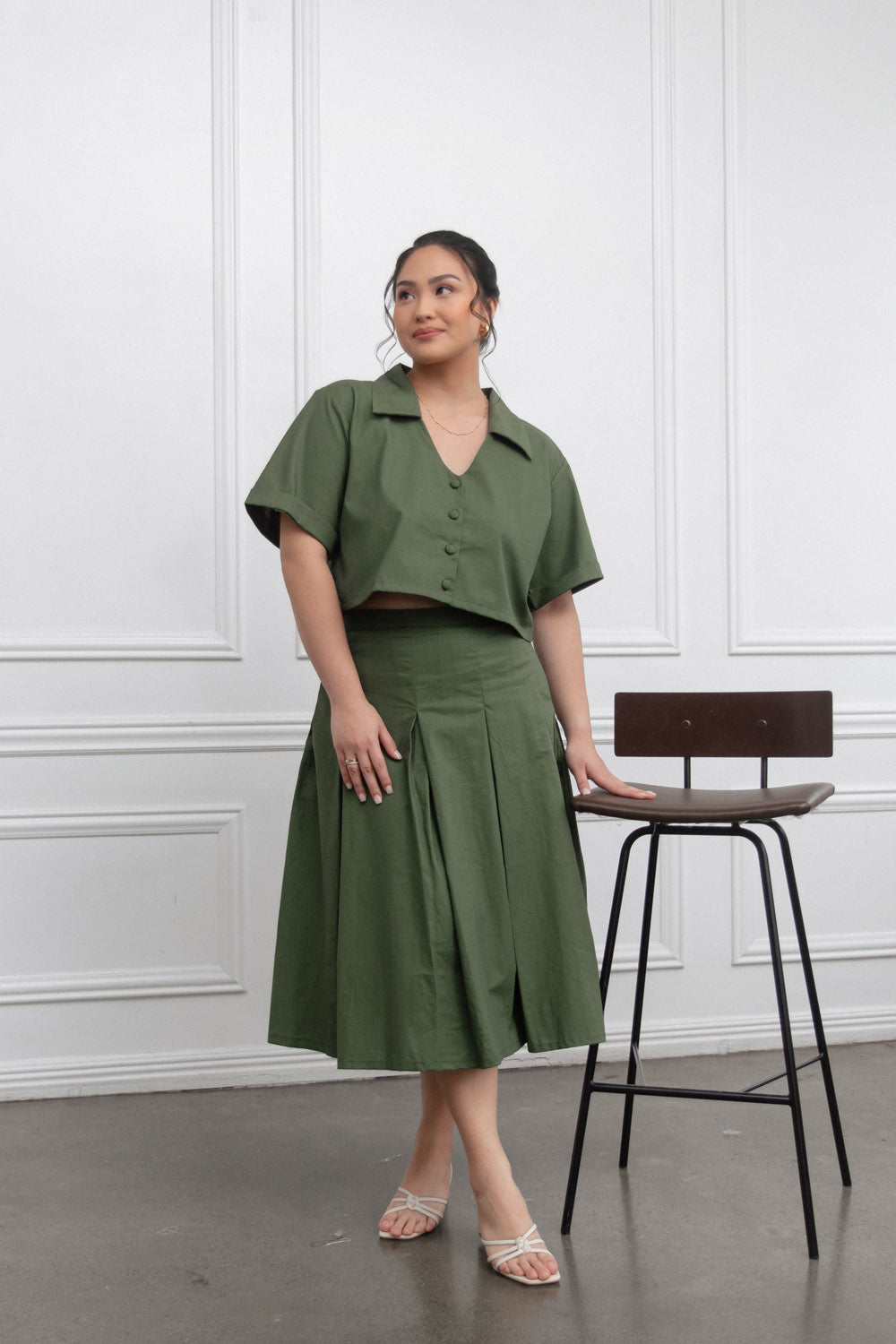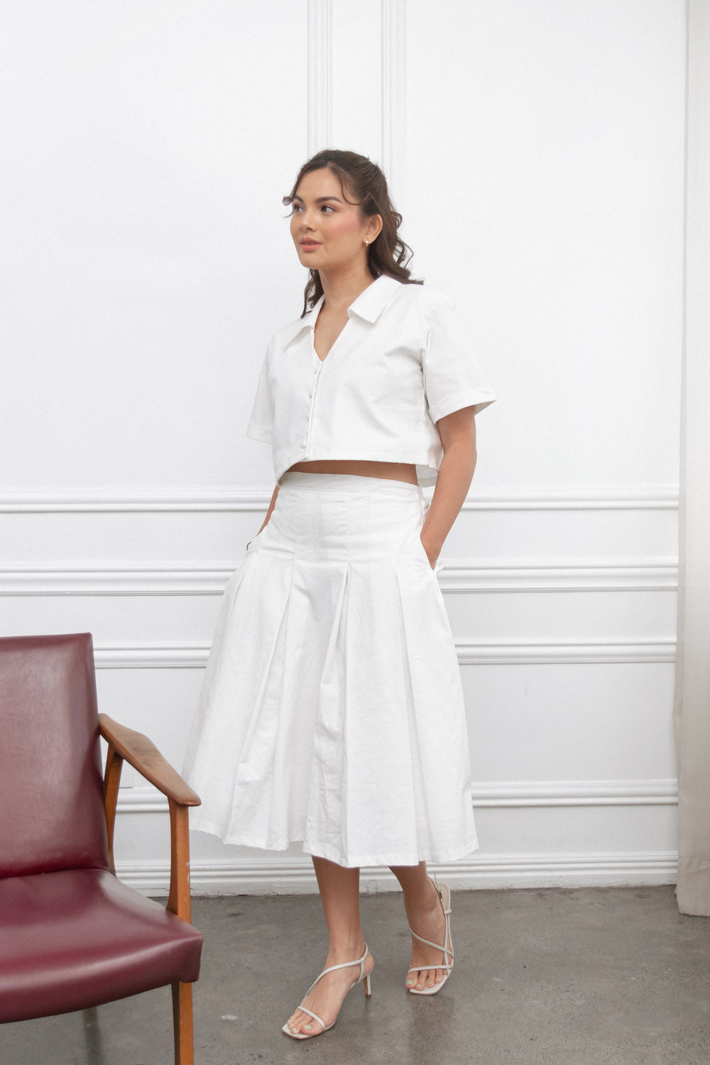 Our items are locally produced by talented Filipino artisans.Material: Linen fabricSide zipper for the skirtSide pocketsAvailable in XS to 2XL.Models is wearing S.Actual color may vary.