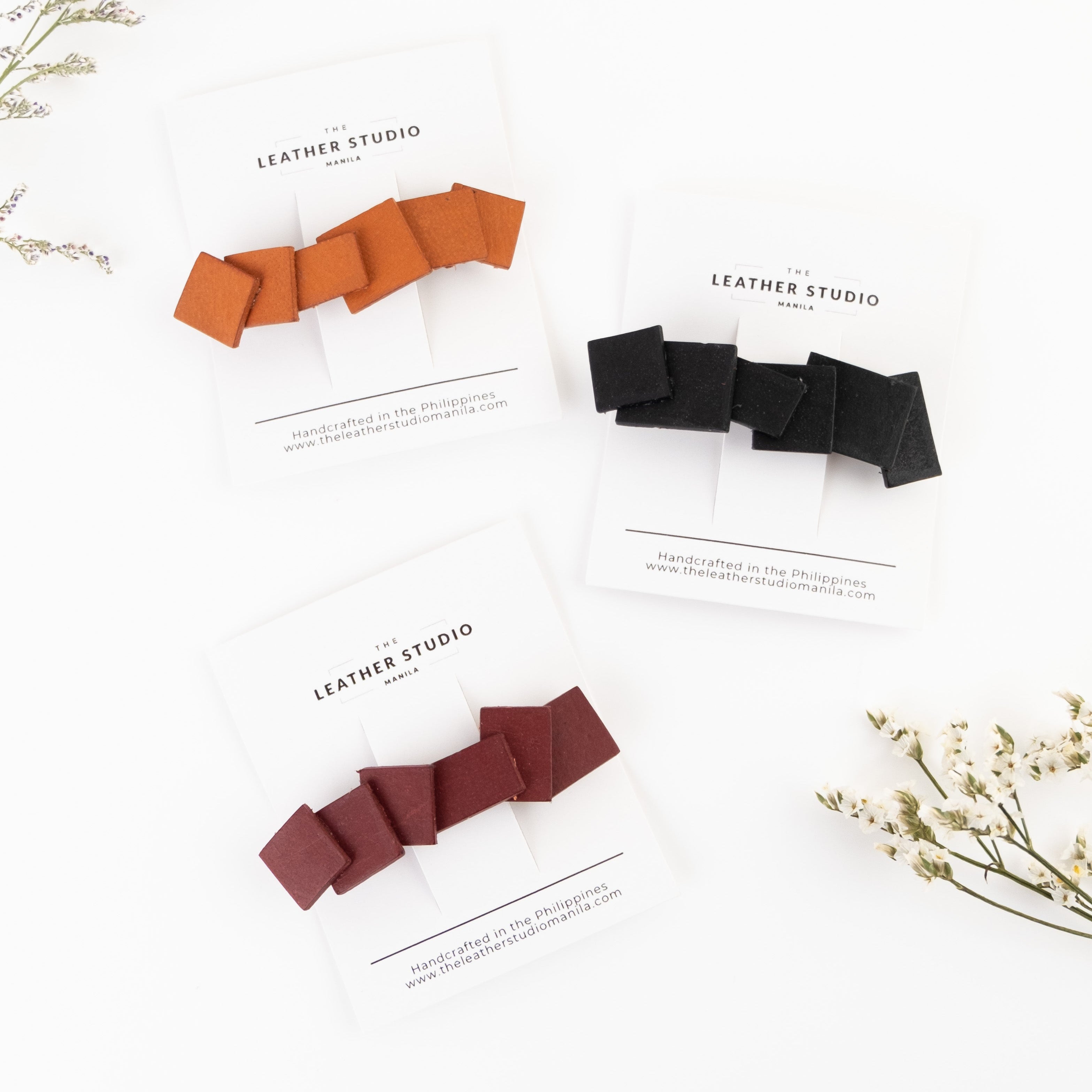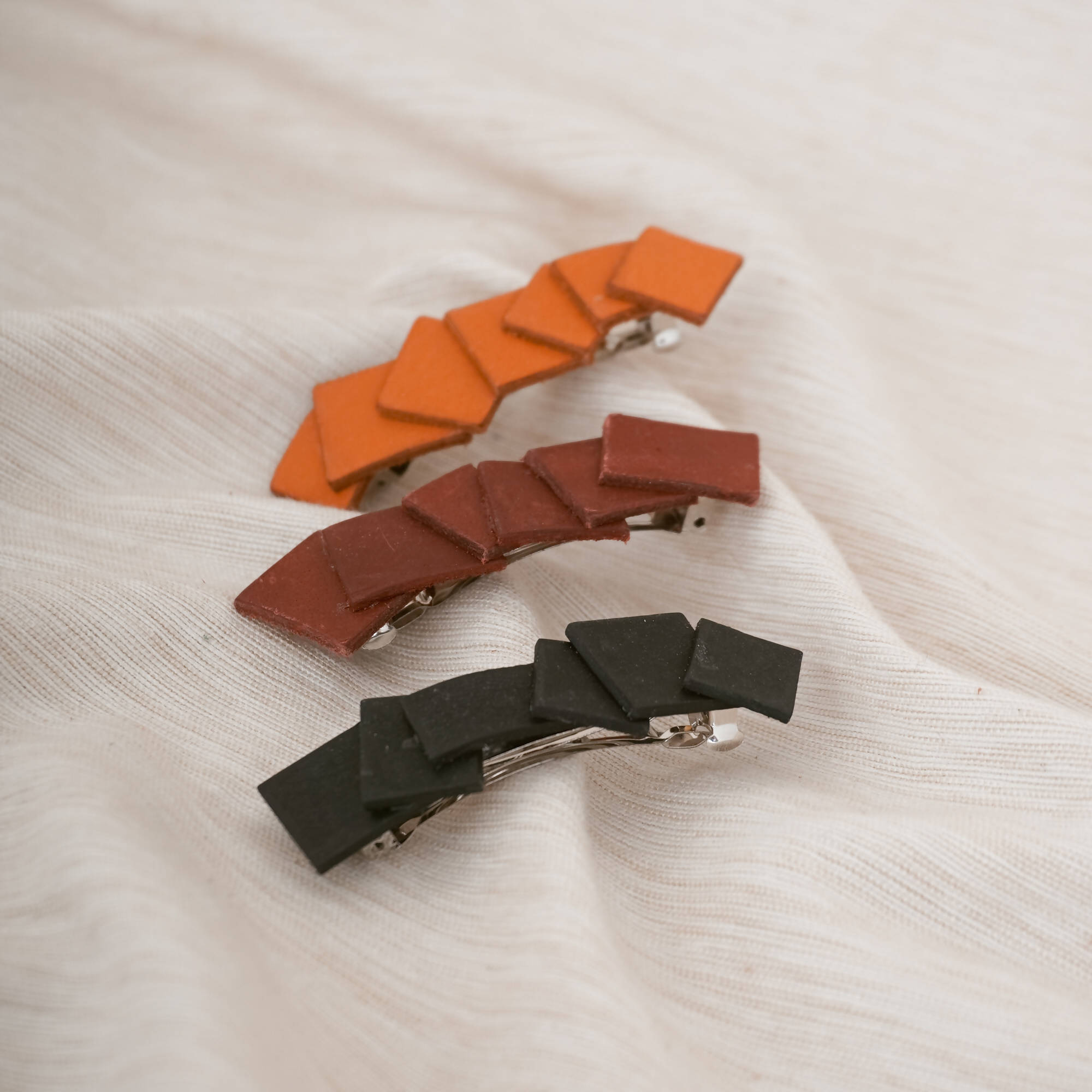 Made from upcycled vegetable-tanned leather Dimensions: 60 mm (actual clip without the leather) Dimensions: 65-70 mm (from one of the leather to the other)