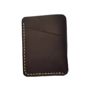 Lightweight and slim, our Leather Men's Card Sleeve is a stylish alternative to a full-sized wallet carefully crafted to easily slip into your back pockets or small bags when you want to travel light.DIMENSIONS (INCHES): Width: 3" Height: 3.75" MATERIAL & OTHER DETAILS:Semi-round edge with white thread