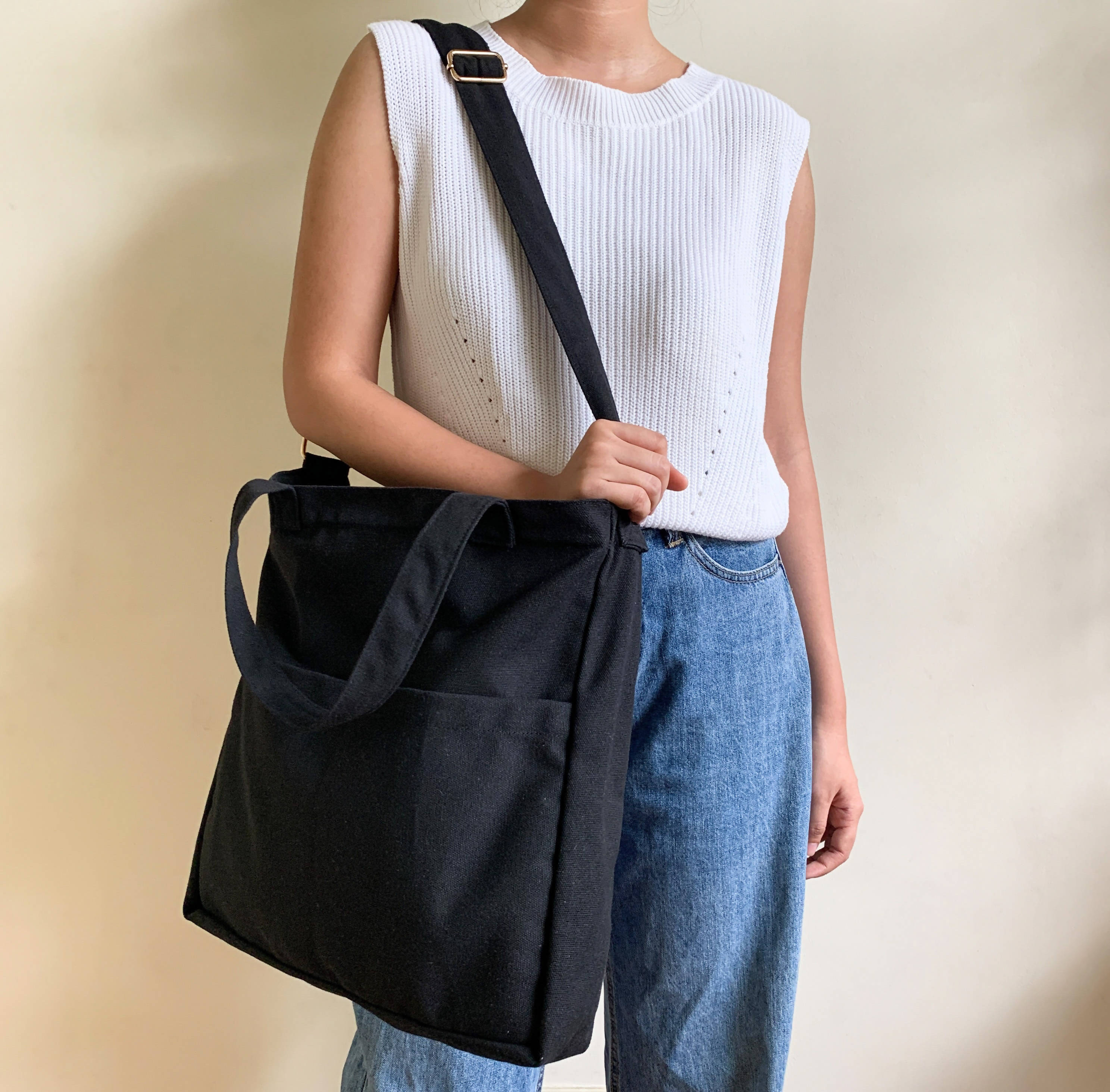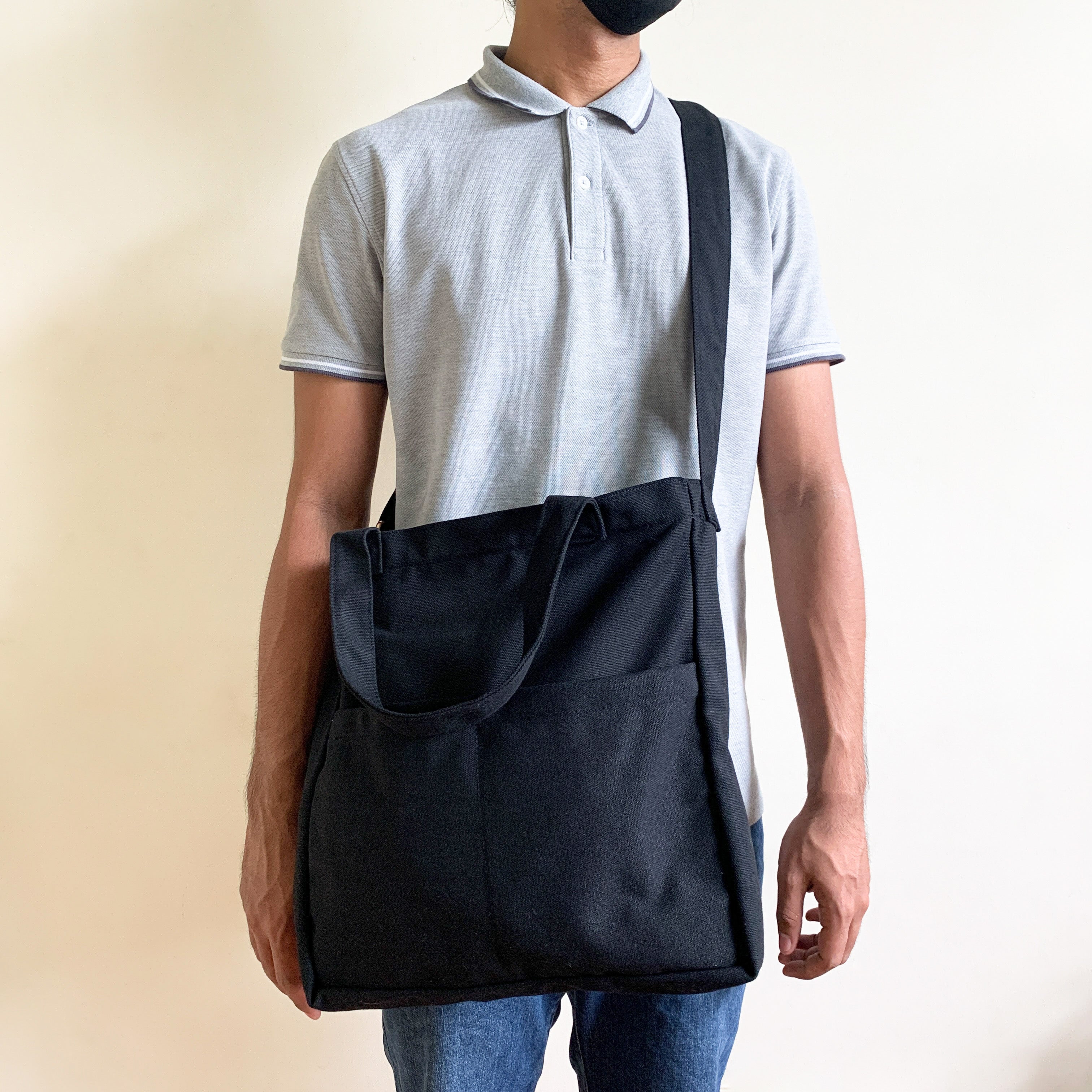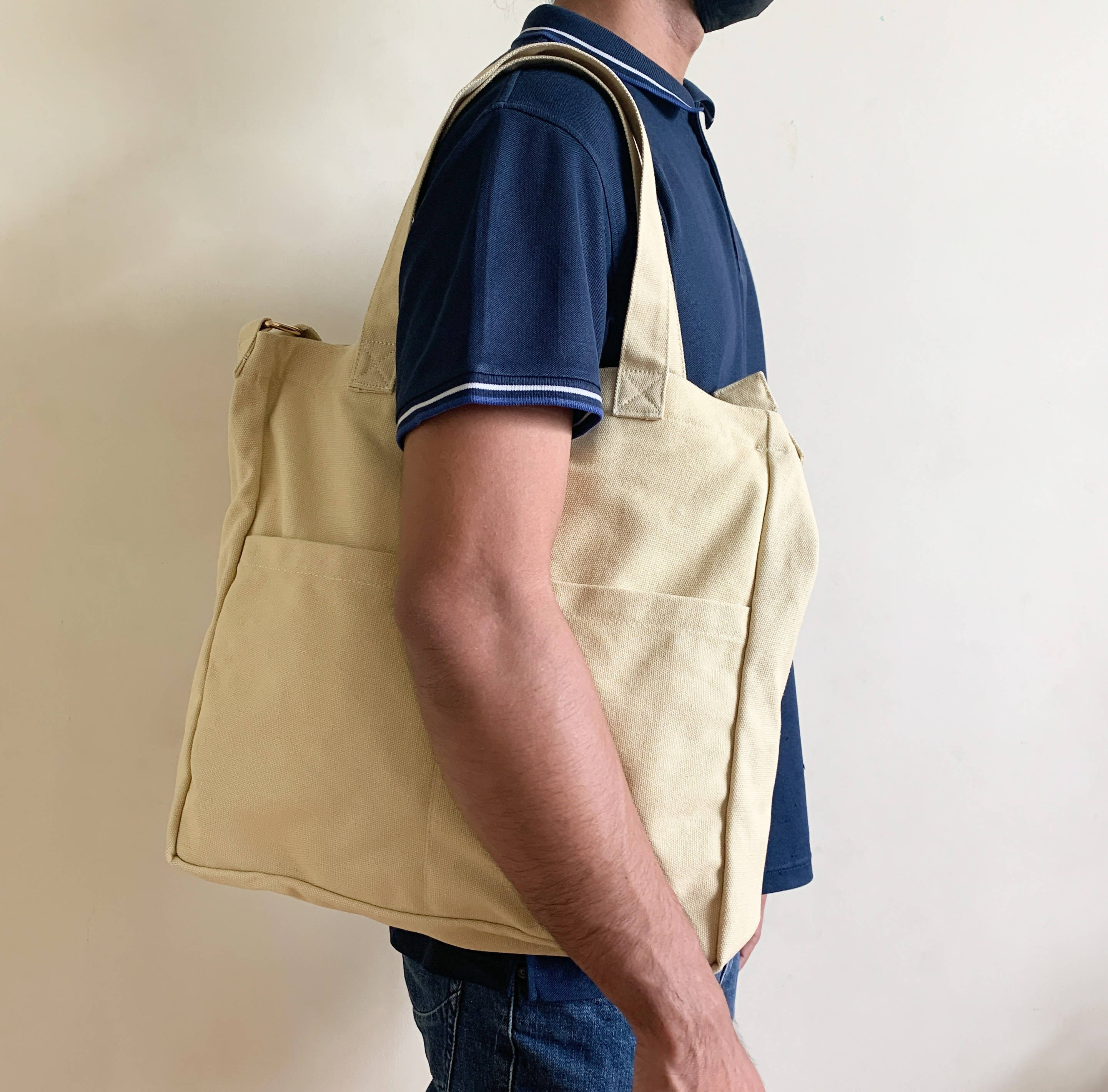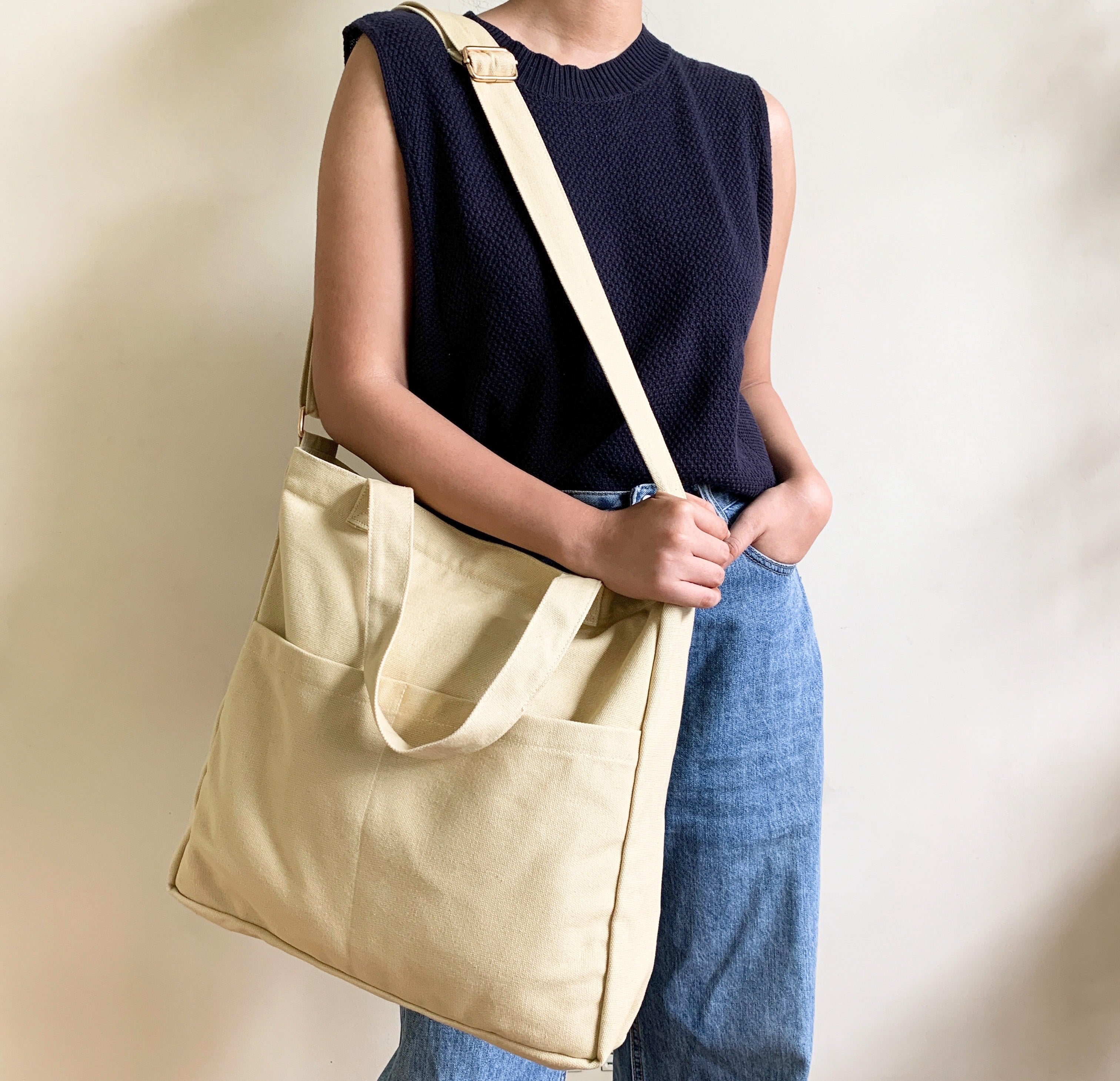 The perfect blend between our Basic Canvas and Daily Canvas – and your new best friend for heavy duty tasks! • H: 14.5 in. / L: 17 in. (laid flat) / W: 3 in.• Thick canvas fabric• Unisex design• Zipper closure• Adjustable strap (maximum 50 in.)• Two front pockets• Inner pockets (big and small)• Bottle holder (can fit bottles up to 3.5” in diameter)• Can comfortably up to 15-inch laptops