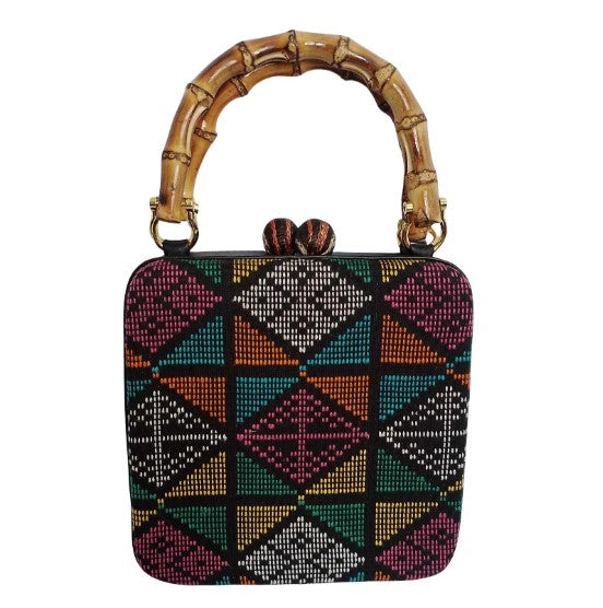 TINALAK MOLDED BAG WITH ETNIC DESIGN TRIBES WITH BAMBOO AND CHAIN