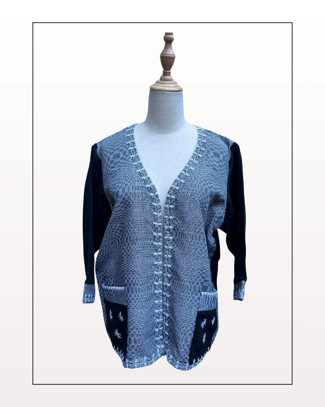 MIxed weave Kantarines-Binakol kimono jacket with Itneg embroidery