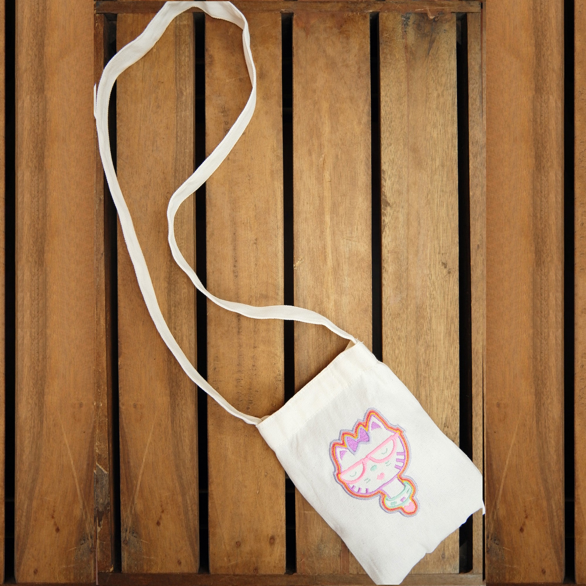Mrs Kitty on Natural Canvas Mini Sling Bag