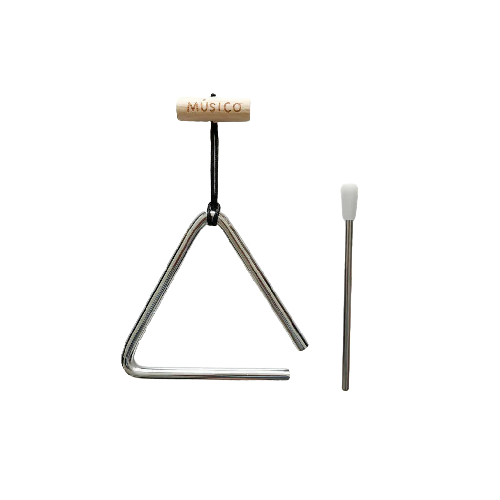 The mini triangle is a percussion instrument with three sides and curved corners. There is always one corner where the sides do not join, which makes it possible for the instrument to vibrate.