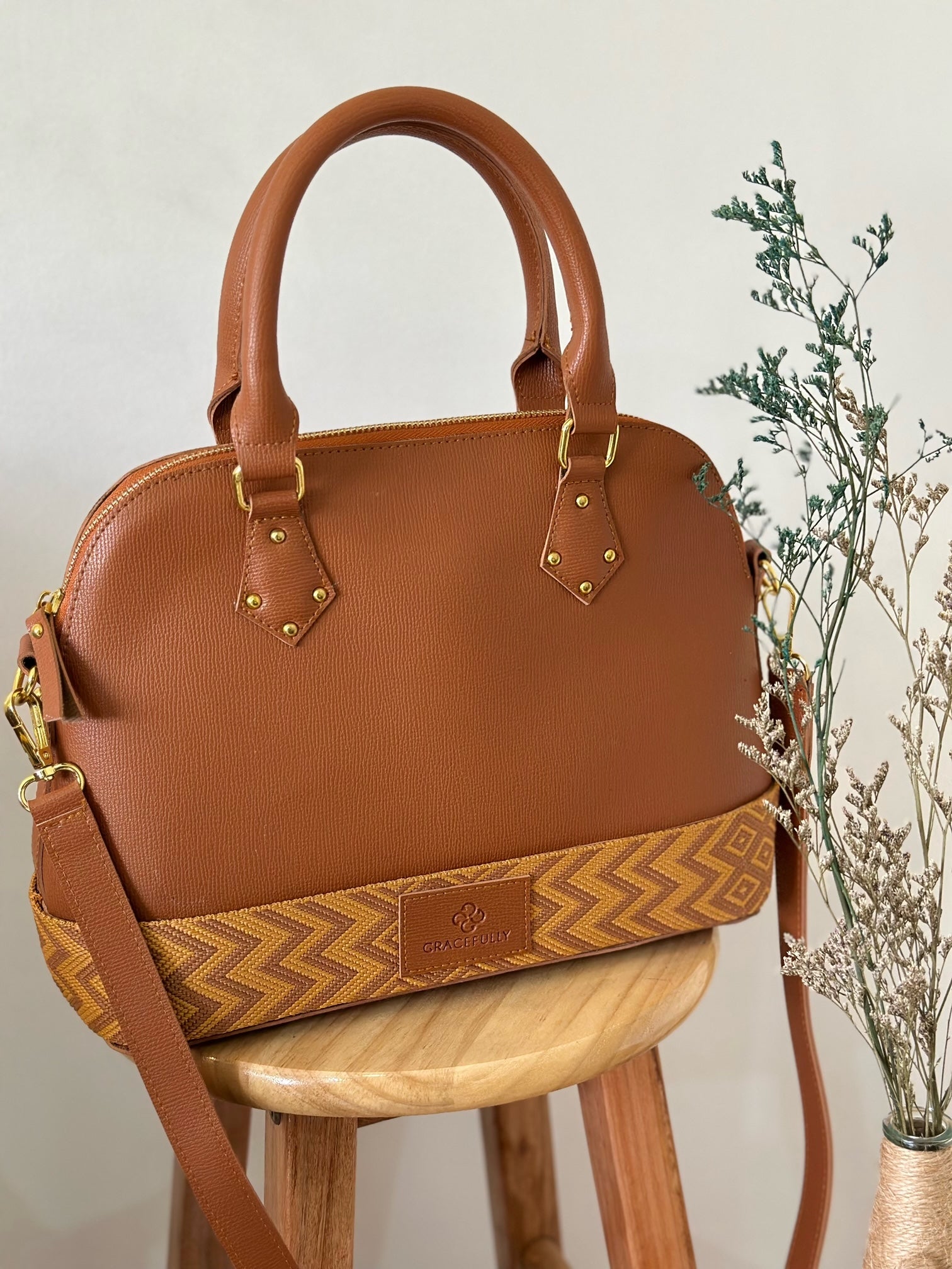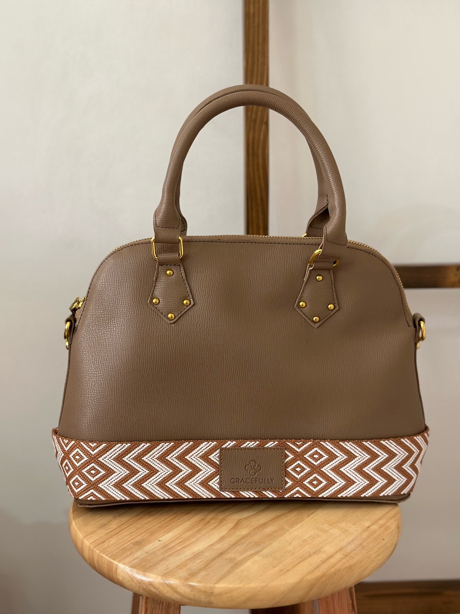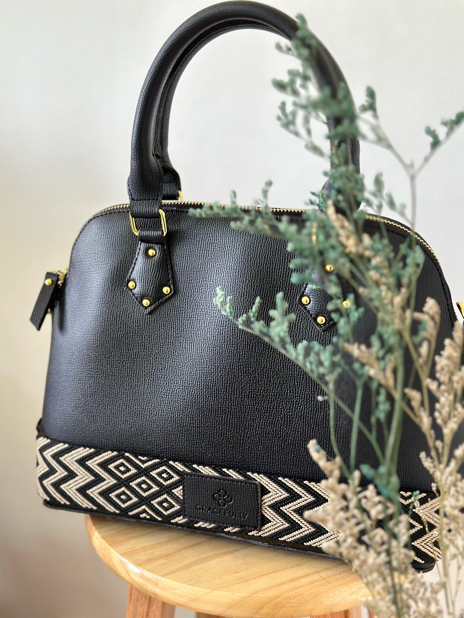 12" x 9" x 4.5" LHWHandwoven AccentHandle drop approx 5"3 interior pocketsdetachable sling