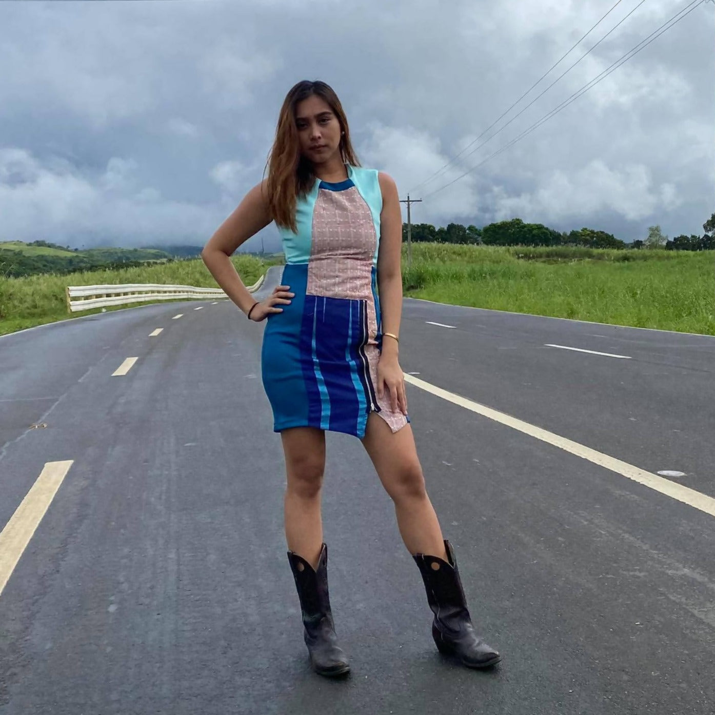 Here she is Nene, this dress is the coolest ever Vida designed using a combination of upcycled cloth from different weave patterns. Nene is a straight-cut mini skirt using stretchy materials with a zipper in the front. With a different tone of colors is 100% handwoven by Negros Island Weavers.