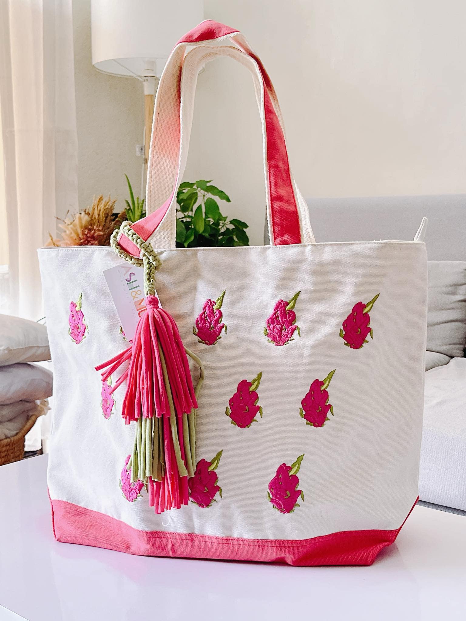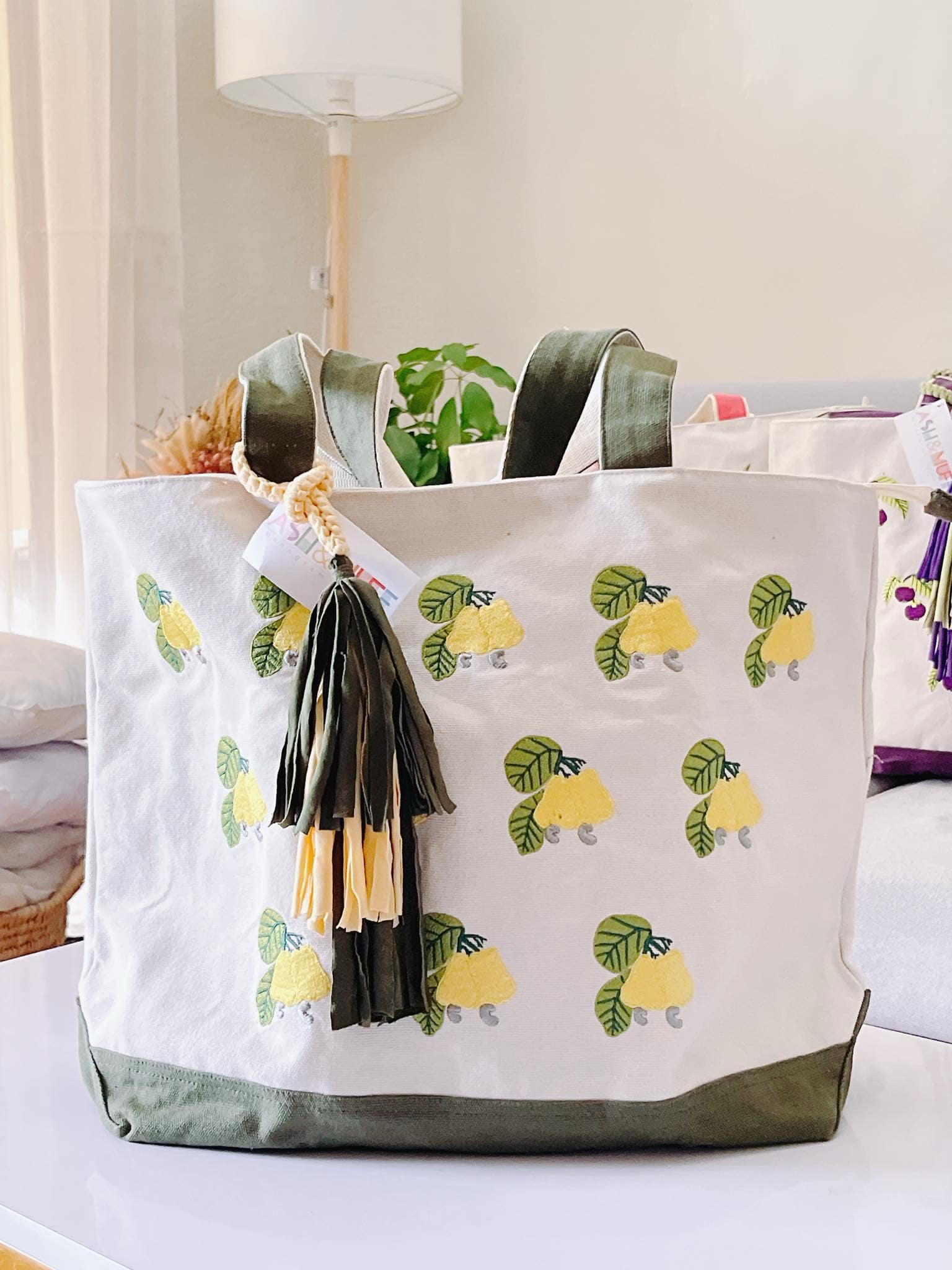 MangosteenCelebrate the flavors of the Philippines with our @ninnadelmundoart Mangosteen Tote Bag. This luxurious fruit is beloved for its stunning purple exterior and sweet, surprising flesh inside. Paired with a gorgeous handmade tassel in eggplant purple and pale green made by @grow.ph , this tote is the perfect accessory for any occasion. 🛍️💜CashewBrighten up your summer wardrobe with our gorgeous @ninnadelmundoart Tote Bag. The vibrant yellow pattern is one of a kind and sure to turn heads. Pair it with your favorite summer outfit for a fun and stylish look. StarfruitThe star fruit evokes childhood memories in many of us who would climb neighborhood trees during odd and lazy summer afternoons (pre mobile phone era!) We love the illustrations by @ninnadelmundoart here, rendered in a zesty green embroidery reminiscent of the tart, sour flavors and textures of this quintessential fruit.DragonfruitCheck out our limited-edition tote collection featuring the stunning dragon fruit design (also known as "pitaya") from the talented artist @ninnadelmundoart. The intricate pen and ink illustration is brought to life with brilliant pink-red embroidery and topped off with a gorgeous tassel in green and hot crimson made by the mothers from @grow.ph . Get your hands on this one-of-a-kind piece! ✨️