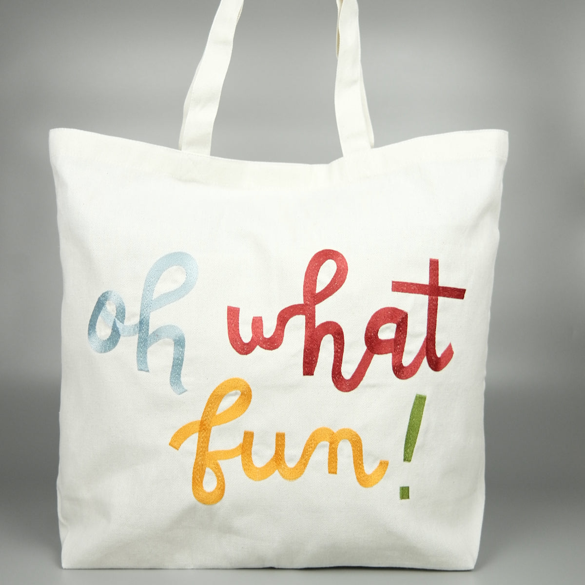 15 inches tall by 19 inches widehandle drop 9 inchesembroidered designnatural canvas materialopen tote with velcro closuremade in the Philippines