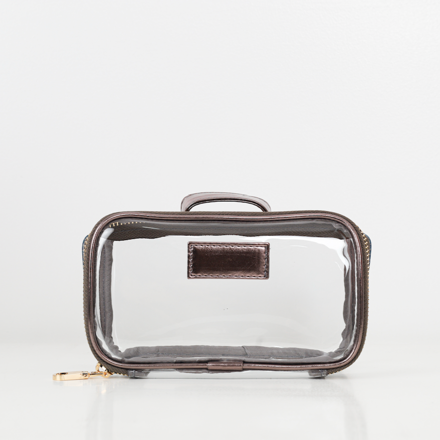Add a pop of fun and function to your routine with the Ollie Poppy Vanity Kit – the clear, colorful organizer your essentials have been waiting for. With its transparent body and bold, glossy trims, this vanity kit combines playful style with everyday practicality.Features: Clear PVC body for quick visibility Glossy trim in vibrant shades Gold-tone zip closure with easy-pull tab Top handle for easy carrying Water-resistant and easy to wipe clean