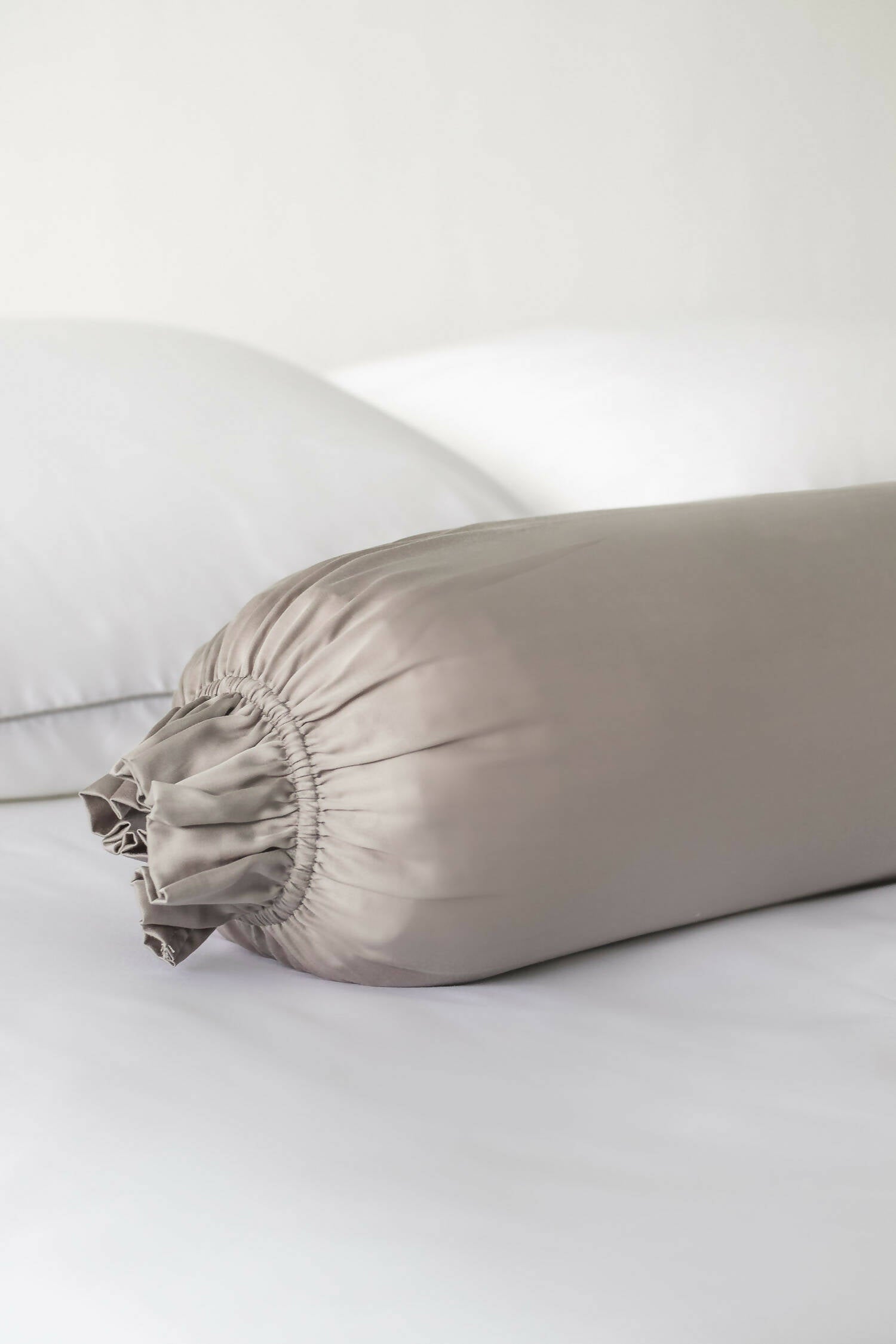 Comfortable & supportive. Bolster, hotdog, po-tsim or long pillow, whatever you call it, our version of this pillow is an absolute delight to hug—buttery soft on the skin yet firmly contours and supports your body.  Thermoregulating and sweat wicking. Bamboo Lyocell helps you sleep comfortably and wake up fresher, whether you sleep hot or cool.  Hypoallergenic & naturally antimicrobial. Bamboo is naturally resistant to bed bugs, dust mites and other allergens. Perfect for those with sensitive skin. Material 100% Organic Bamboo Lyocell shell + hypoallergenic microfiber fill STANDARD 100 by OEKO-TEX® Certified — tested for 350+ harmful substances to textile manufacturing Lightweight, machine washable and quick-drying Includes 1 x Bolster Pillow 22" circumference x 34" long (Bolster Cases available separately) Reusable bamboo drawstring bag