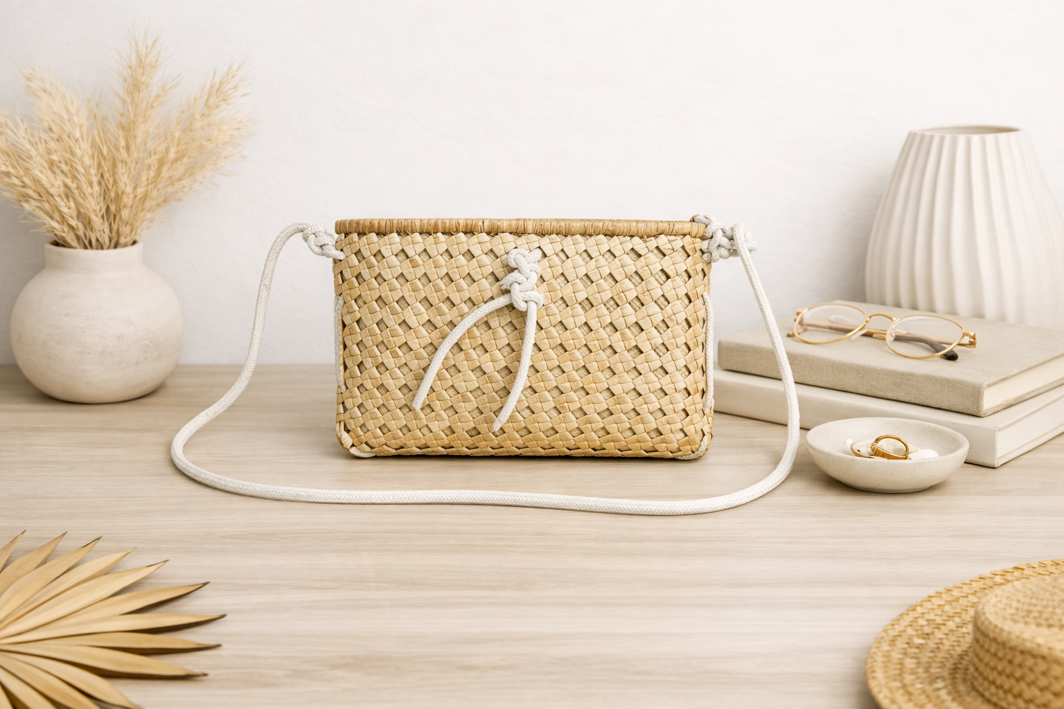 • Natural texture and neutral tone that matches both casual and resort-style outfits