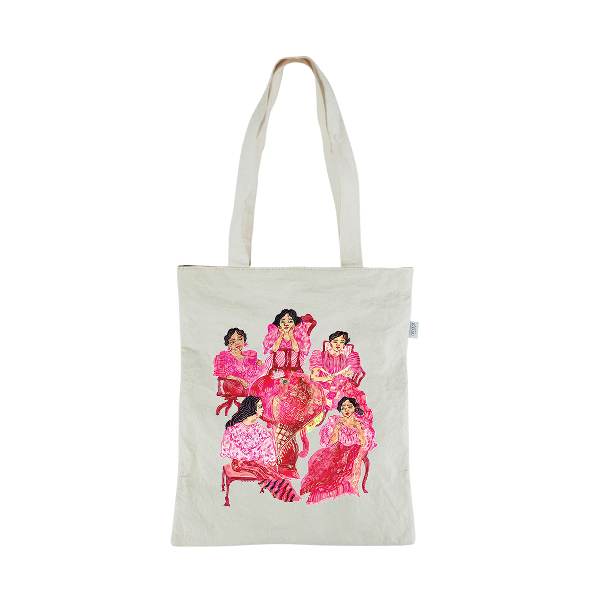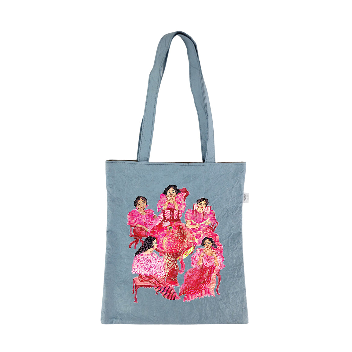 Printed Paper Leather Tote Bag DALAGANG PILIPINA by Justine Amores   Style: Reversible (Plain Color / Plain Kraft) Color: Cotton / Charcoal / Sea Material: Washable Leatherized Abaca Paper Size: W35cm x H40cm Key Features: *Washable Paper Leather *Reversible (2-in-1 bag) *Can carry up to 15kgs. *Tear-resistant *Water-repellent *Handmade