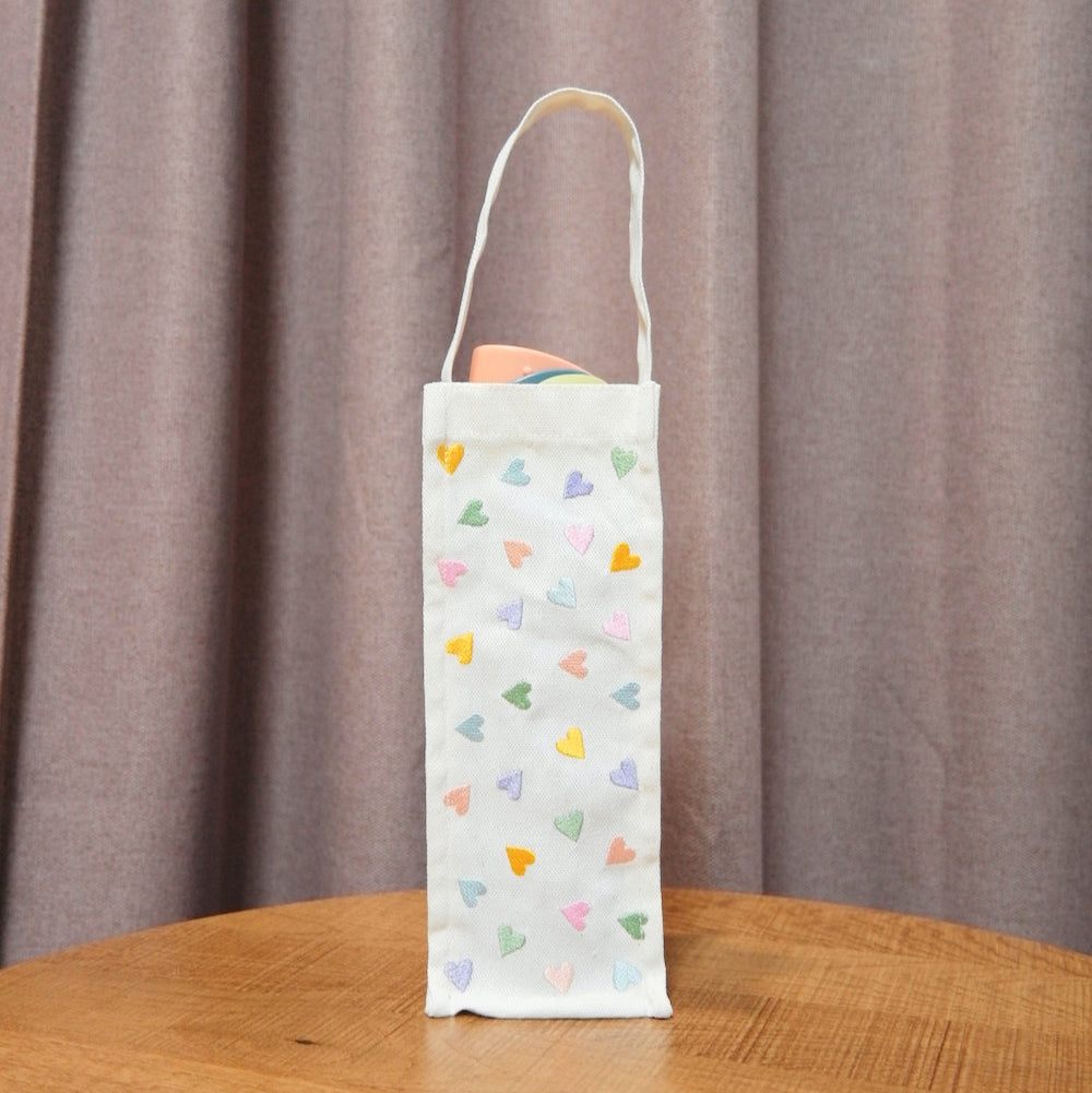 Pastel Hearts on Natural Canvas Water Bottle Bag