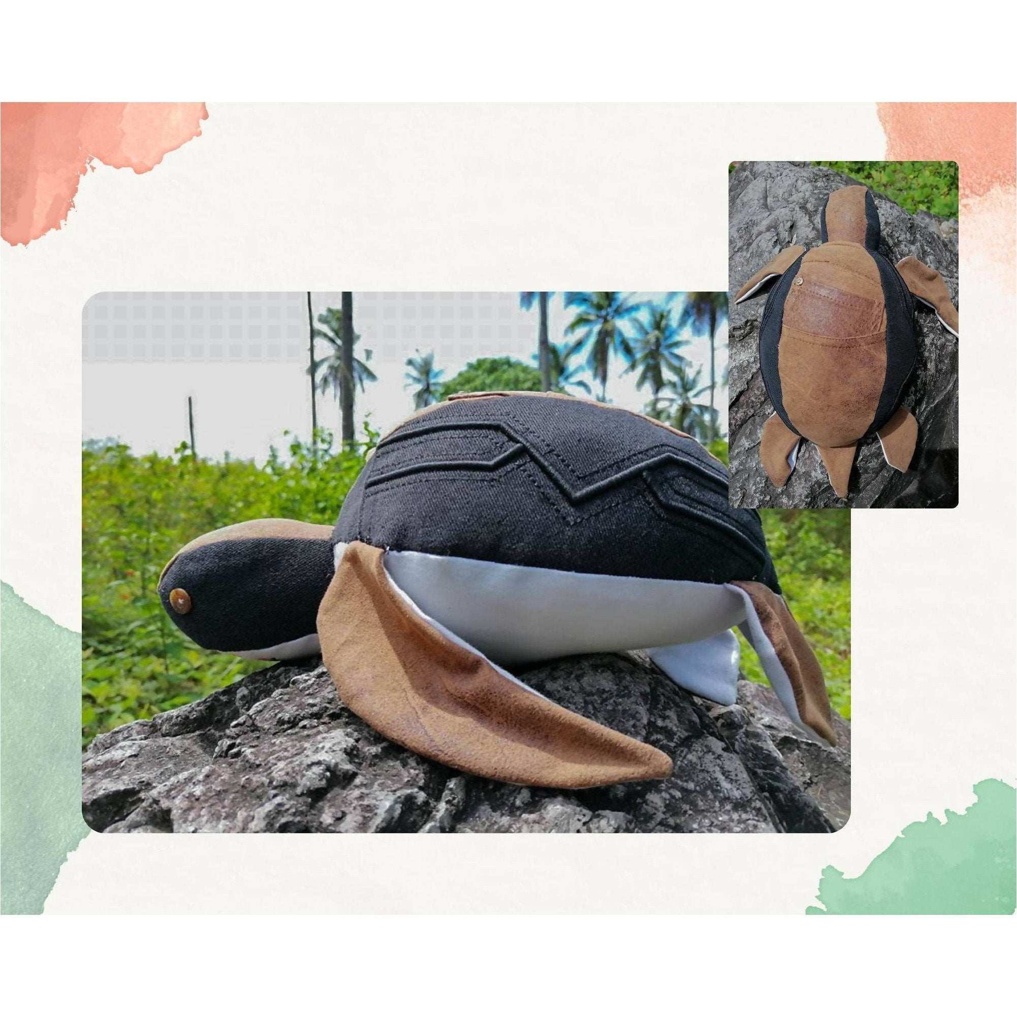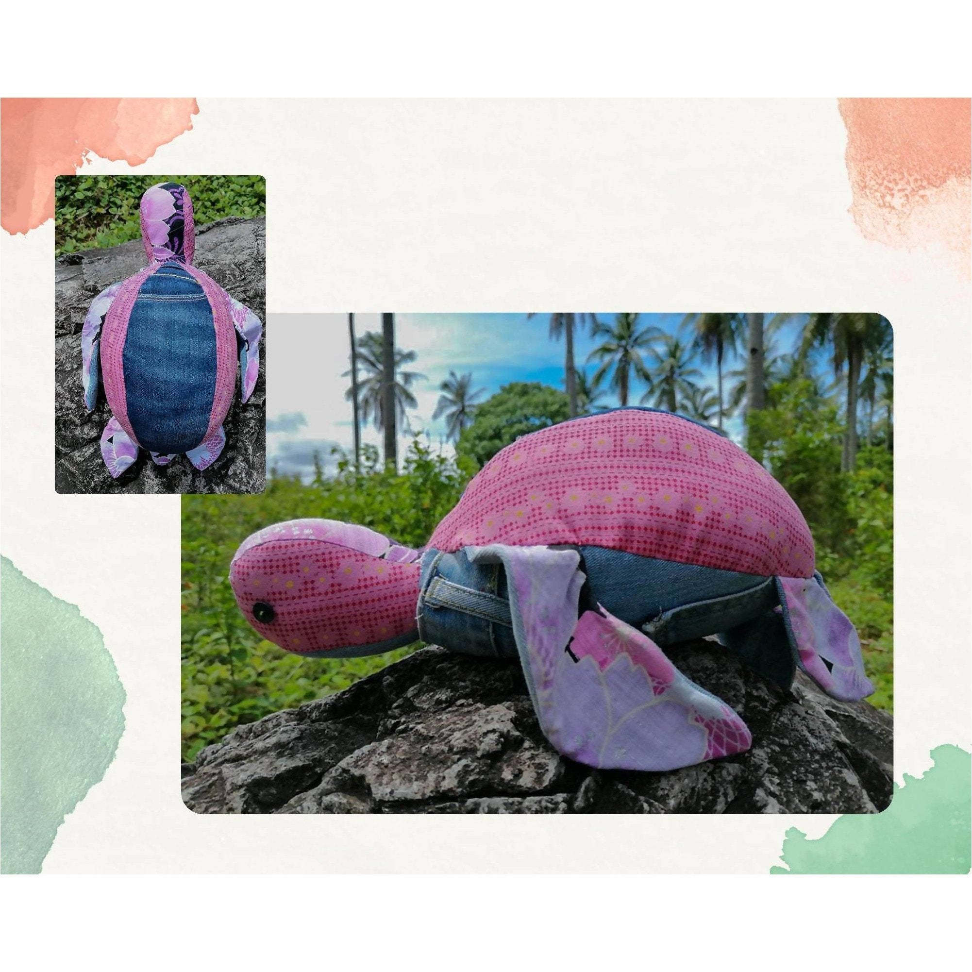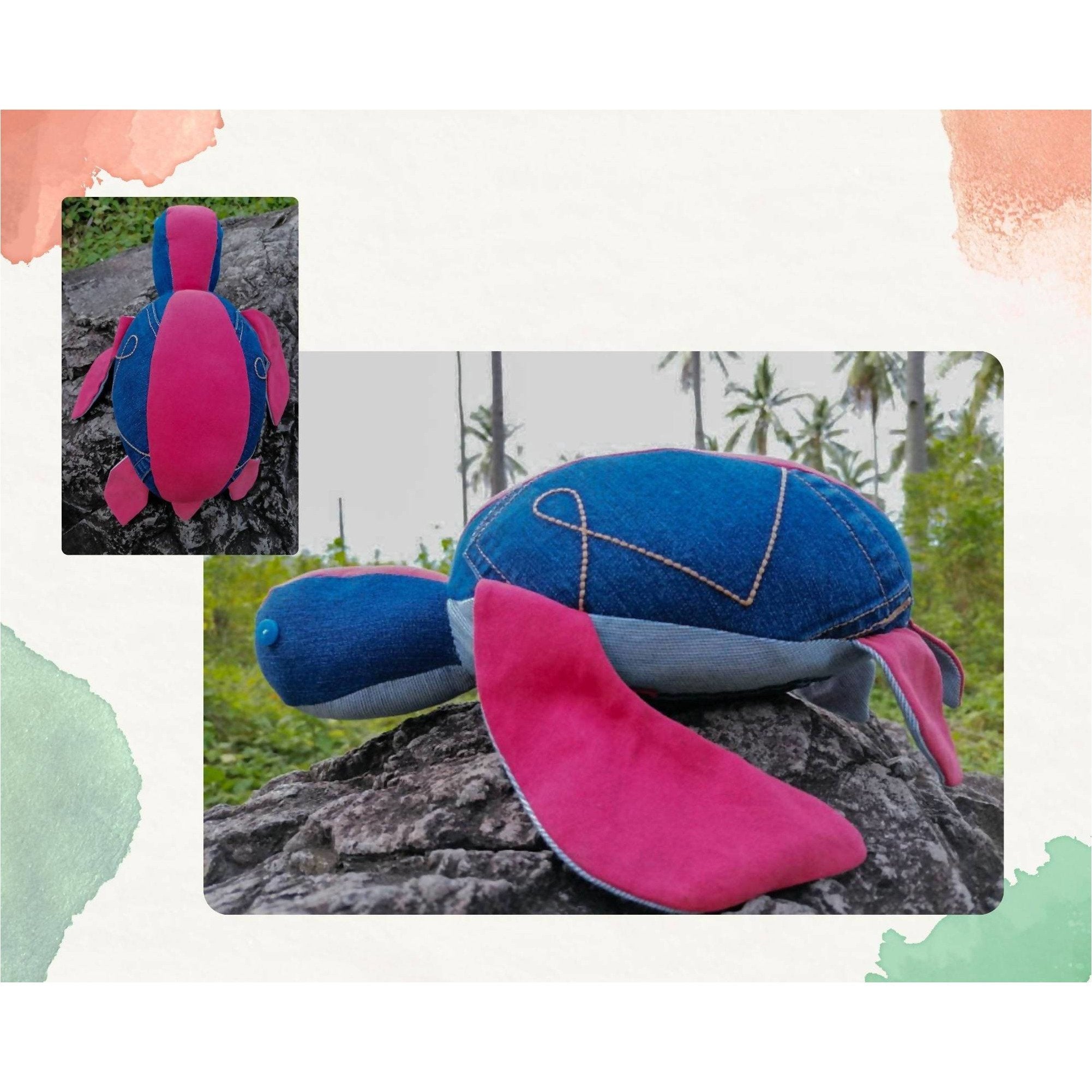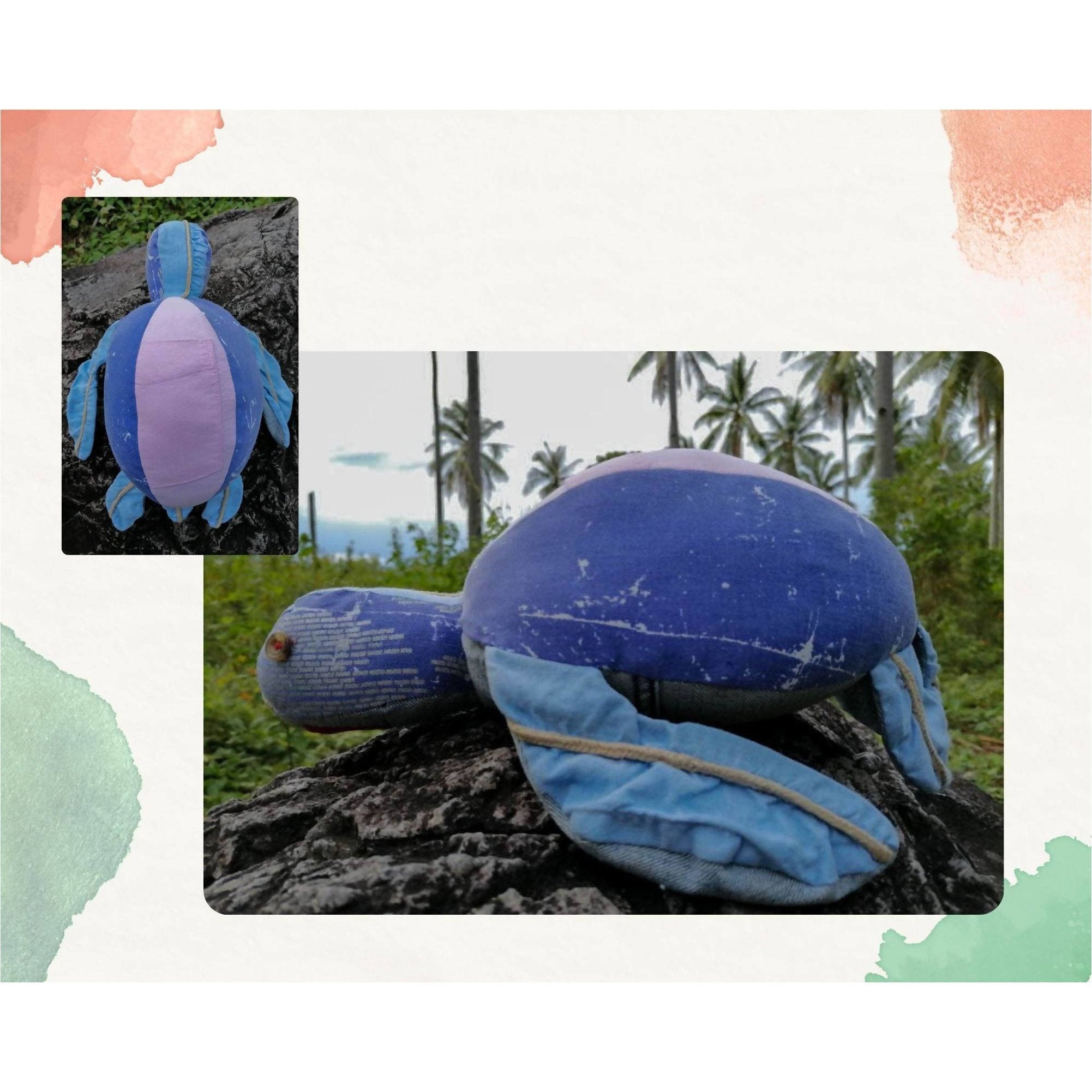 Our pawikan plush toy is handmade out of upcycled denim jeans and clothes from ukay-ukay (second-hand shop) and donations. No design is repeated twice. We work with available jeans collected from thrift store and donations.
