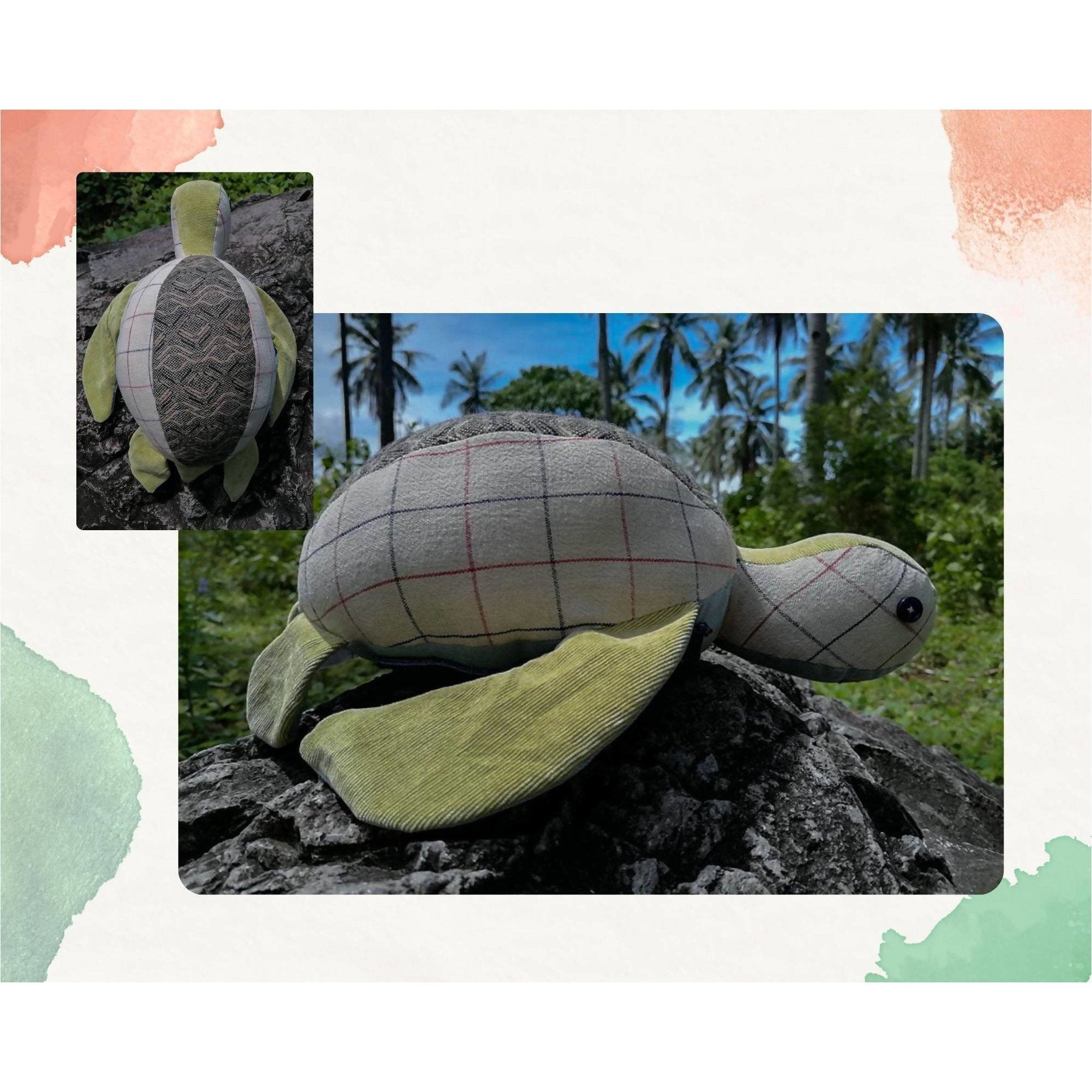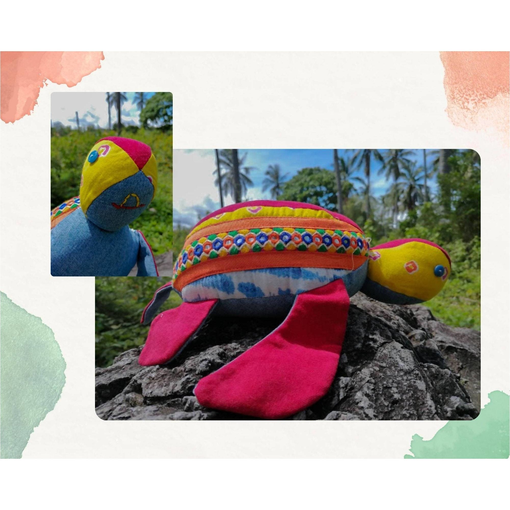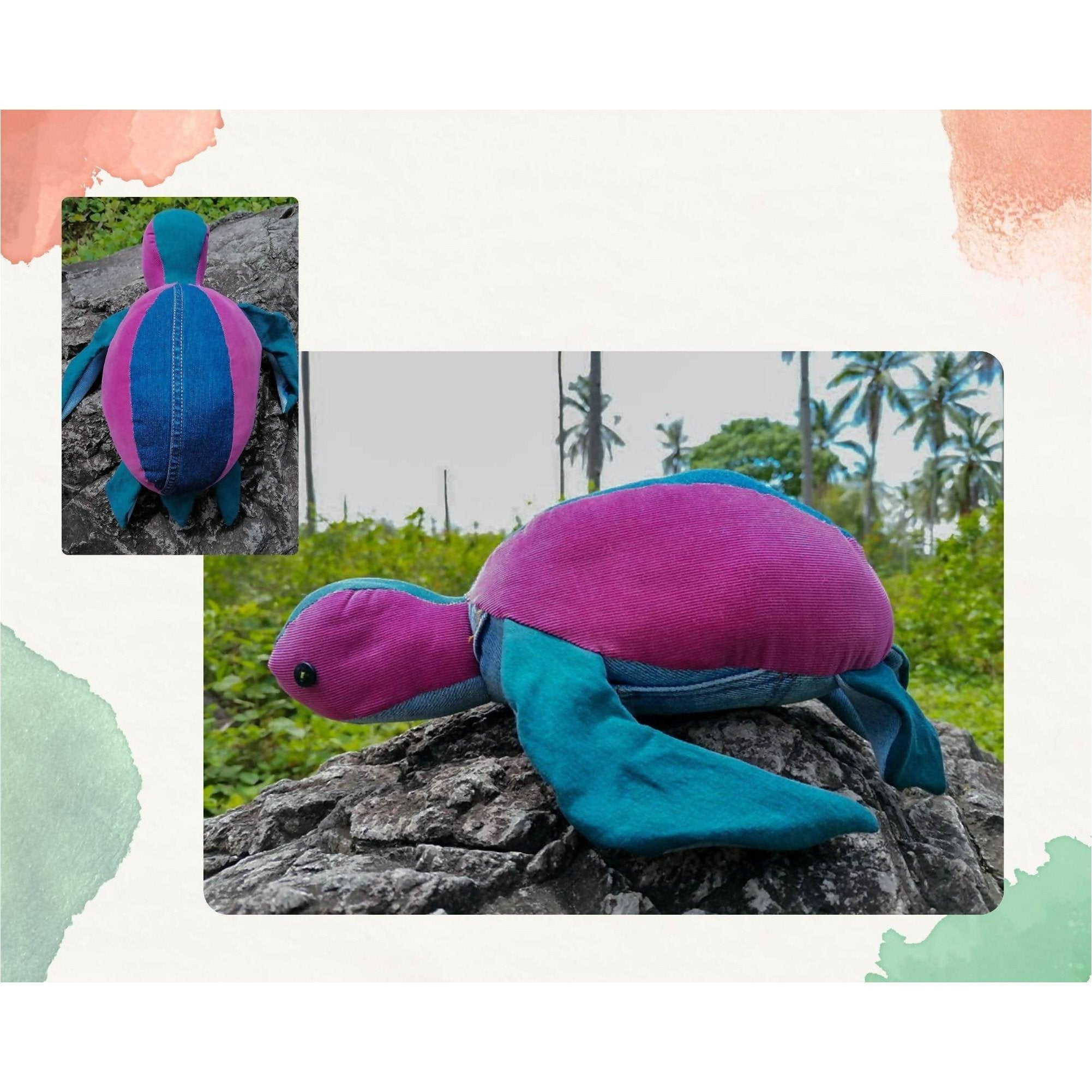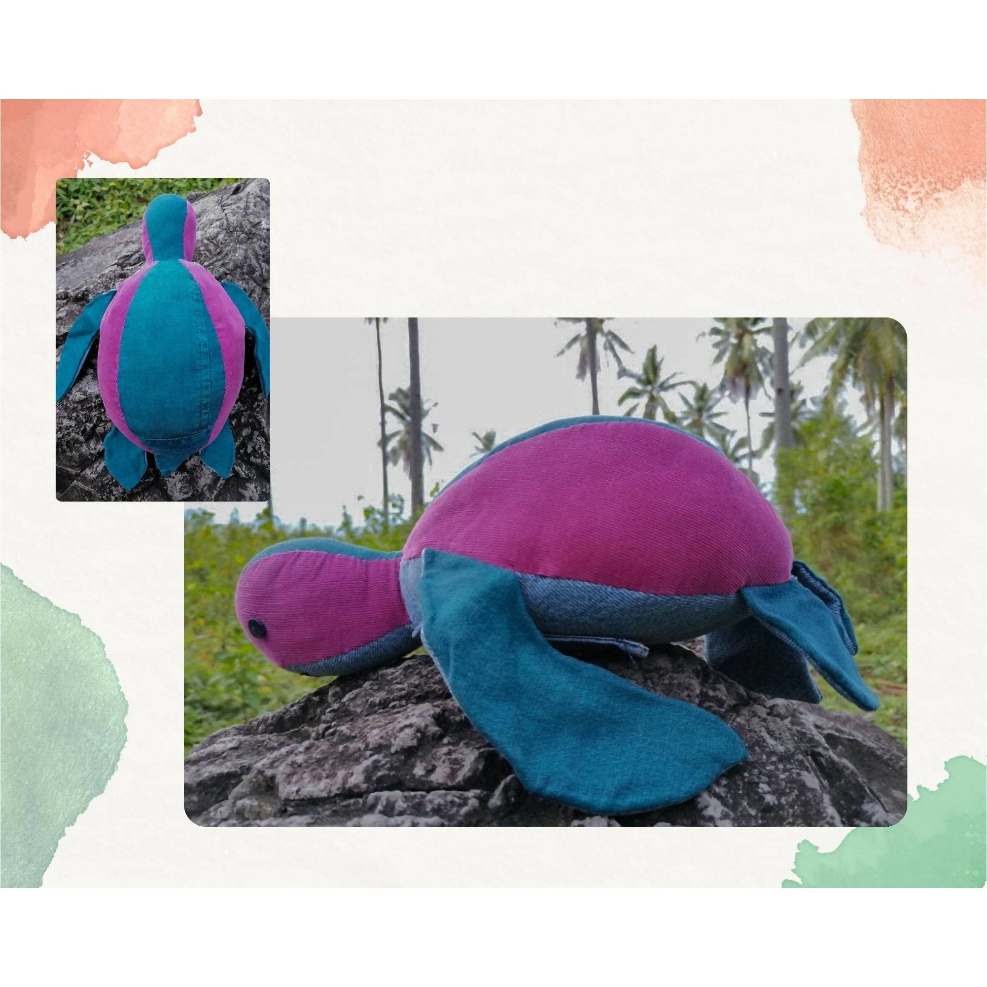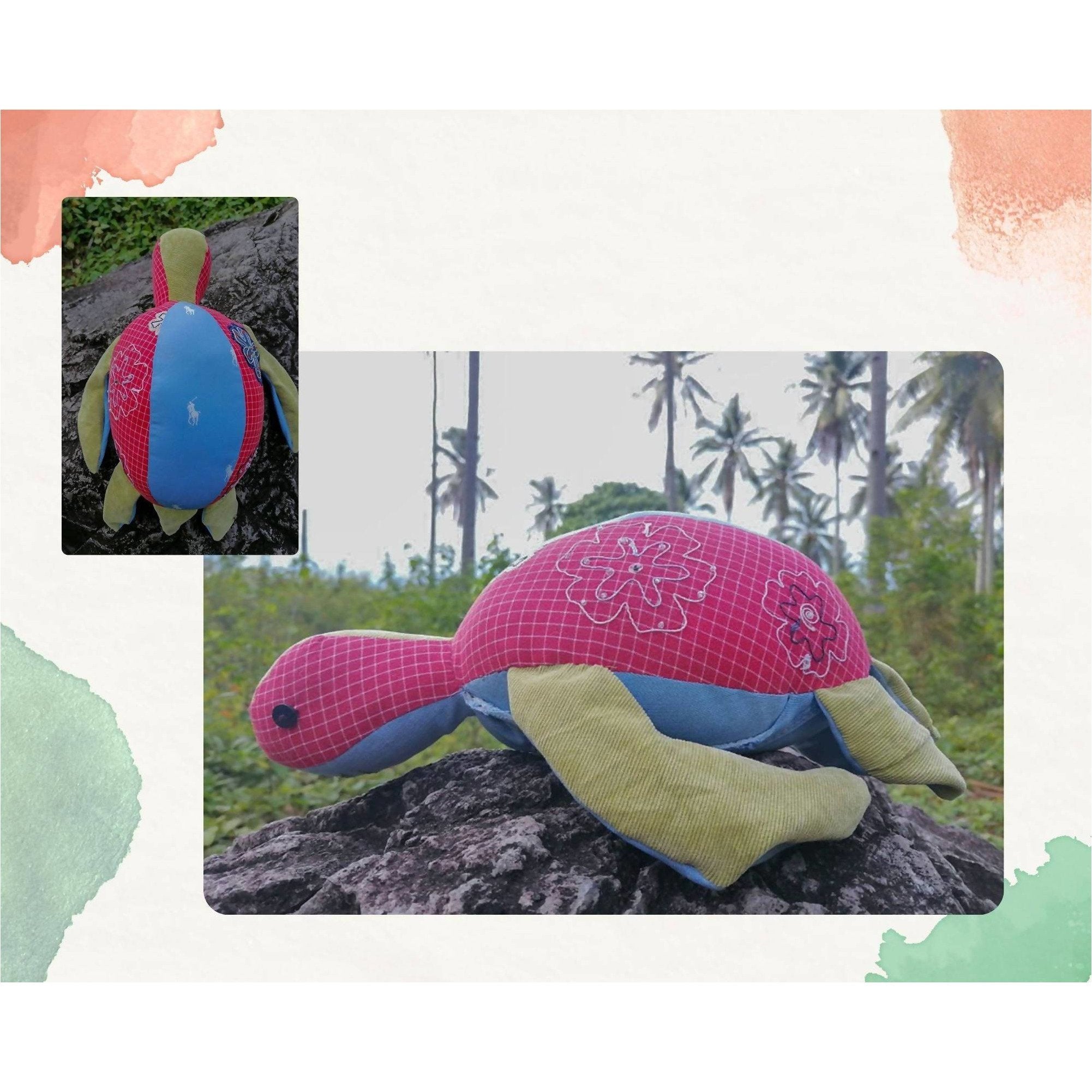 Our pawikan plush toy is handmade out of upcycled denim jeans and clothes from ukay-ukay (second-hand shop) and donations. No design is repeated twice. We work with available jeans collected from thrift store and donations.