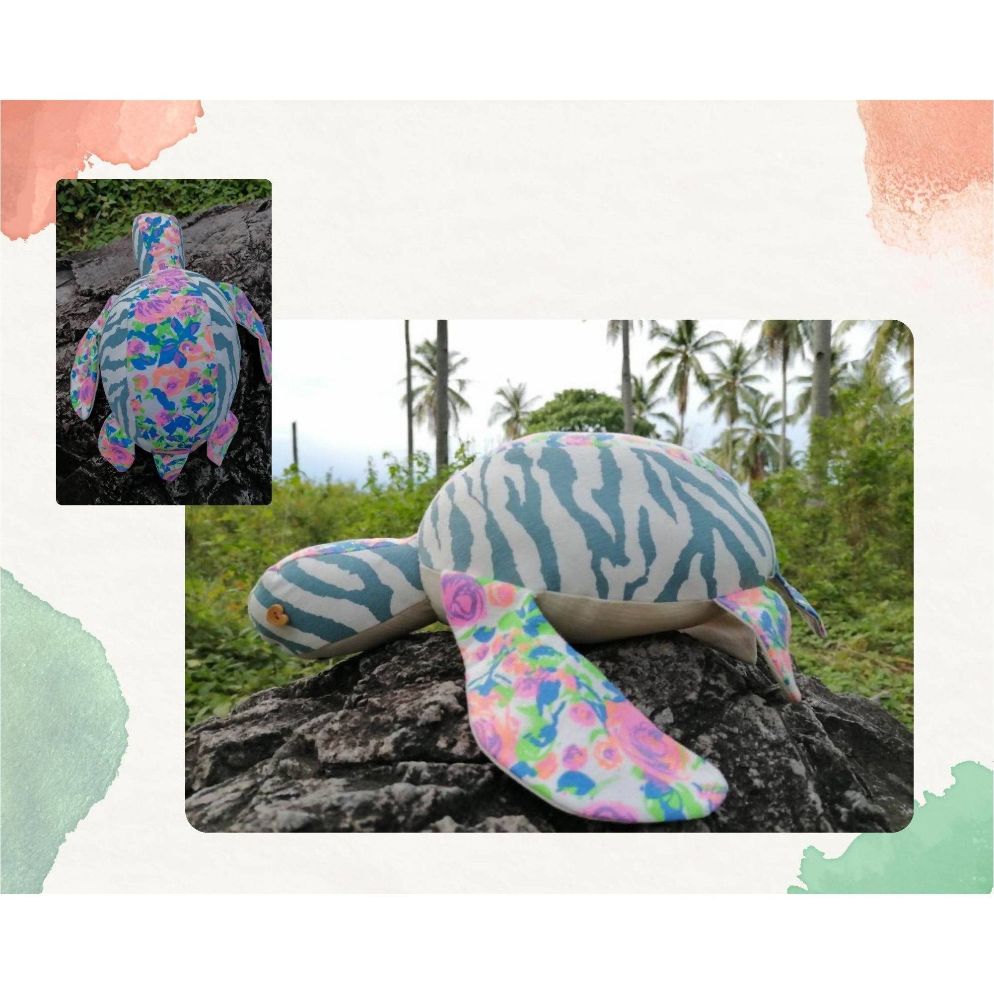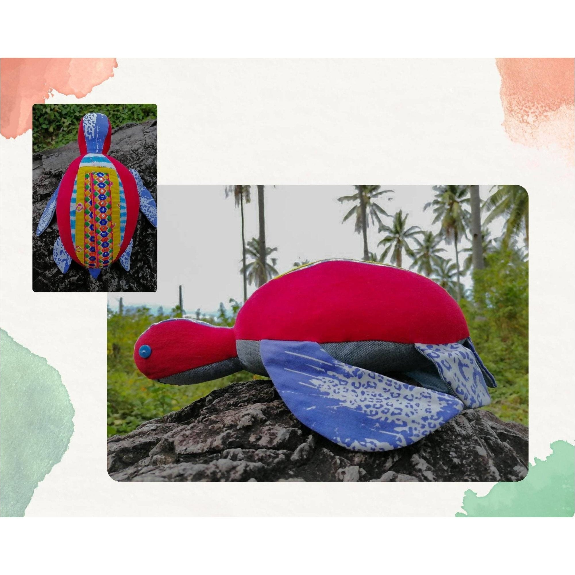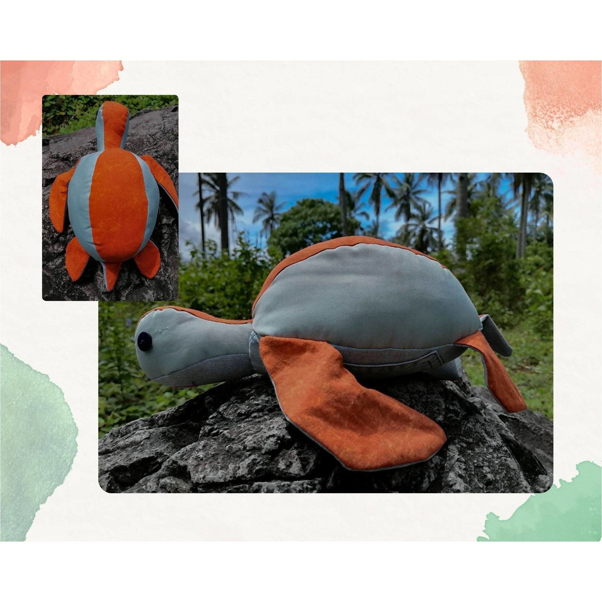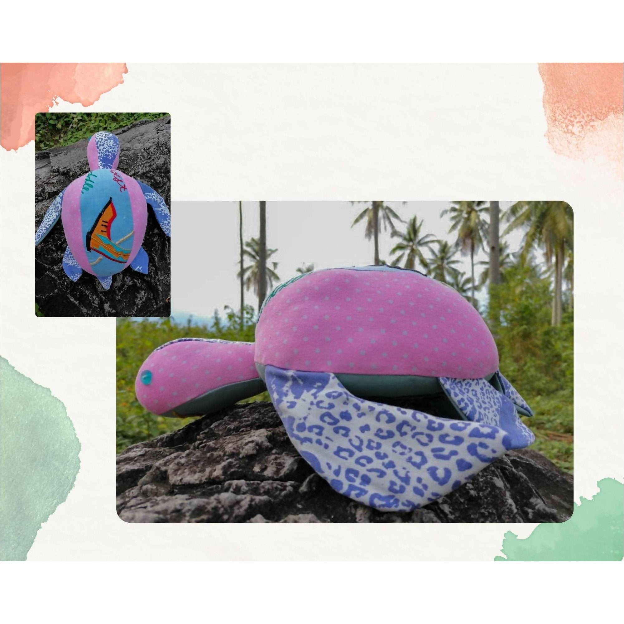 Our pawikan plush toy is handmade out of upcycled denim jeans and clothes from ukay-ukay (second-hand shop) and donations. No design is repeated twice. We work with available jeans collected from thrift store and donations.