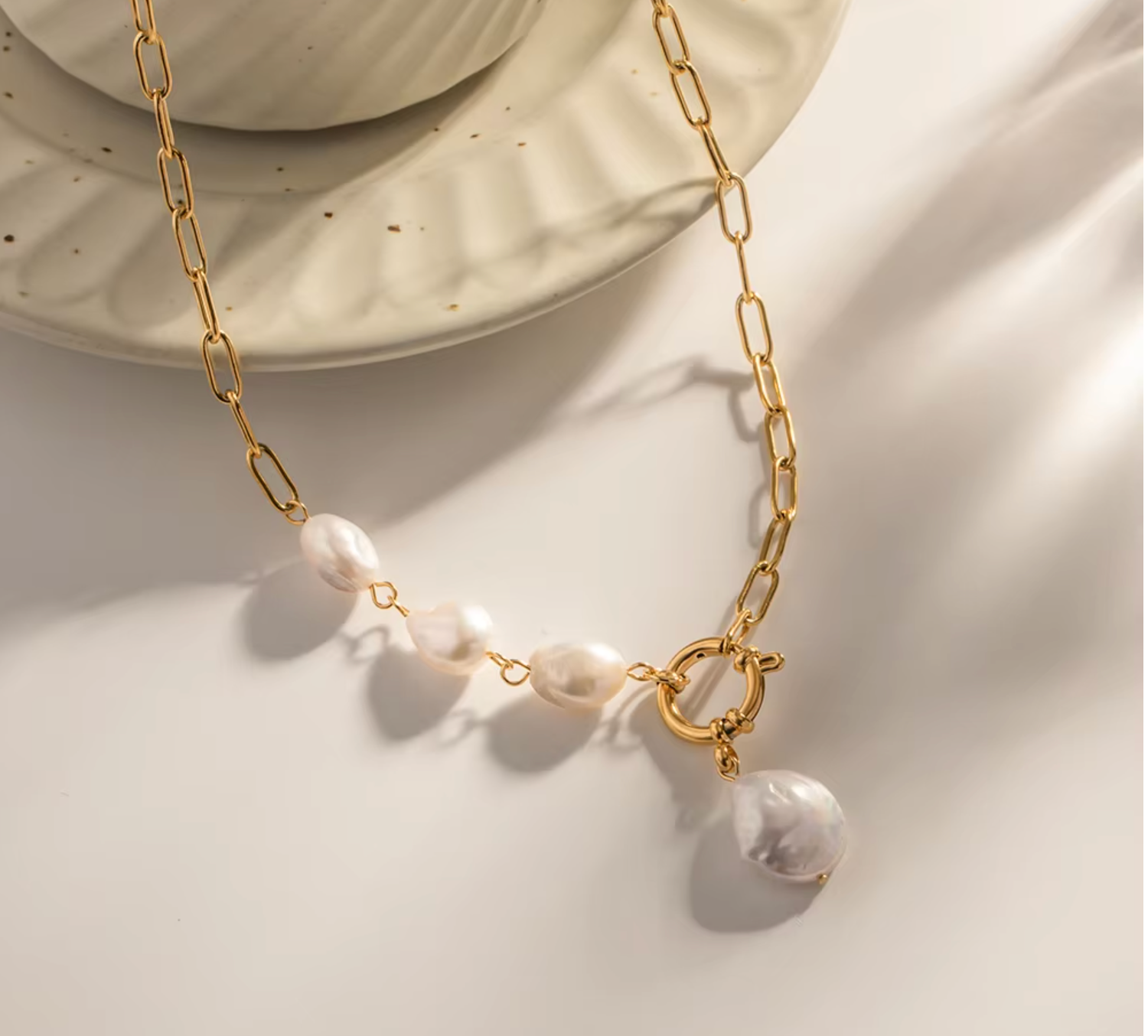 • Gold plated stainless steel with freshwater pearls