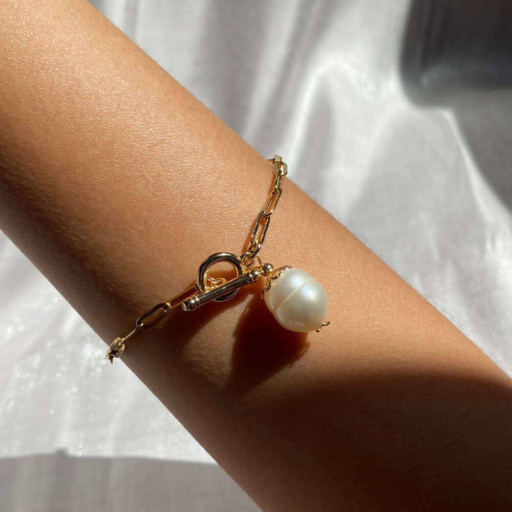 Freshwater Pearl Bracelet Material: Gold Plated Lock and Paper Clip Chain Length: 8 inches Shape: Potato Size: 11-12 mm